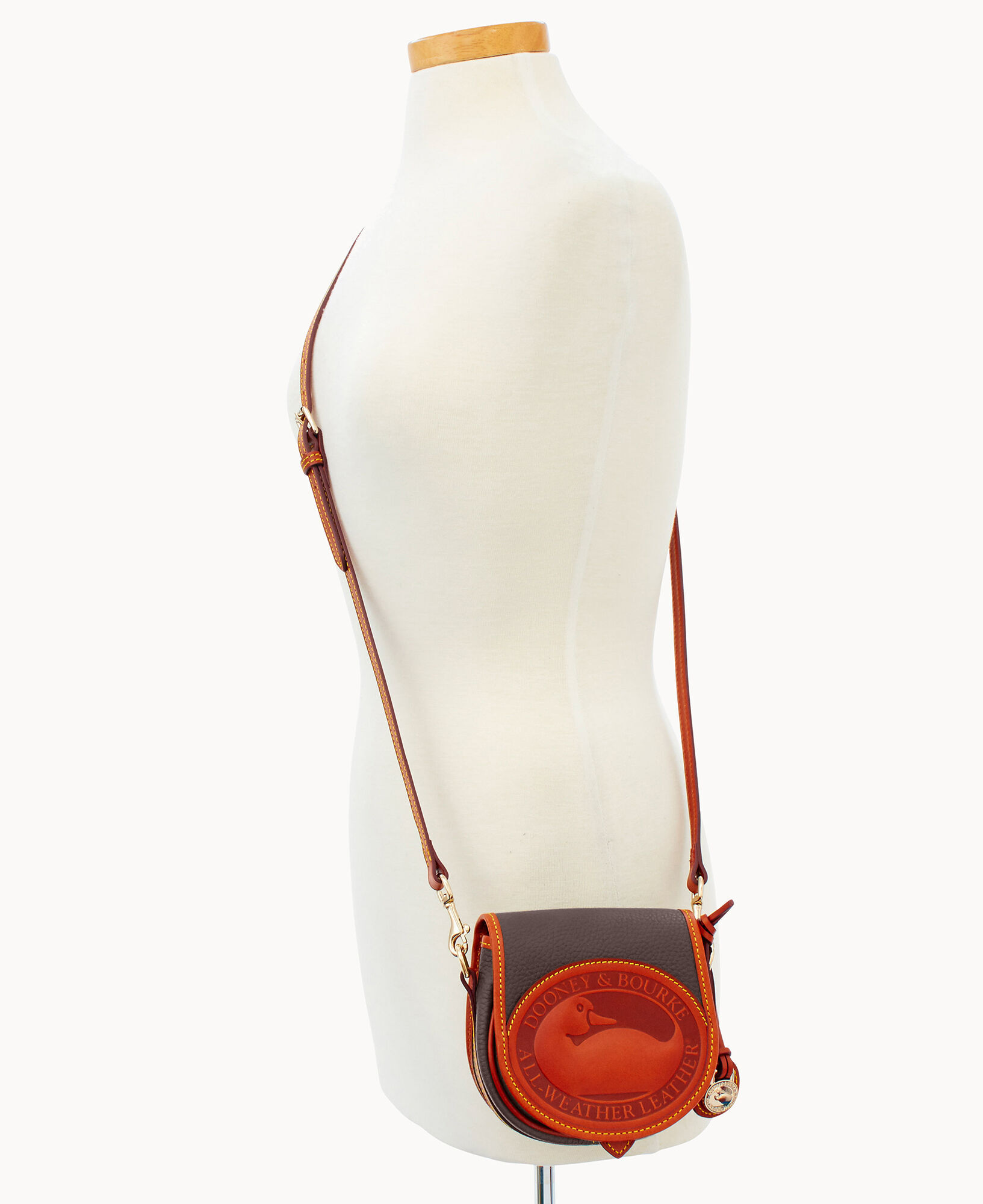 A Dooney & Bourke original, the All-Weather Leather Duck Bag is finished with our signature pebbled leather flap and heritage duck logo for an unmistakable retro feel. Inspired by our archives, this small leather crossbody bag offers ample storage with both inside and outside pockets. Best of all? This leather is known for its long-wearing durability.