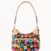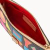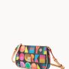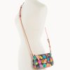 One inside zip pocket. Four credit card slots. Cell phone pocket. Inside key hook. Adjustable shoulder strap. Strap drop length 24.25″. Lined. Zipper closure.