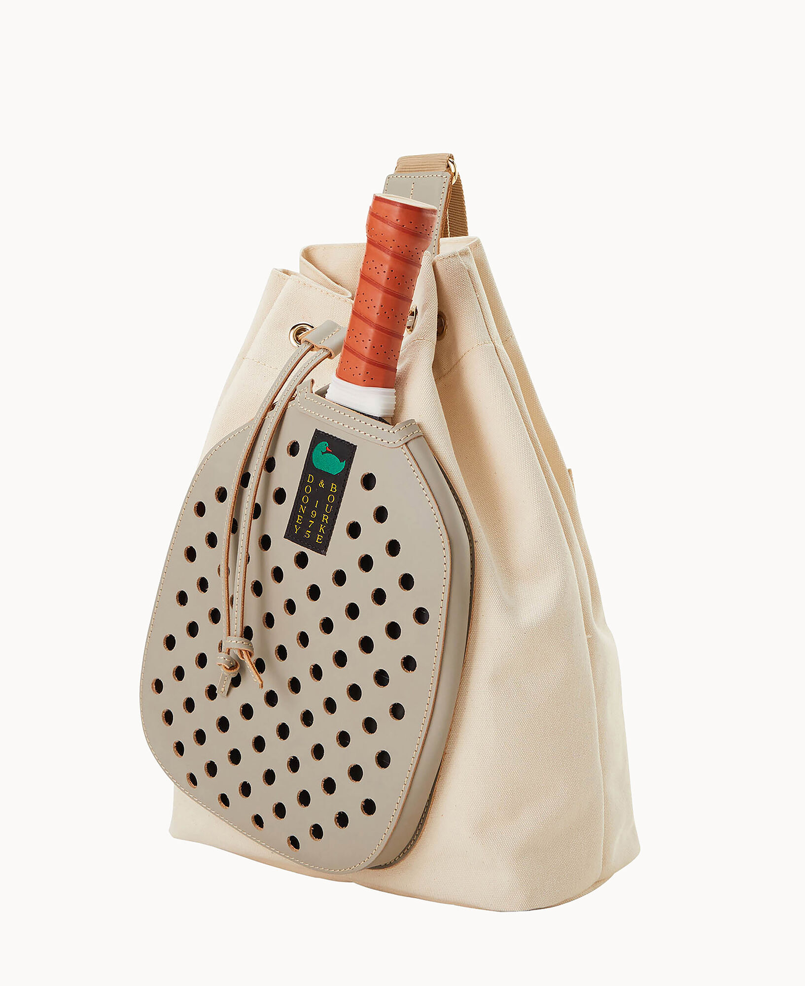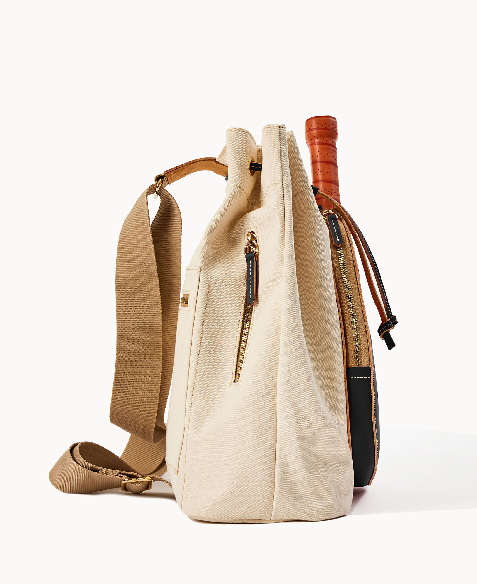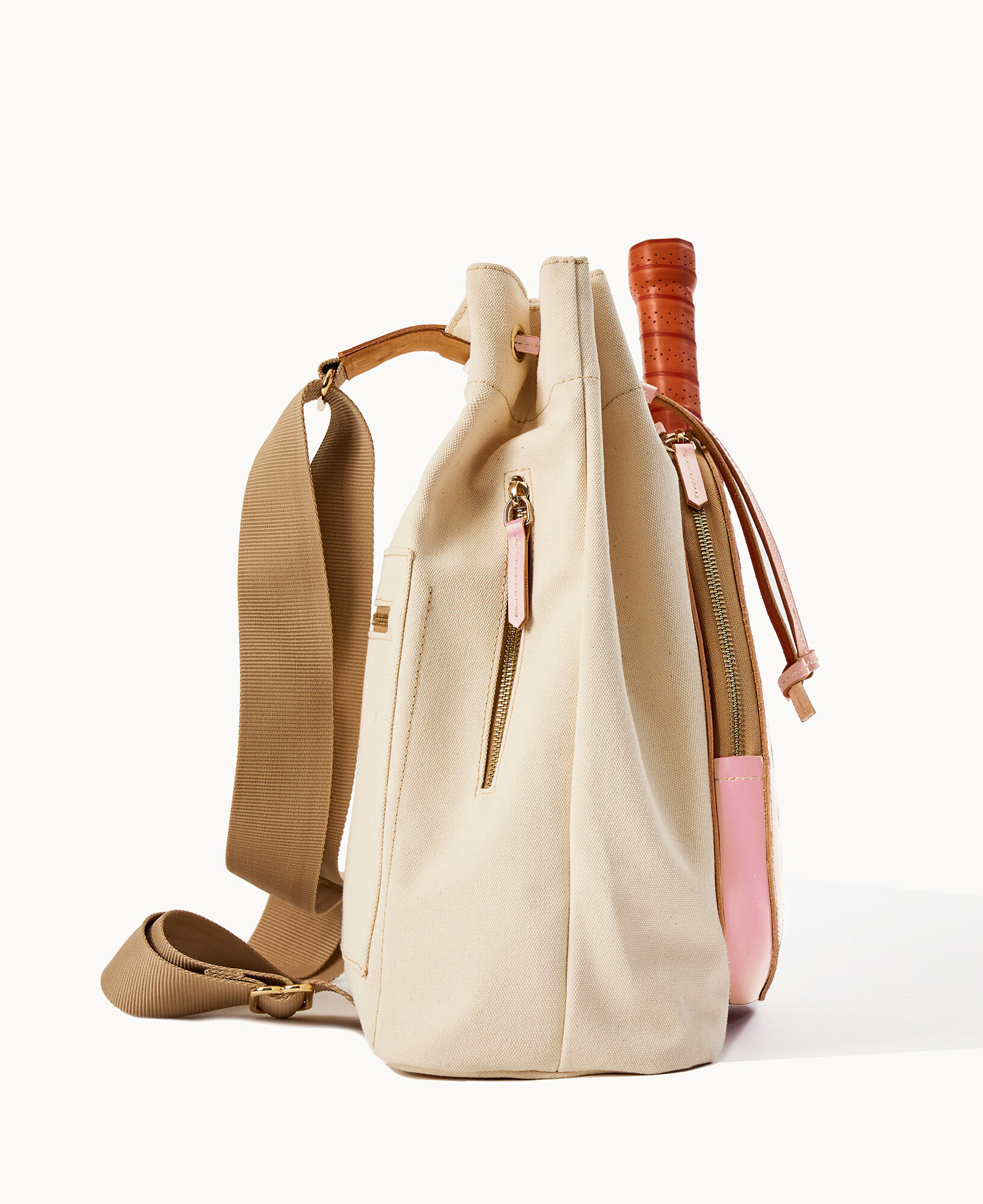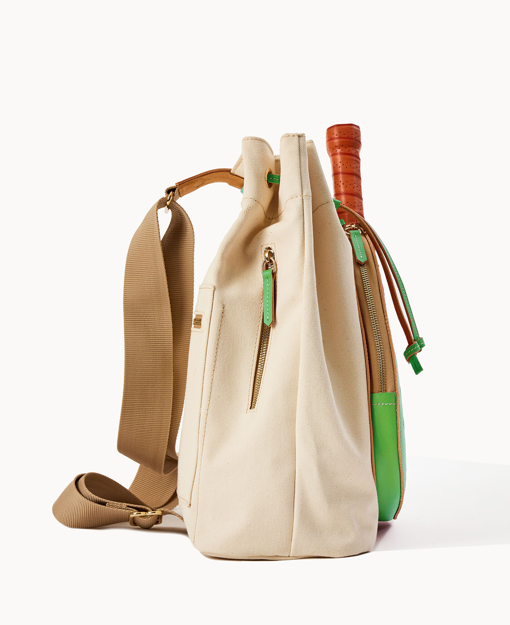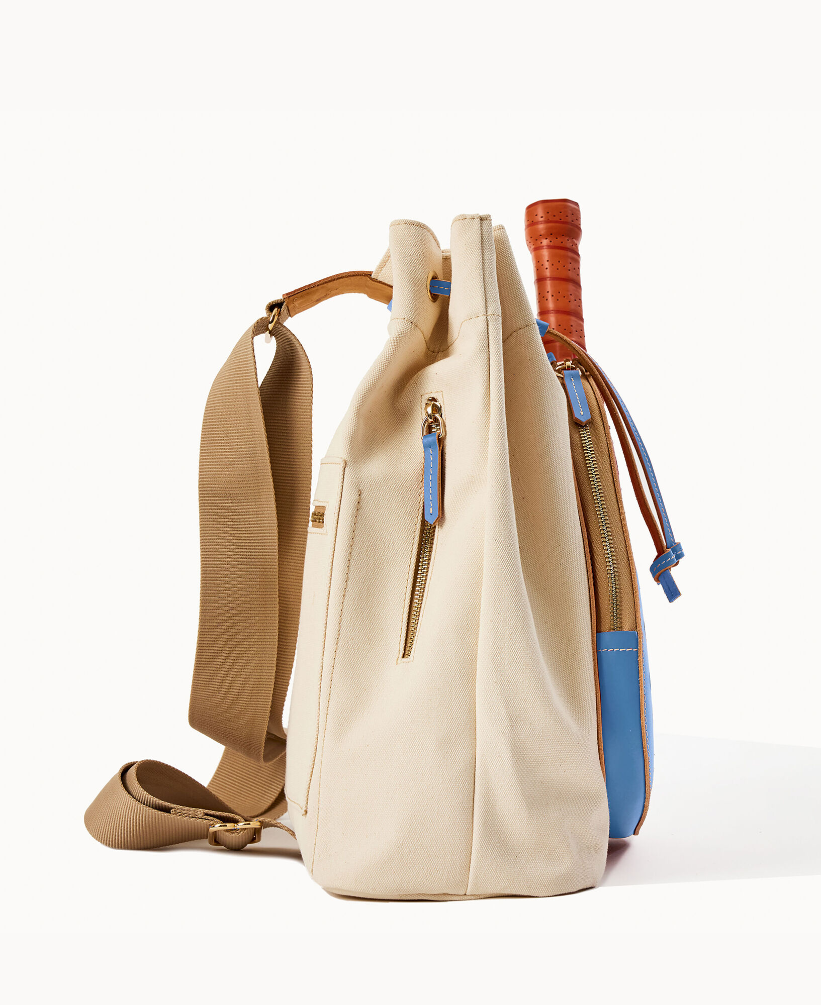 Embrace the spirit of a champion with this stylish Italian canvas sling. Complete with multiple pockets, a racquet holder, an adjustable strap and more, this look is essential for comfortably carrying your equipment on the go.