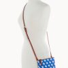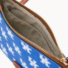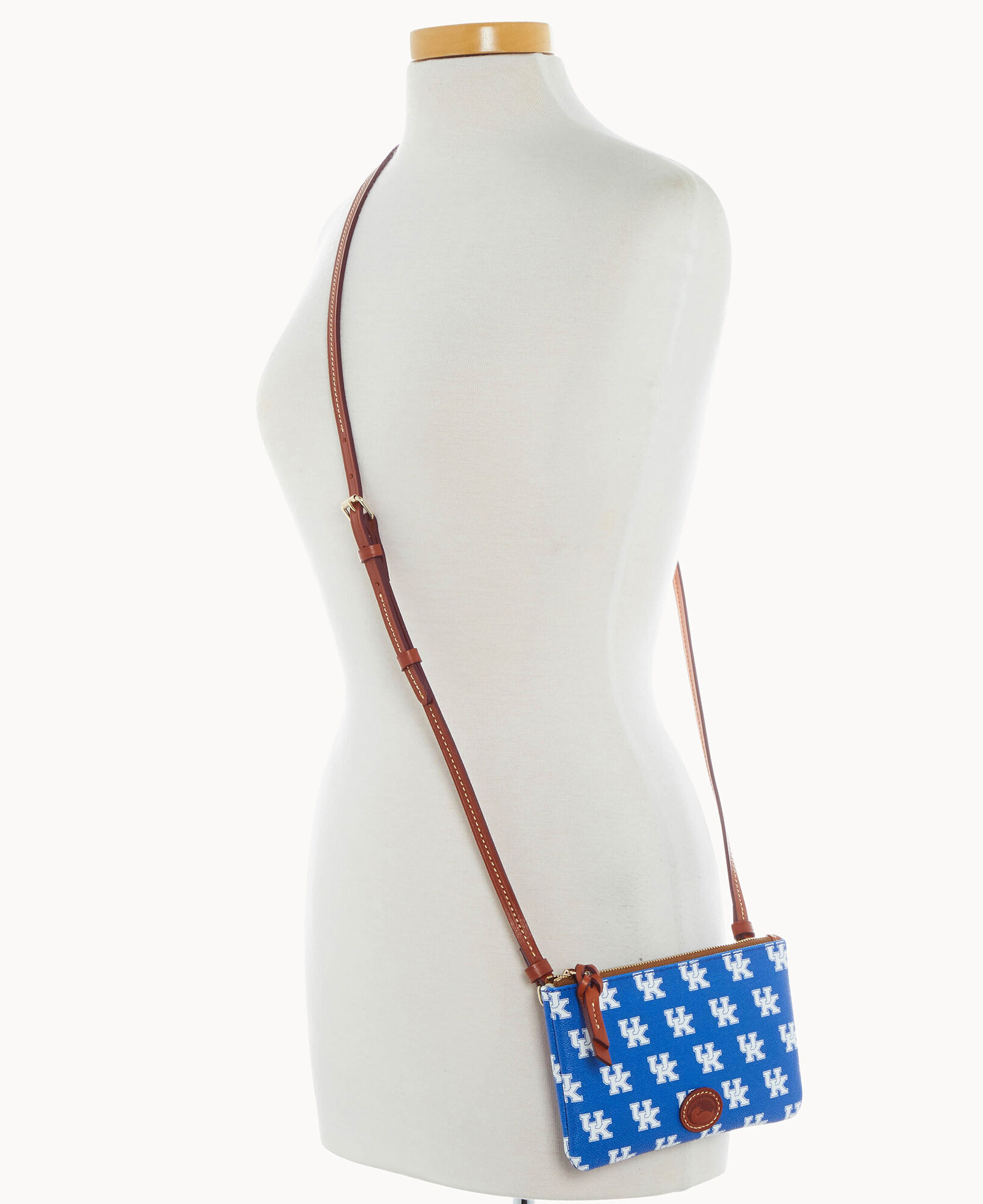 One inside slip pocket. Adjustable strap. Strap drop length 26″. Lined. Zipper closure.