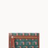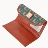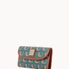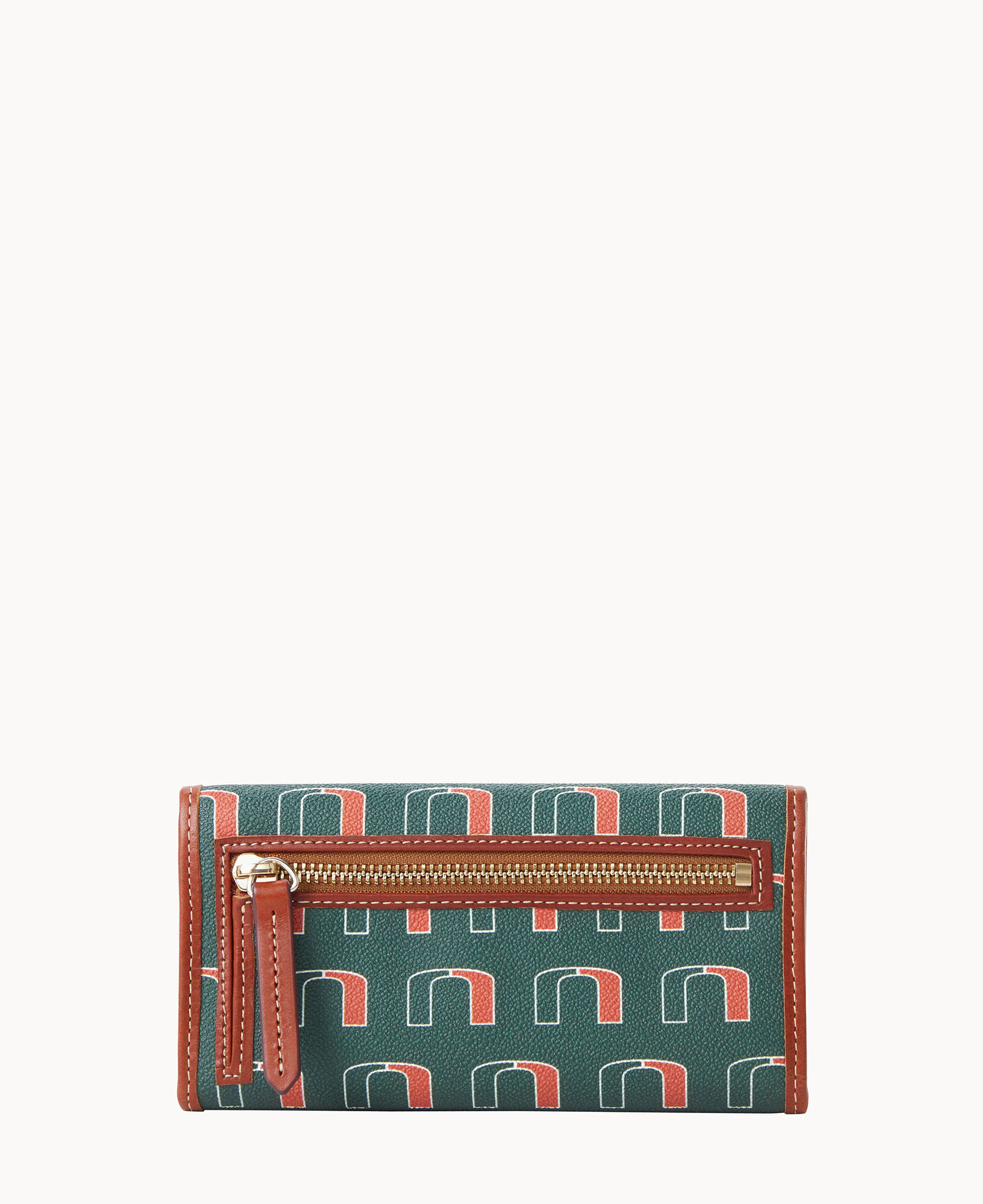 One outside zip pocket. One inside pocket. License pocket with window. Two bill compartments. Seven credit card slots. Lined. Feet. Snap closure.