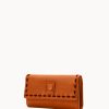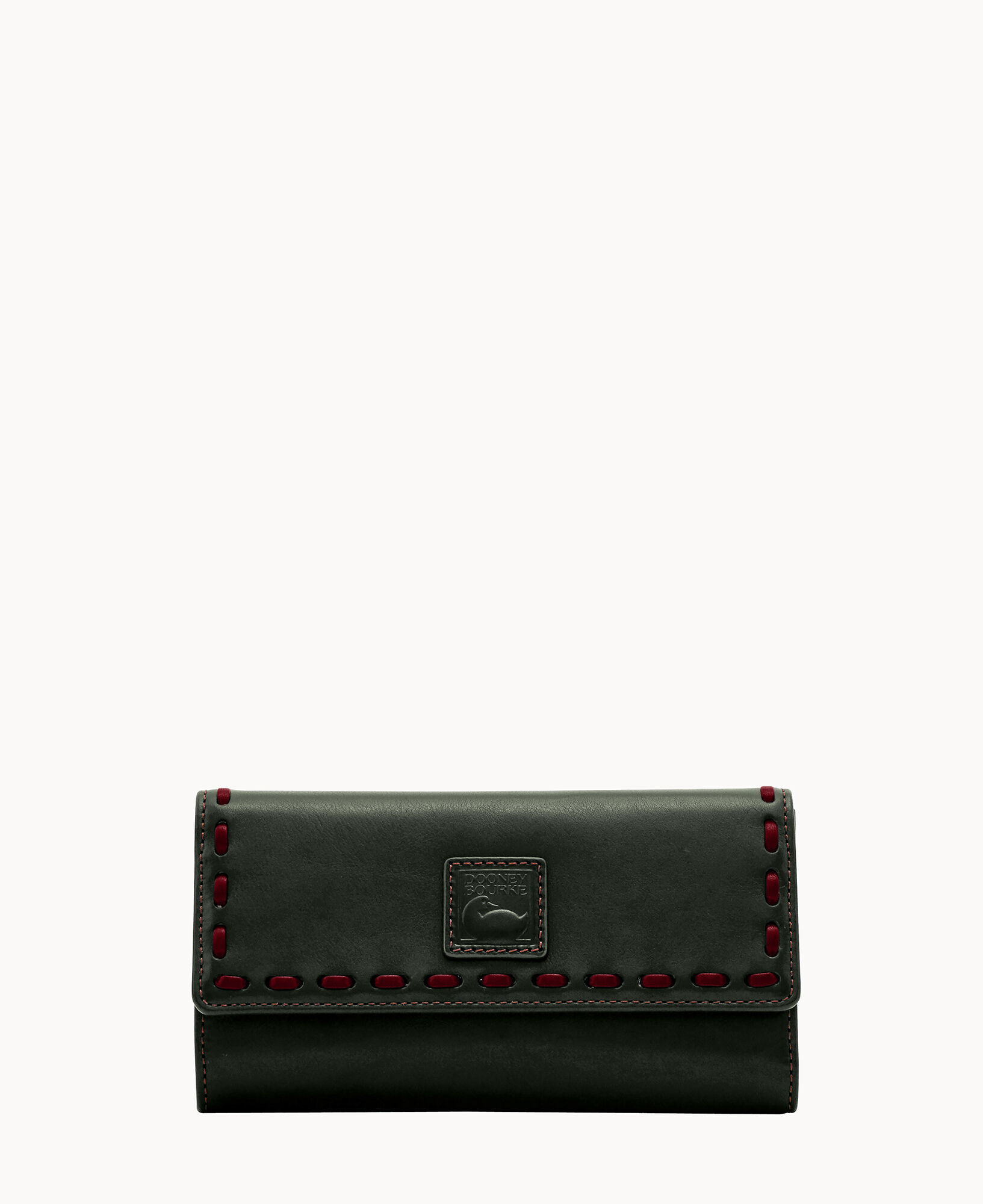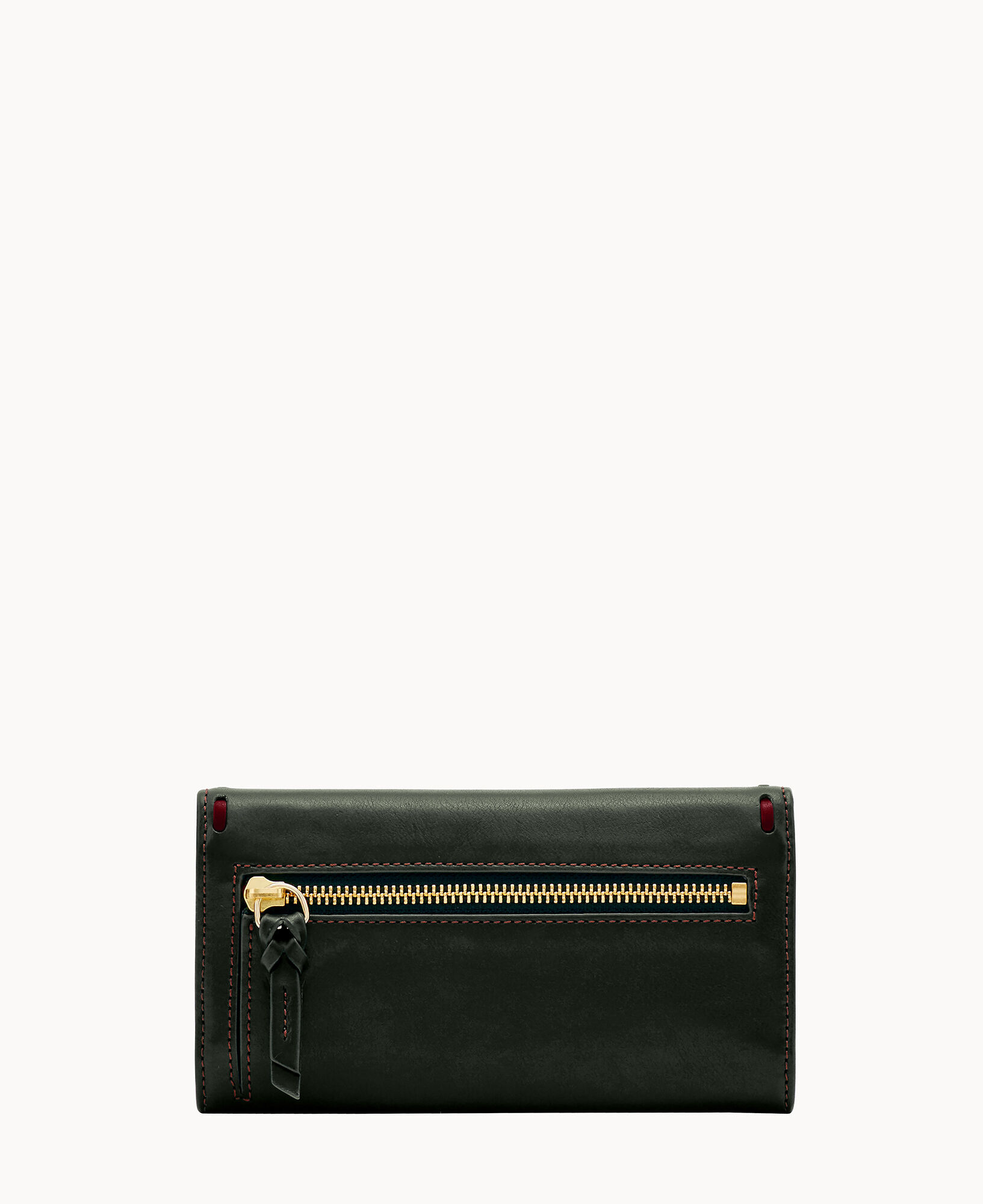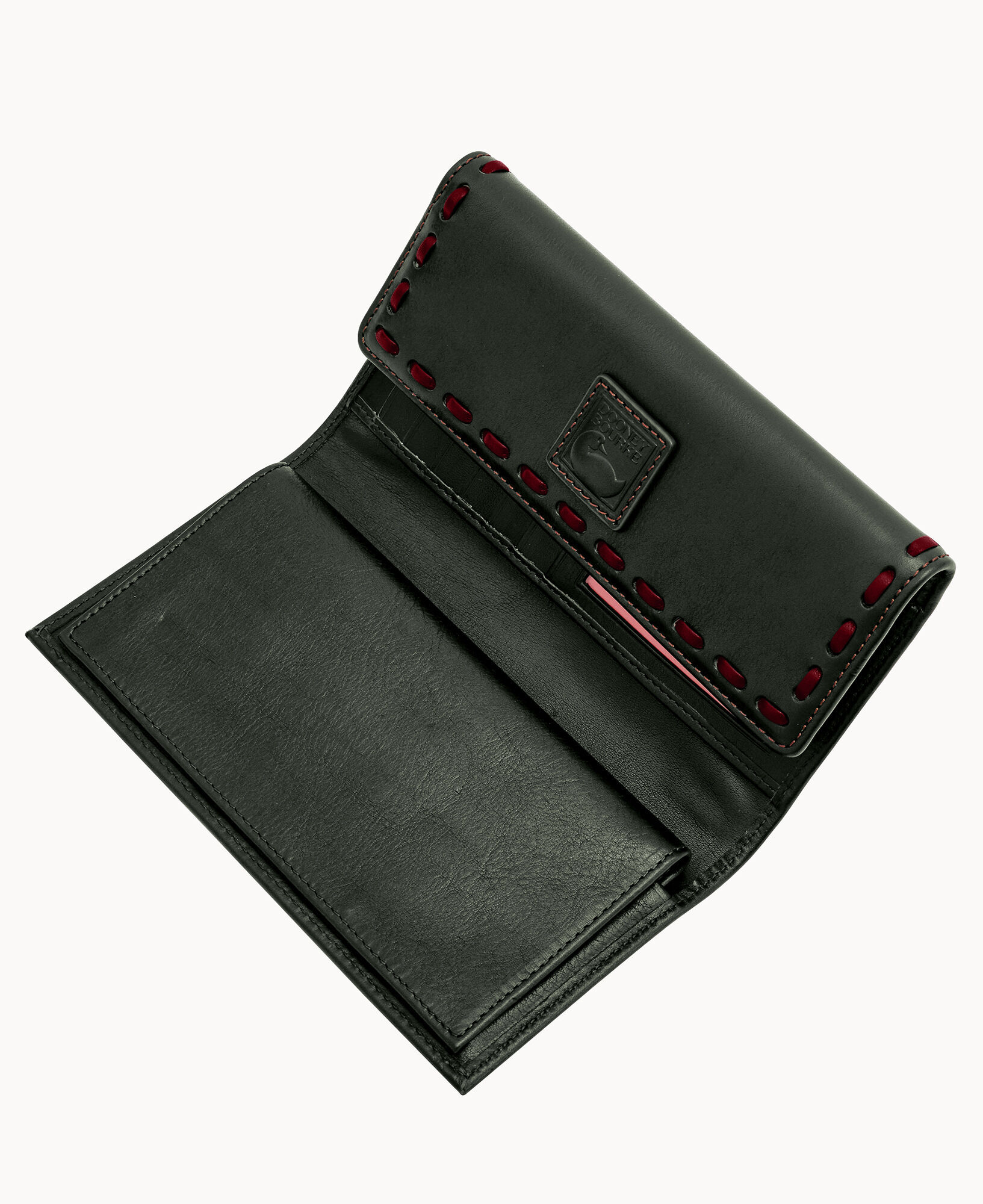 Supple Florentine leather has the look and feel of fine saddlery and, like saddle leather, it develops a rich patina over time. Keep your checks secure and fashionable with the Dooney & Bourke checkbook organizer. It features a checkbook sleeve with ample credit card pockets and receipt slide pockets.