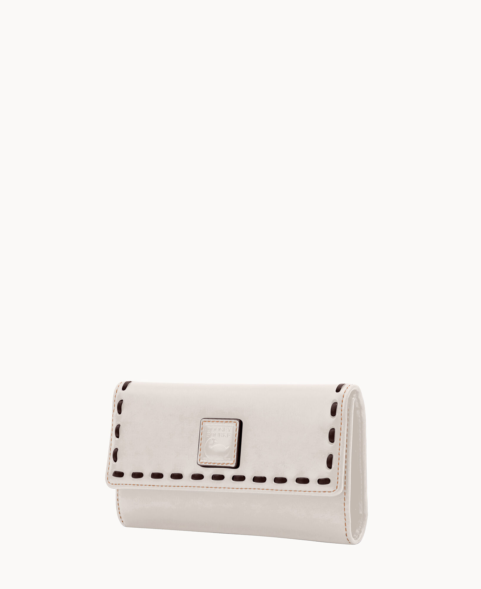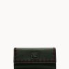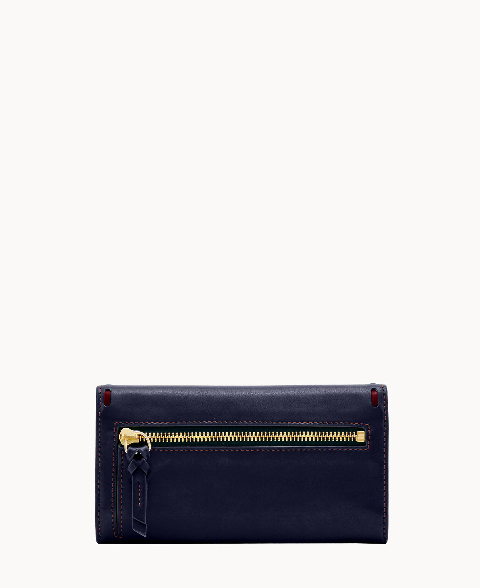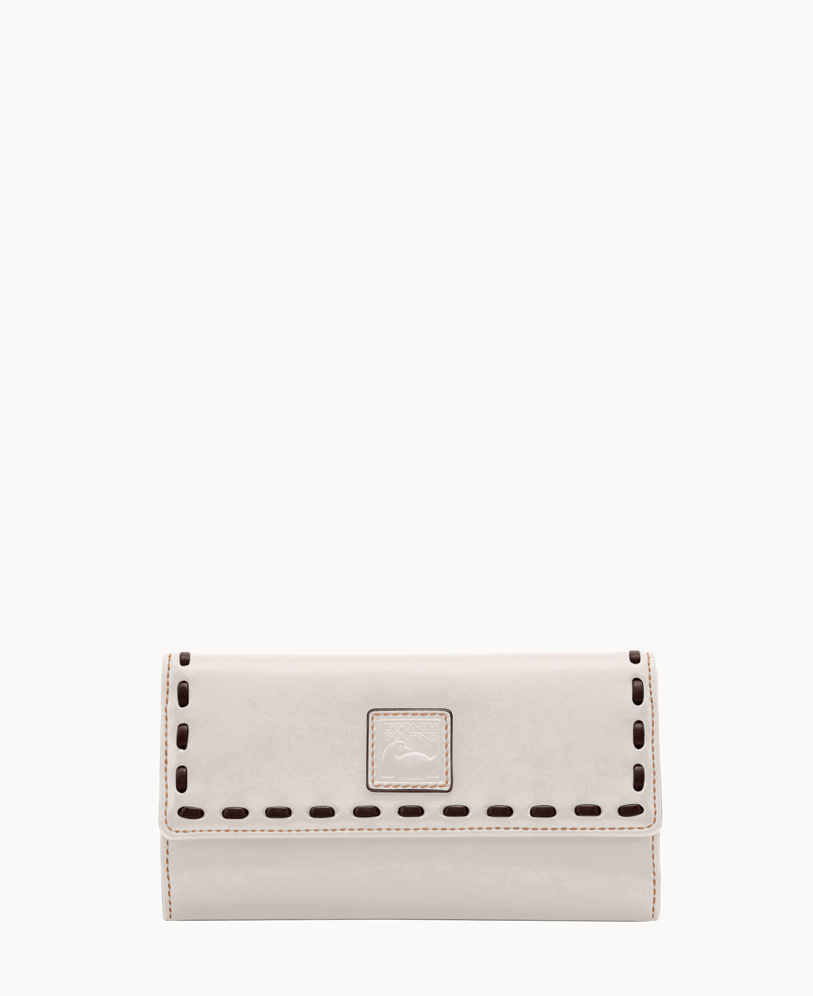 Supple Florentine leather has the look and feel of fine saddlery and, like saddle leather, it develops a rich patina over time. Keep your checks secure and fashionable with the Dooney & Bourke checkbook organizer. It features a checkbook sleeve with ample credit card pockets and receipt slide pockets.