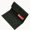 One outside zip pocket. One inside pocket. License pocket with window. Two bill compartments. Seven credit card slots. Lined. Feet. Snap closure.