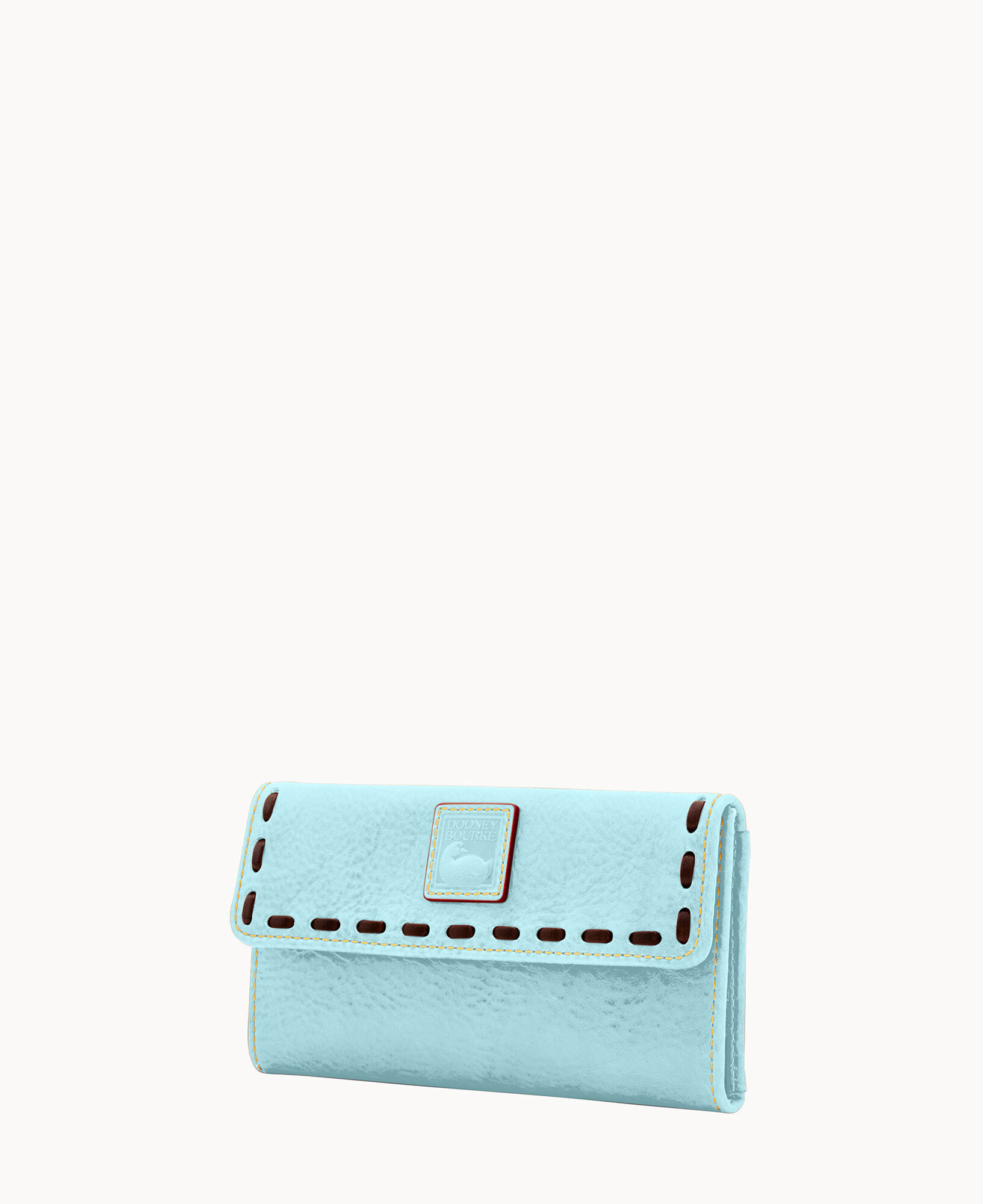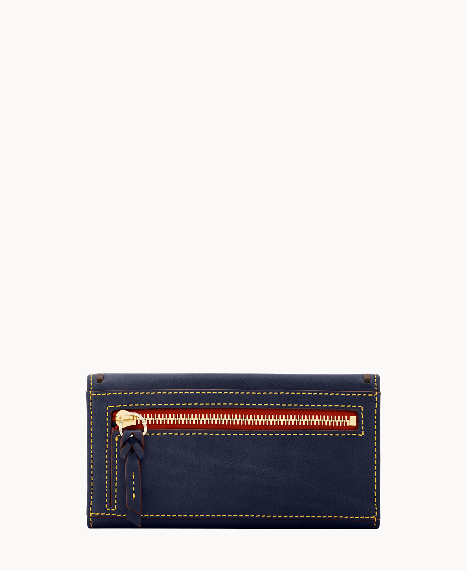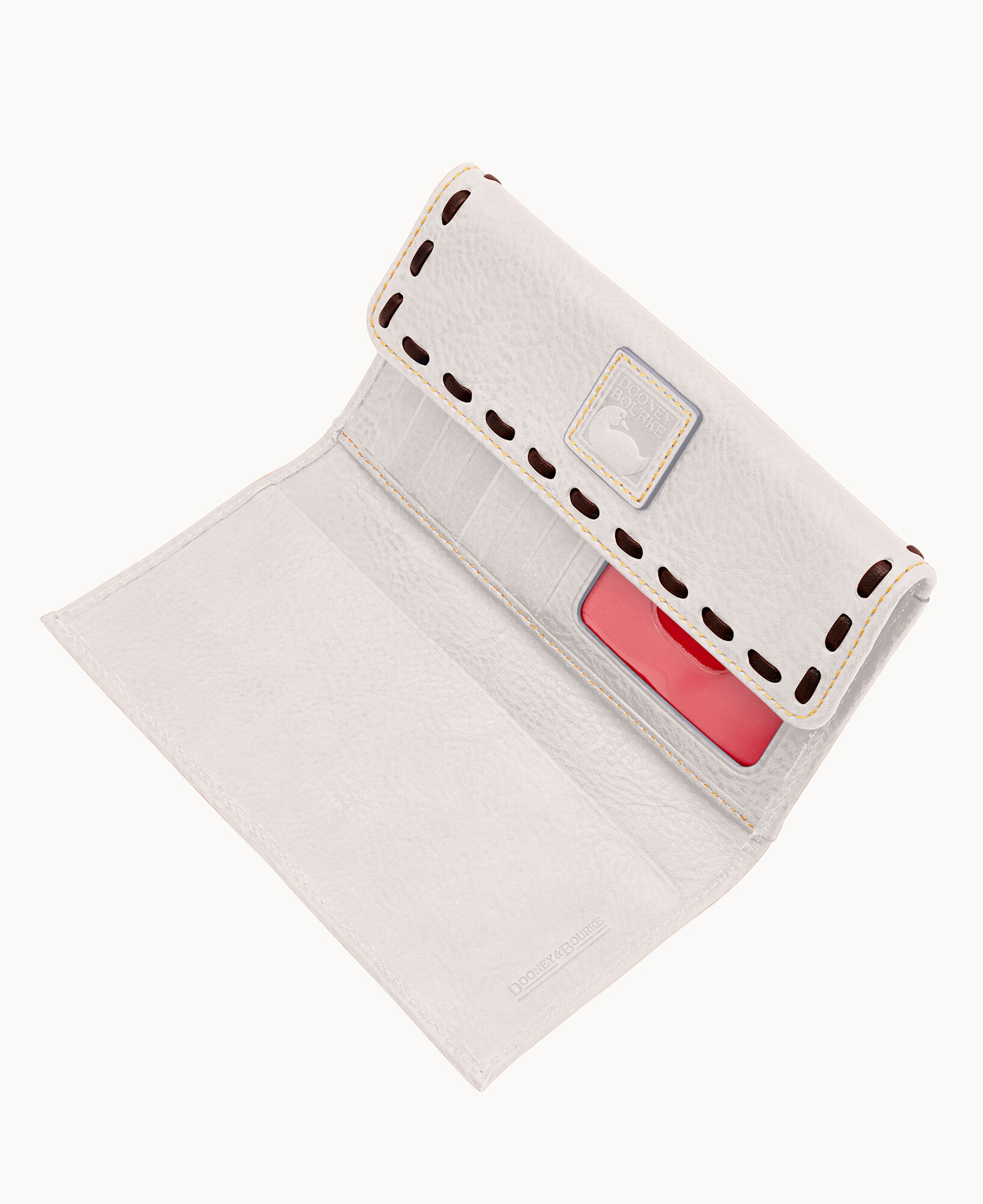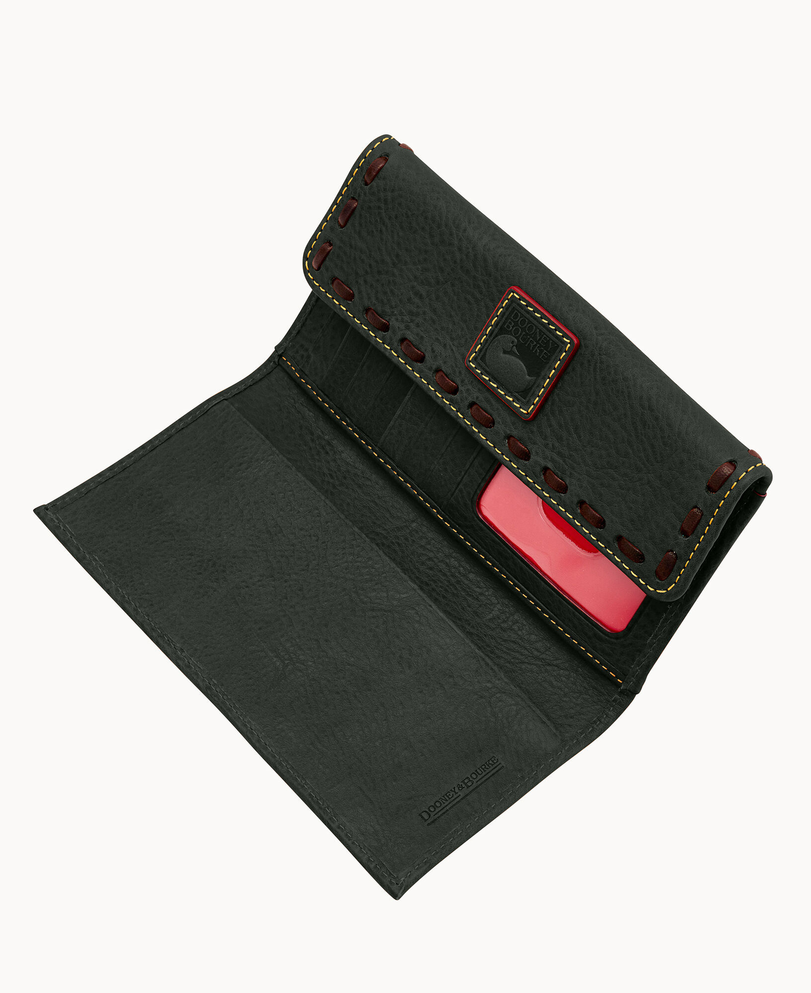 This classic clutch, made from Italian Vacchetta leather that grows softer with age, organizes your cards, has a zippered pouch for your spare change, and an ID window for easy access.