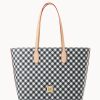 Roomy, sleek, and lightweight, this Italian coated cotton tote is perfect for warm weather months at the office and beyond.