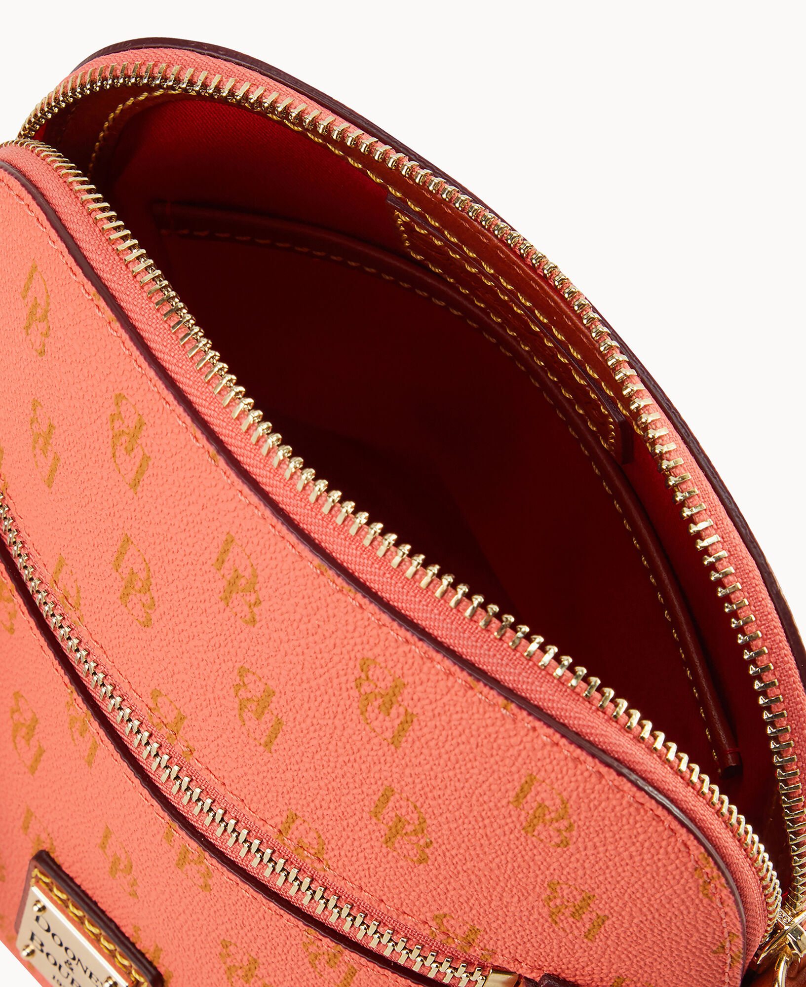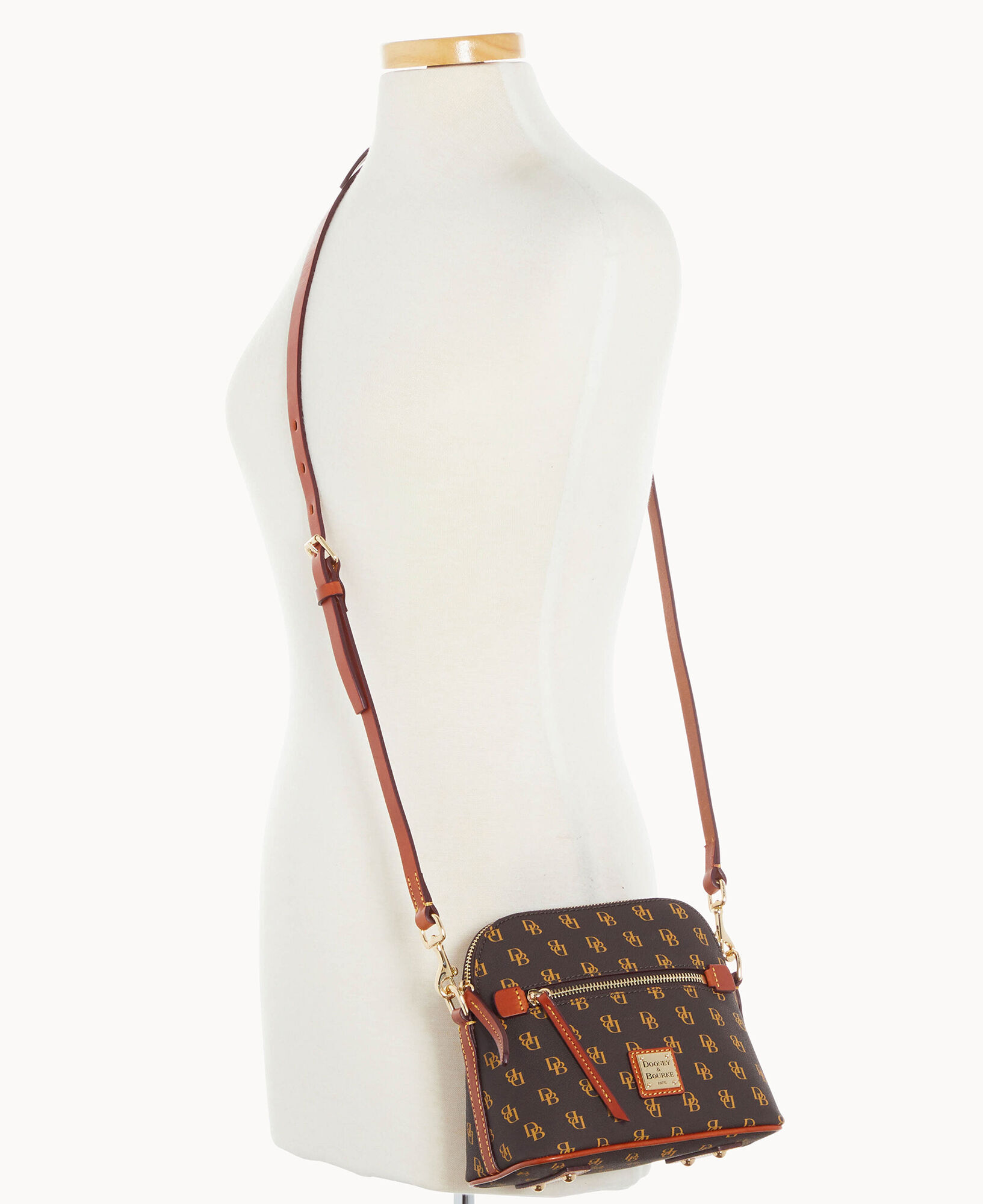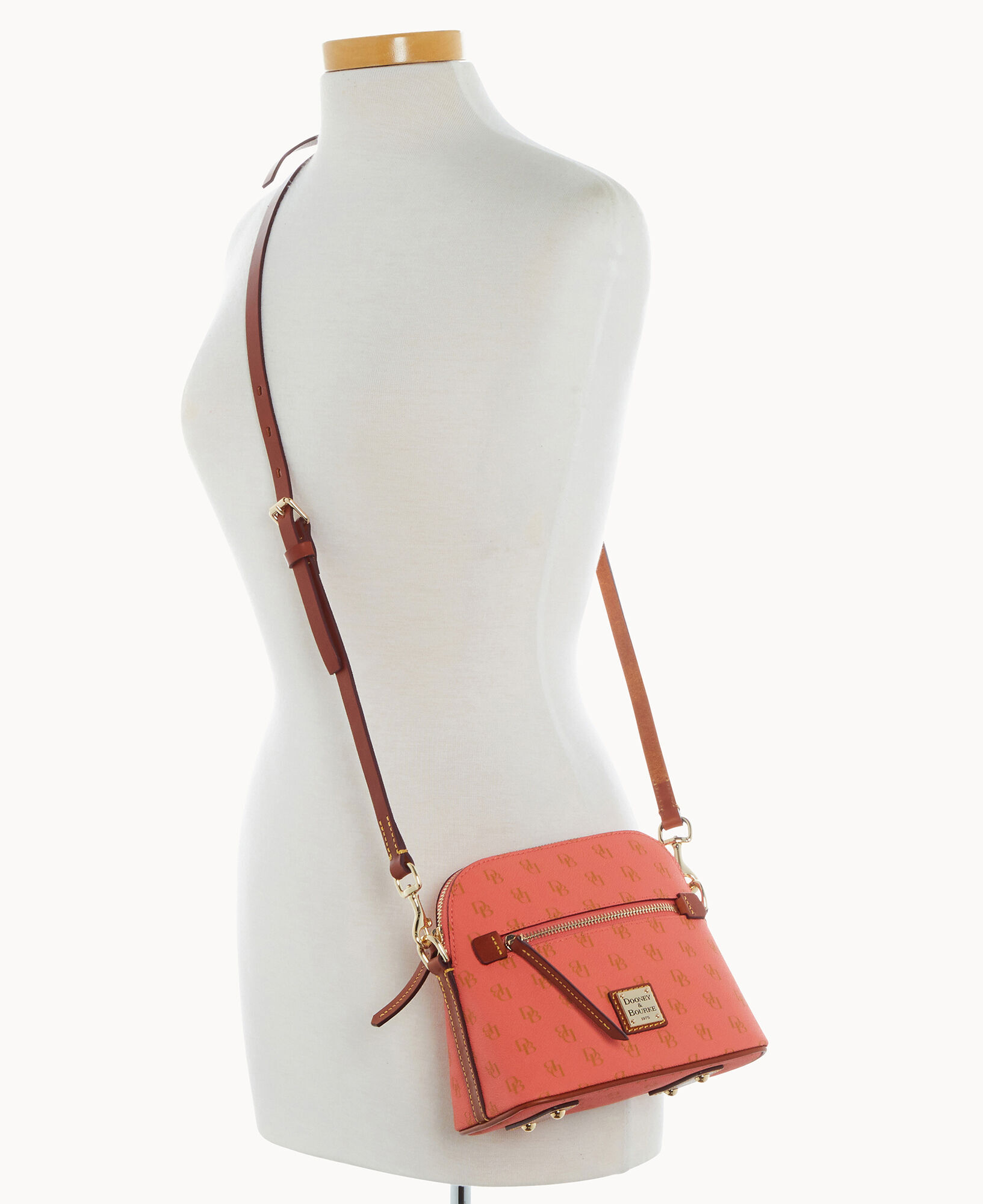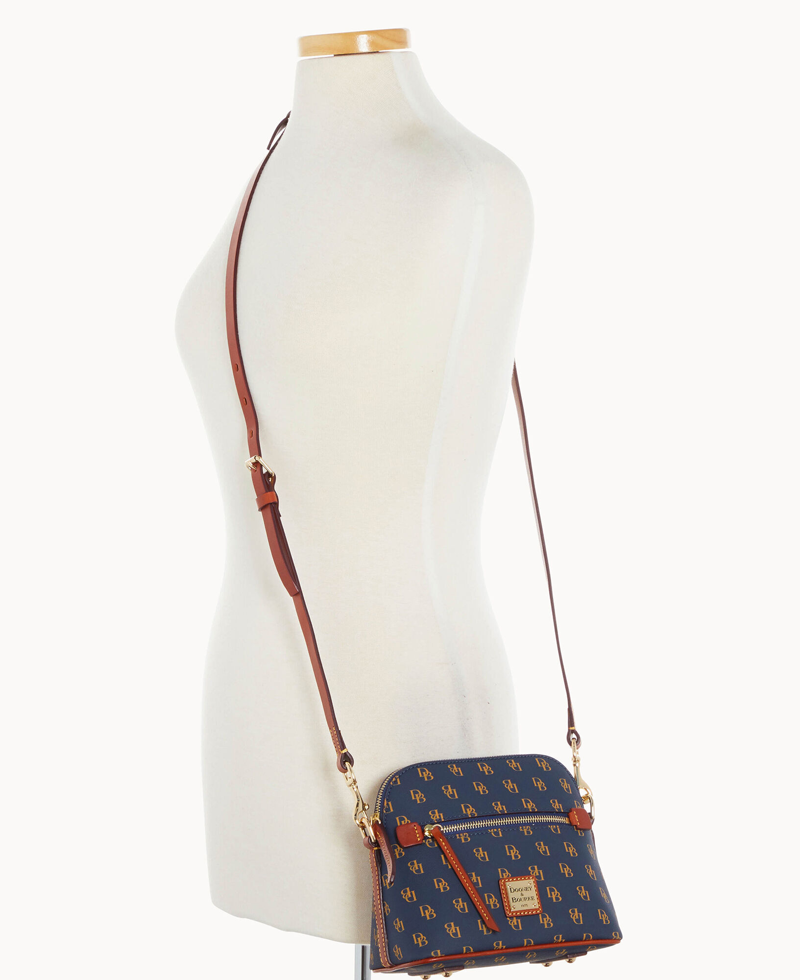 This curvy crossbody, made using coated cotton with a silky finish, is great for toting around the essentials.