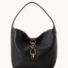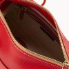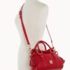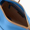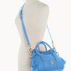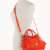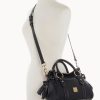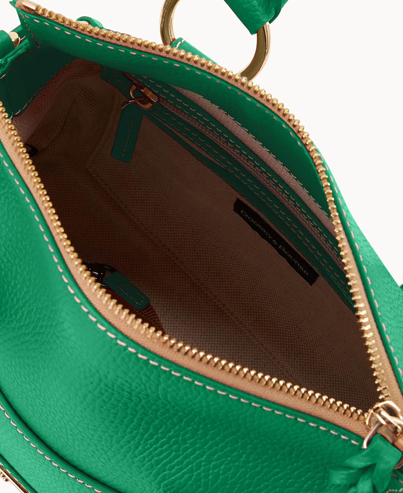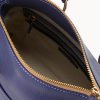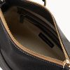Two outside pockets. Two inside pockets. One inside zip pocket. Inside key hook. Handle drop length 11.25″. Strap drop length 20″. Feet. Zipper closure. Lined.