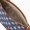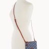 One inside zip pocket. Two inside pockets. Cell phone pocket. Inside key hook. Strap drop length 21″. Lined. Feet. Zipper closure.