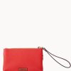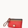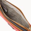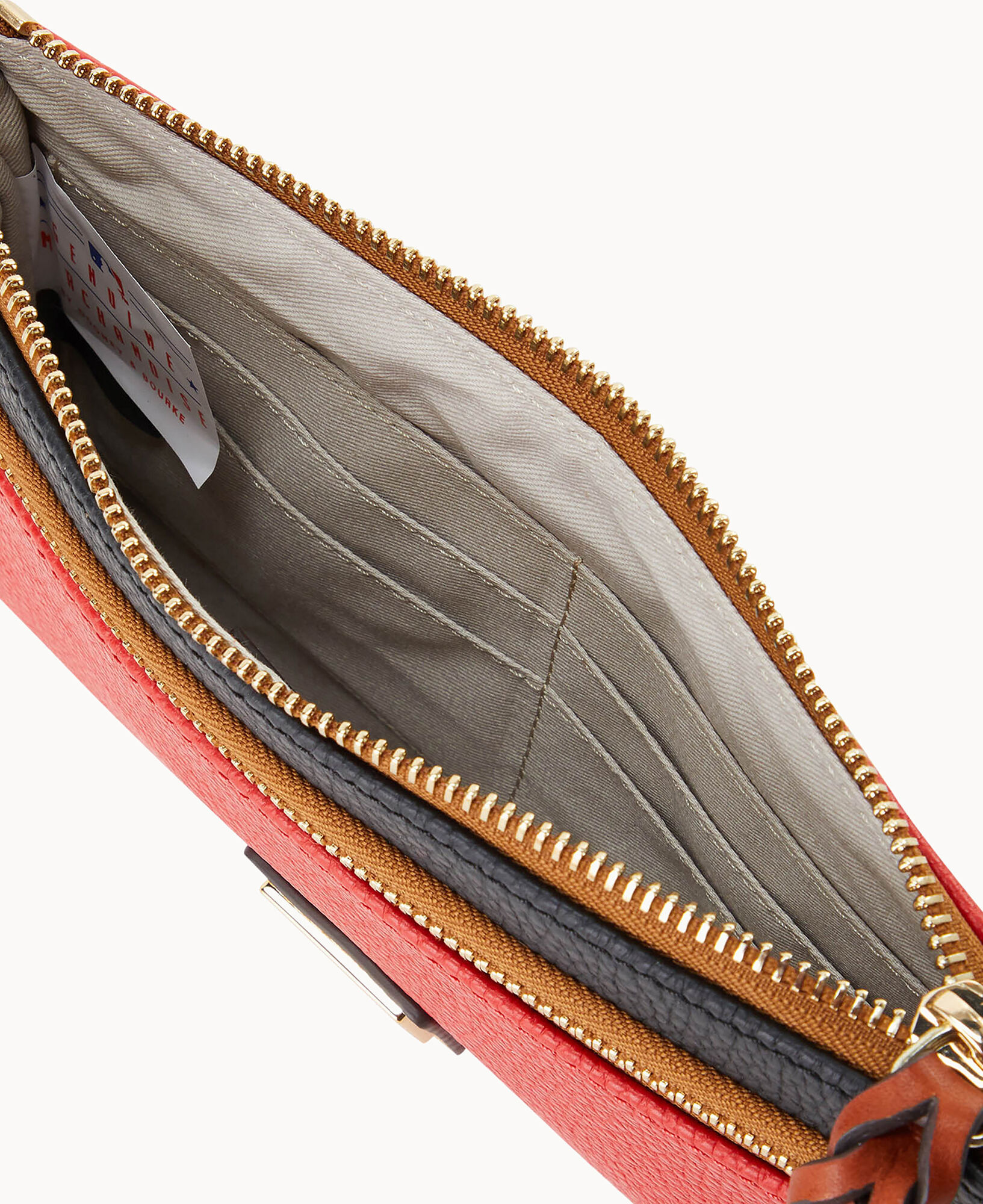 Outside front zip pocket. One inside zip pocket. Six credit card slots. Handle drop length 6″. Lined. Zipper closure.