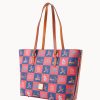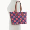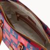 One outside zipper pocket. Two inside pockets. One inside cell phone pocket. One inside zipper pocket. Inside key hook. Strap drop length 9.75″. Zipper closure. Lined. Feet.