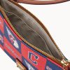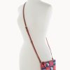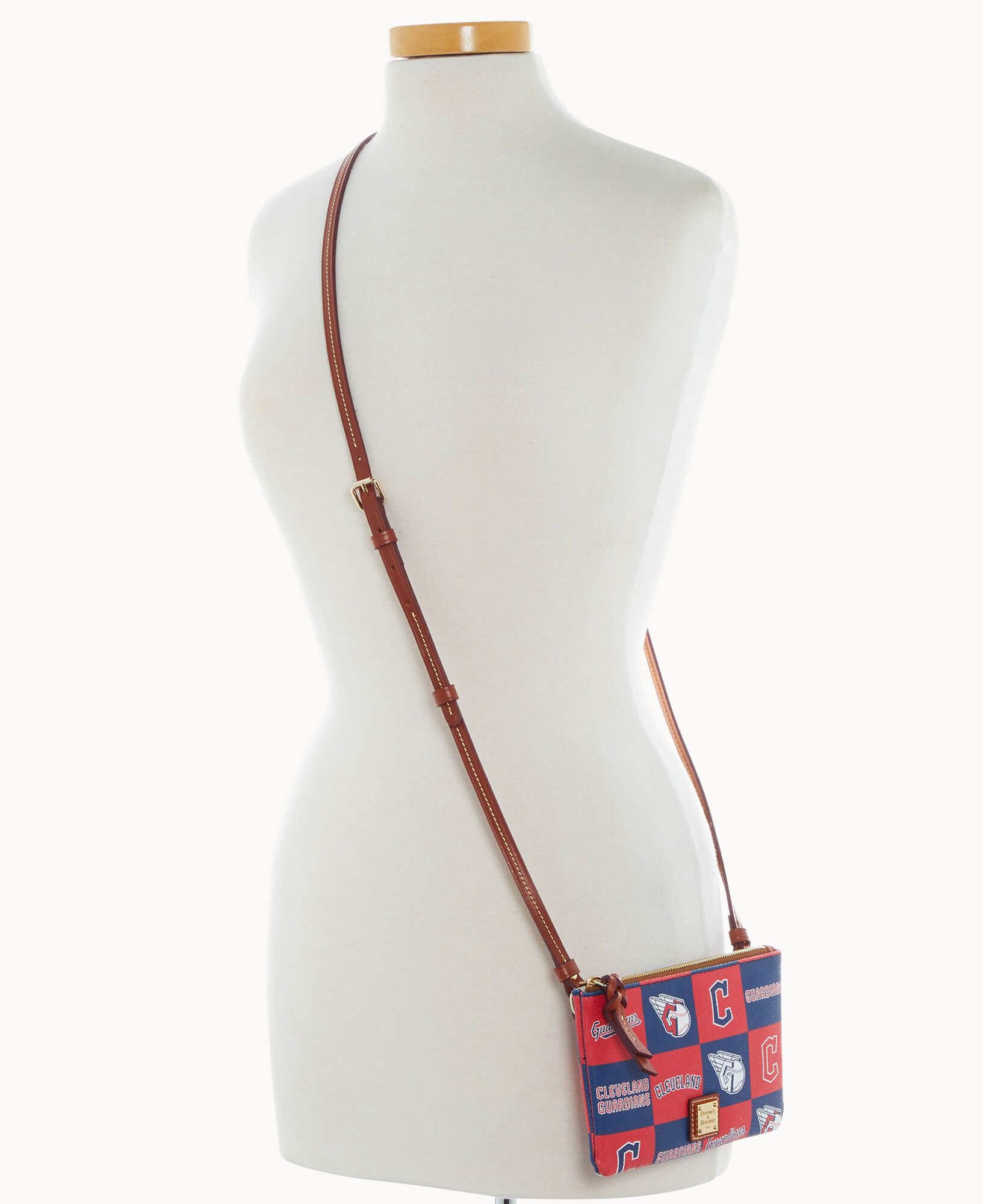 One inside zip pocket. Two inside pockets. Cell phone pocket. Inside key hook. Strap drop length 21″. Lined. Feet. Zipper closure.