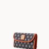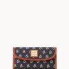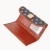 One outside zip pocket. One inside pocket. License pocket with window. Two bill compartments. Seven credit card slots. Lined. Feet. Snap closure.