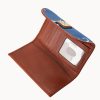 One outside zip pocket. One inside pocket. License pocket with window. Two bill compartments. Seven credit card slots. Lined. Feet. Snap closure.