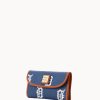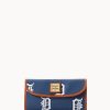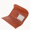 One outside zip pocket. One inside pocket. License pocket with window. Two bill compartments. Seven credit card slots. Lined. Feet. Snap closure.
