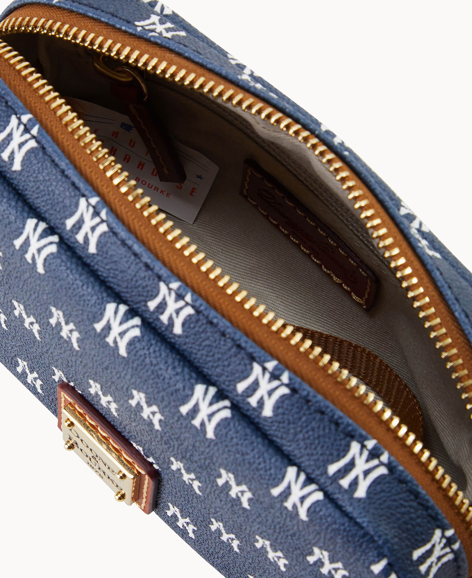 One inside pocket. One inside zip pocket. Two inside credit card slots. Inside key hook. Adjustable strap 14.25″ 26.25″. Zipper closure. Lined.