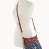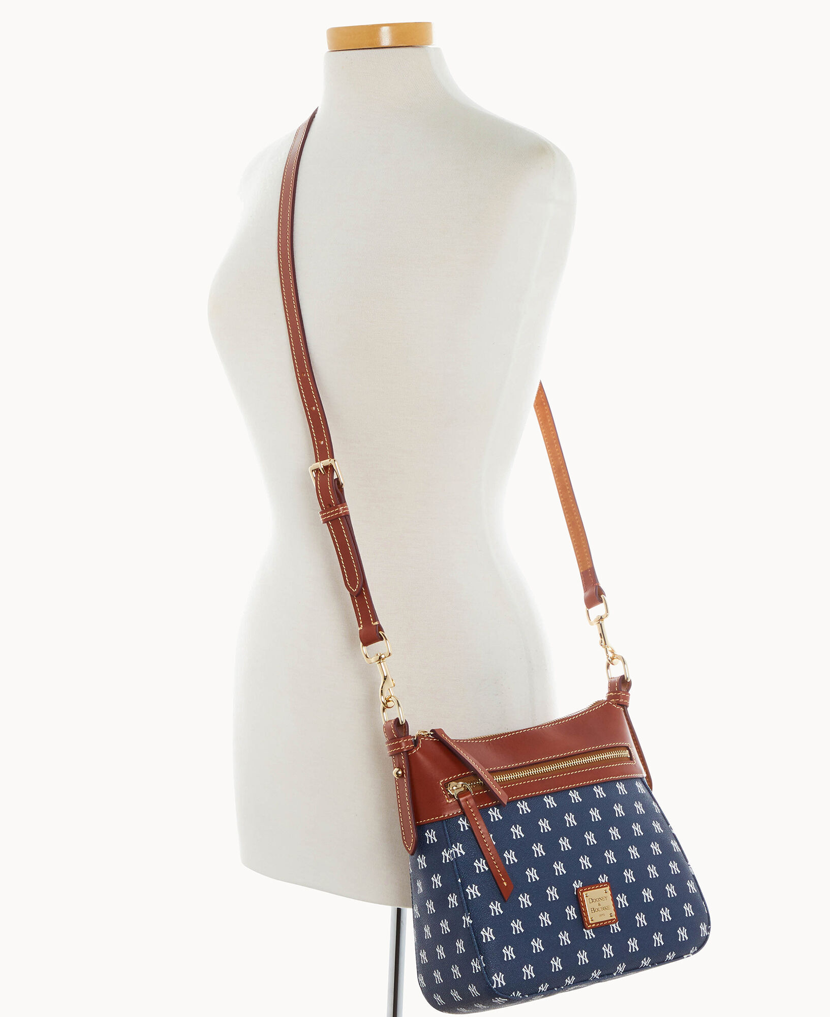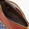 One outside zip pocket. One inside zip pocket. Two inside pockets. Adjustable, detachable shoulder strap. Strap drop length 27″. Inside key hook. Lined. Zipper closure.