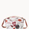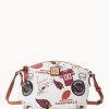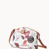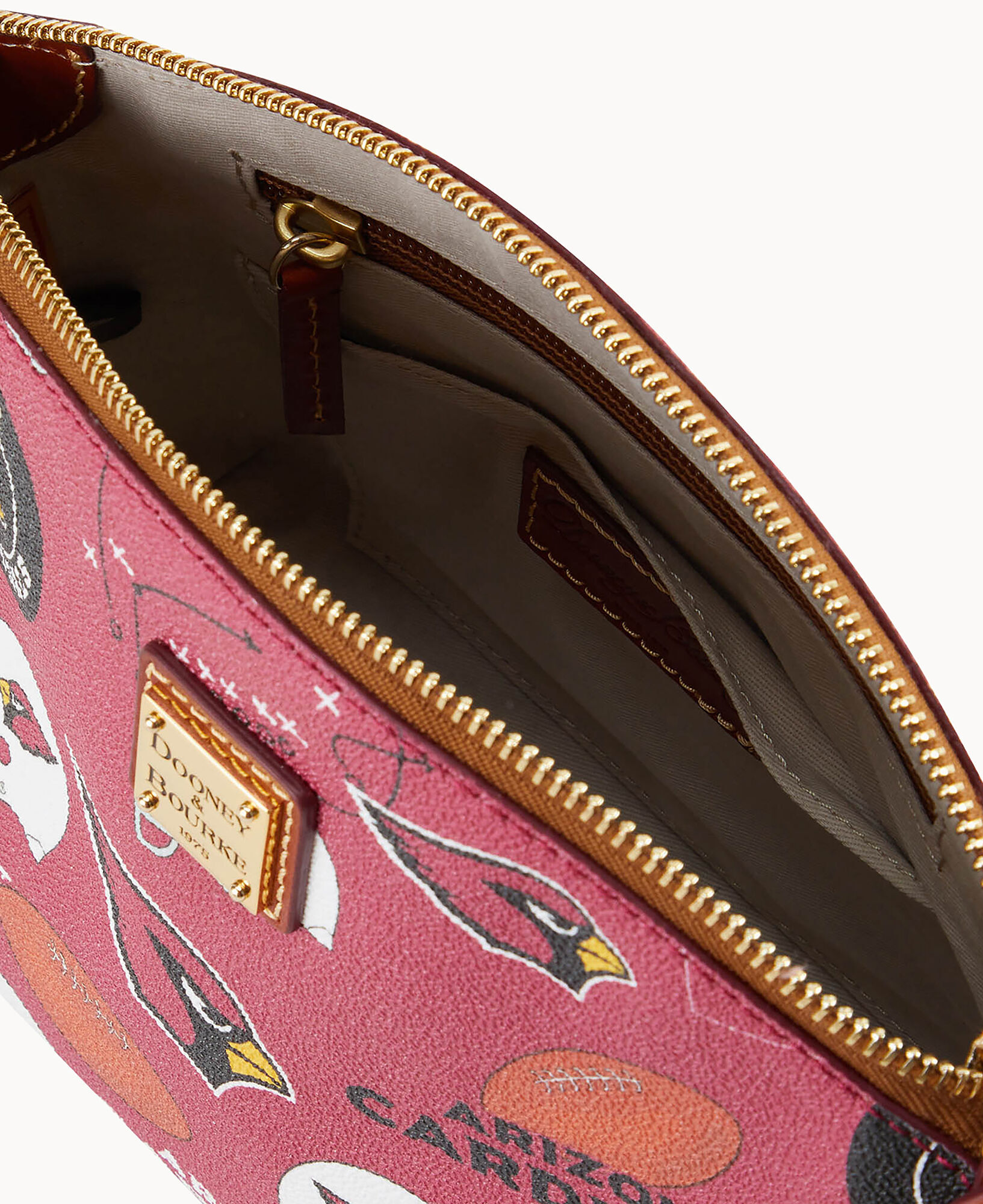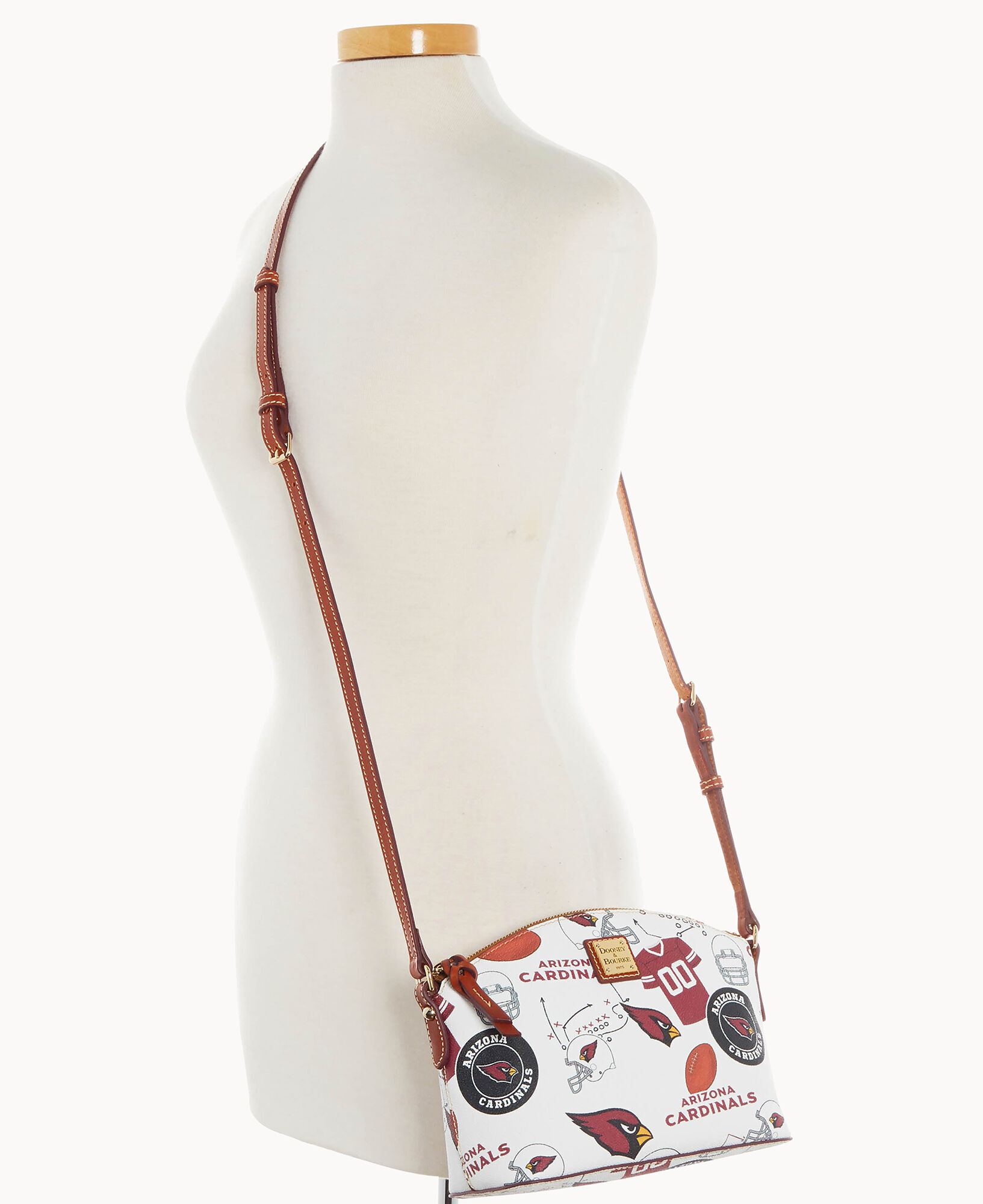Outside back pocket. One inside zip pocket. Two inside pockets. Cell phone pocket. Inside key hook. Handle drop length 7″. Adjustable shoulder strap. Strap drop length 25″. Lined. Zipper closure.