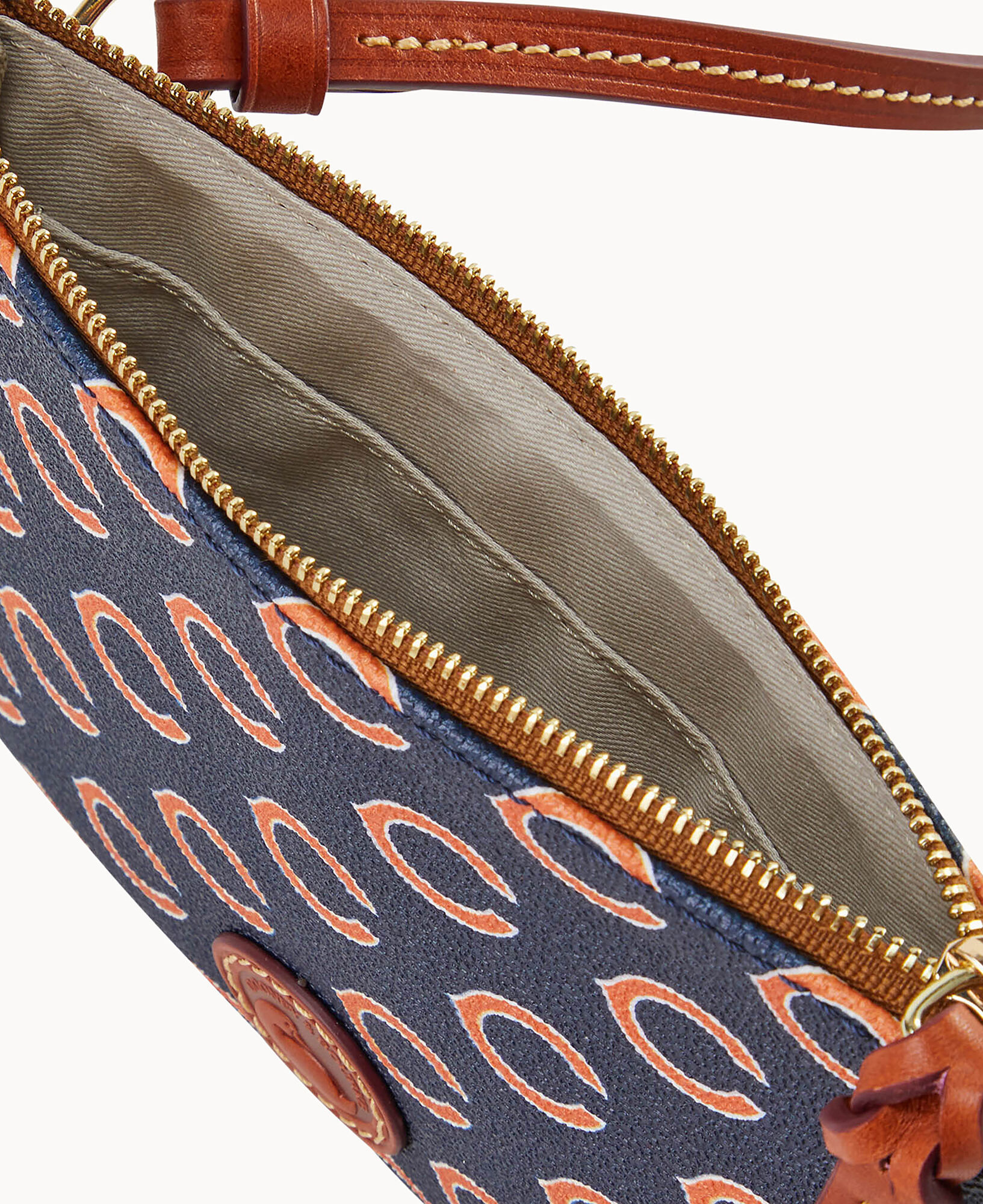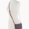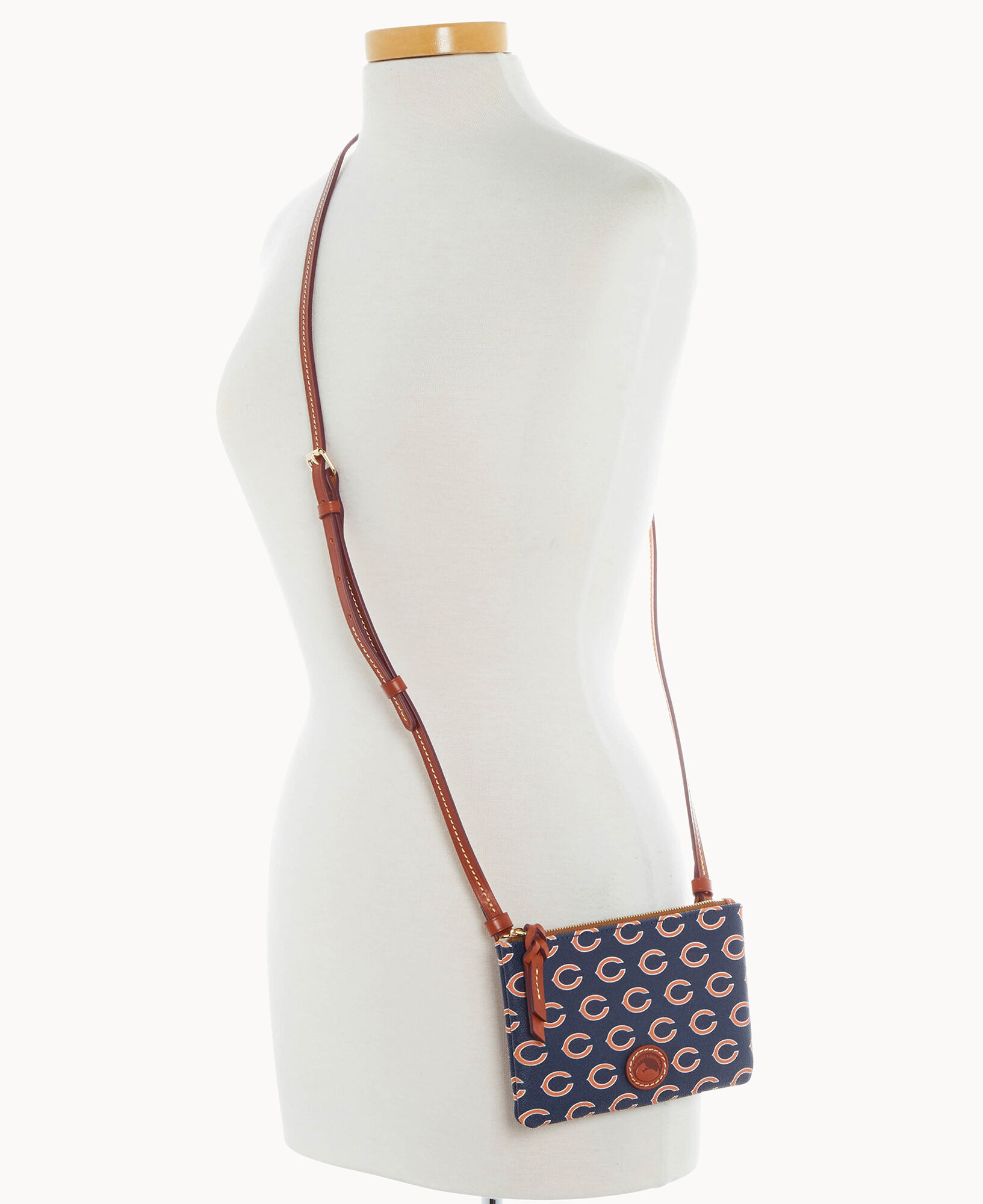 One inside slip pocket. Adjustable strap. Strap drop length 26″. Lined. Zipper closure.