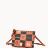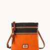 One inside zip pocket. Two inside pockets. Cell phone pocket. Inside key hook. Strap drop length 21″. Lined. Feet. Zipper closure.