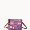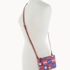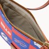 One inside zip pocket. Two inside pockets. Cell phone pocket. Inside key hook. Strap drop length 21″. Lined. Feet. Zipper closure.