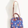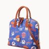 One inside zip pocket. Two inside pockets. Cell phone pocket. Inside key hook. Handle drop length 4″. Adjustable, detachable shoulder strap. Strap drop length 15.5″. Lined. Feet. Zipper closure.