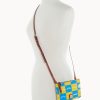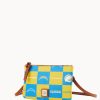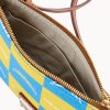 One inside zip pocket. Two inside pockets. Cell phone pocket. Inside key hook. Strap drop length 21″. Lined. Feet. Zipper closure.