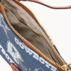 One inside slip pocket. Adjustable strap. Strap drop length 26″. Lined. Zipper closure.