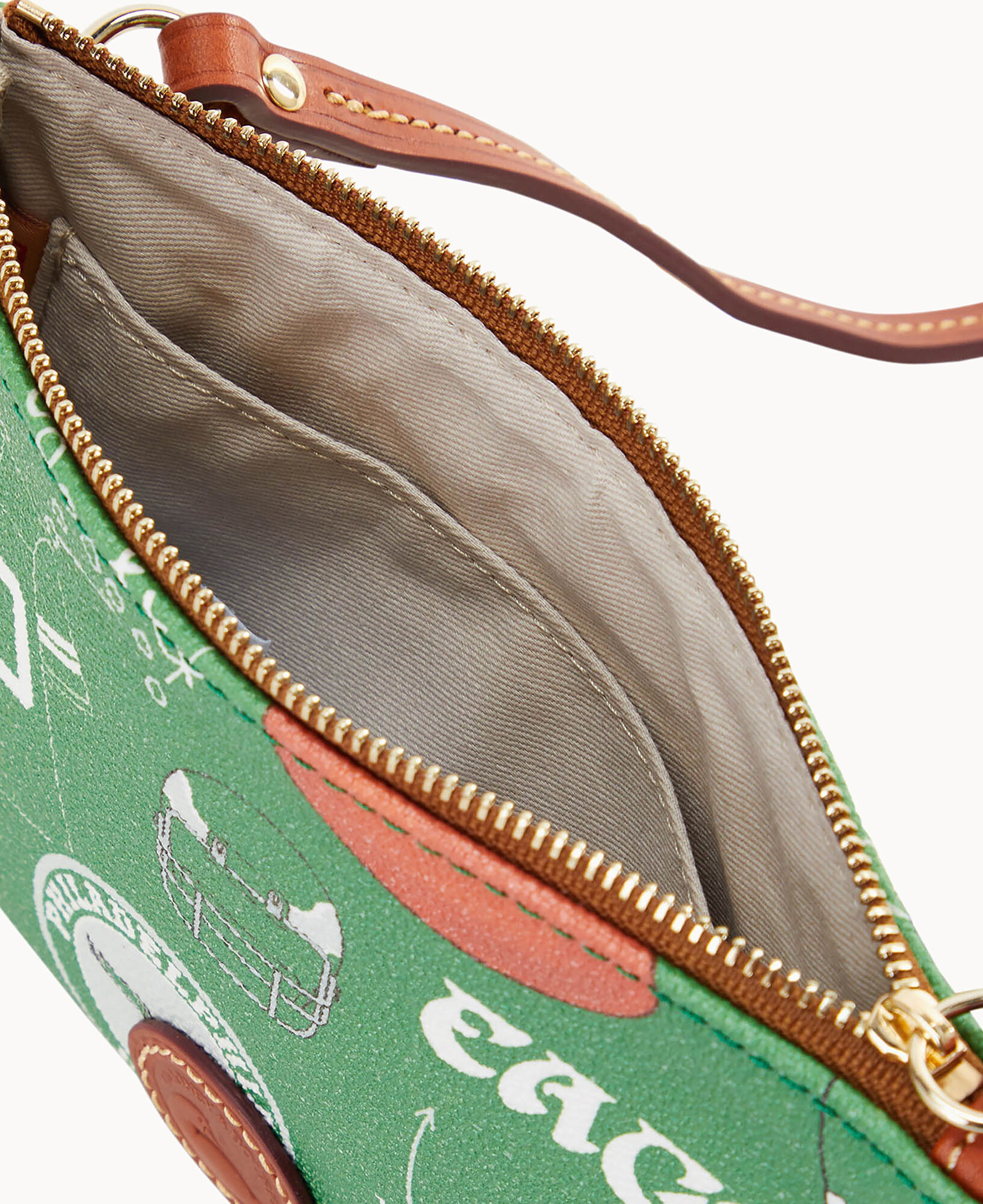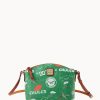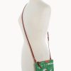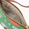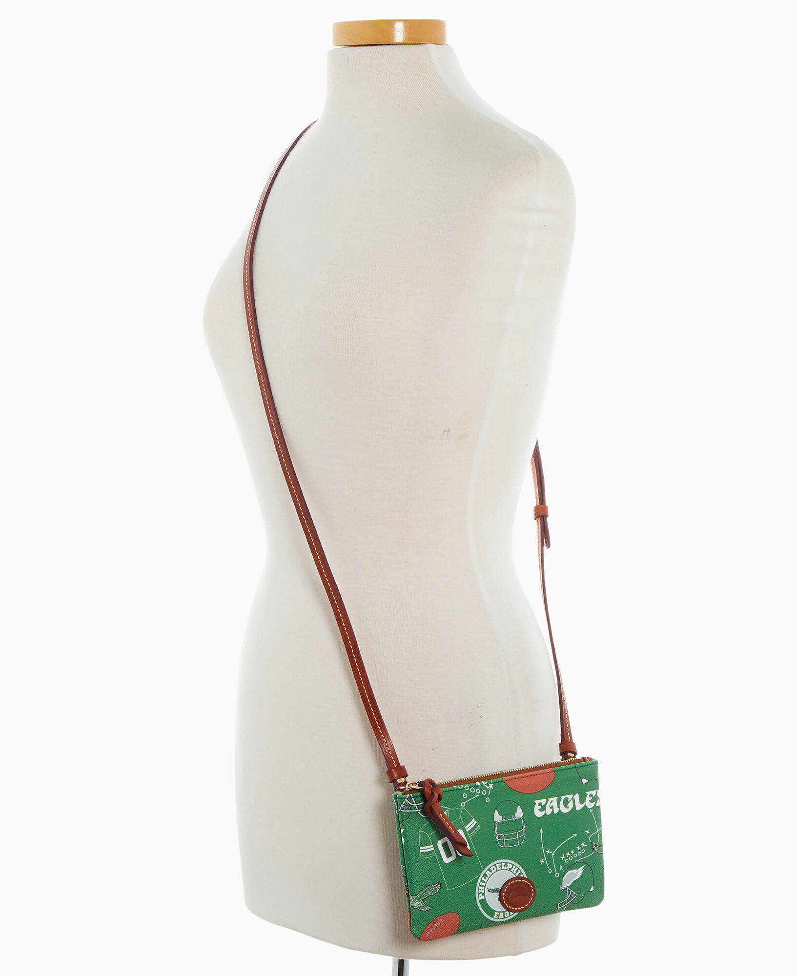 One inside slip pocket. Adjustable strap. Strap drop length 26″. Lined. Zipper closure.