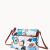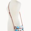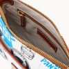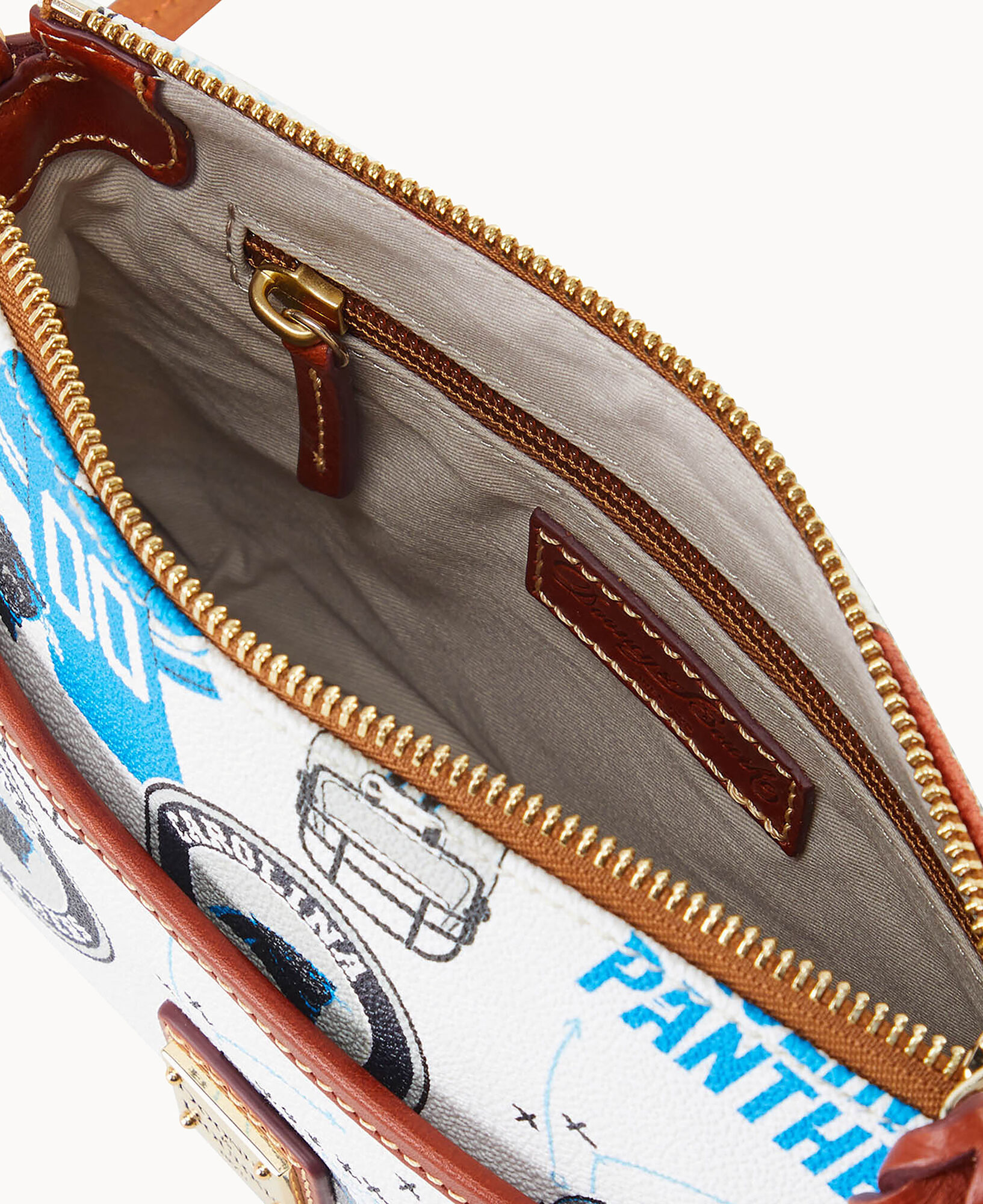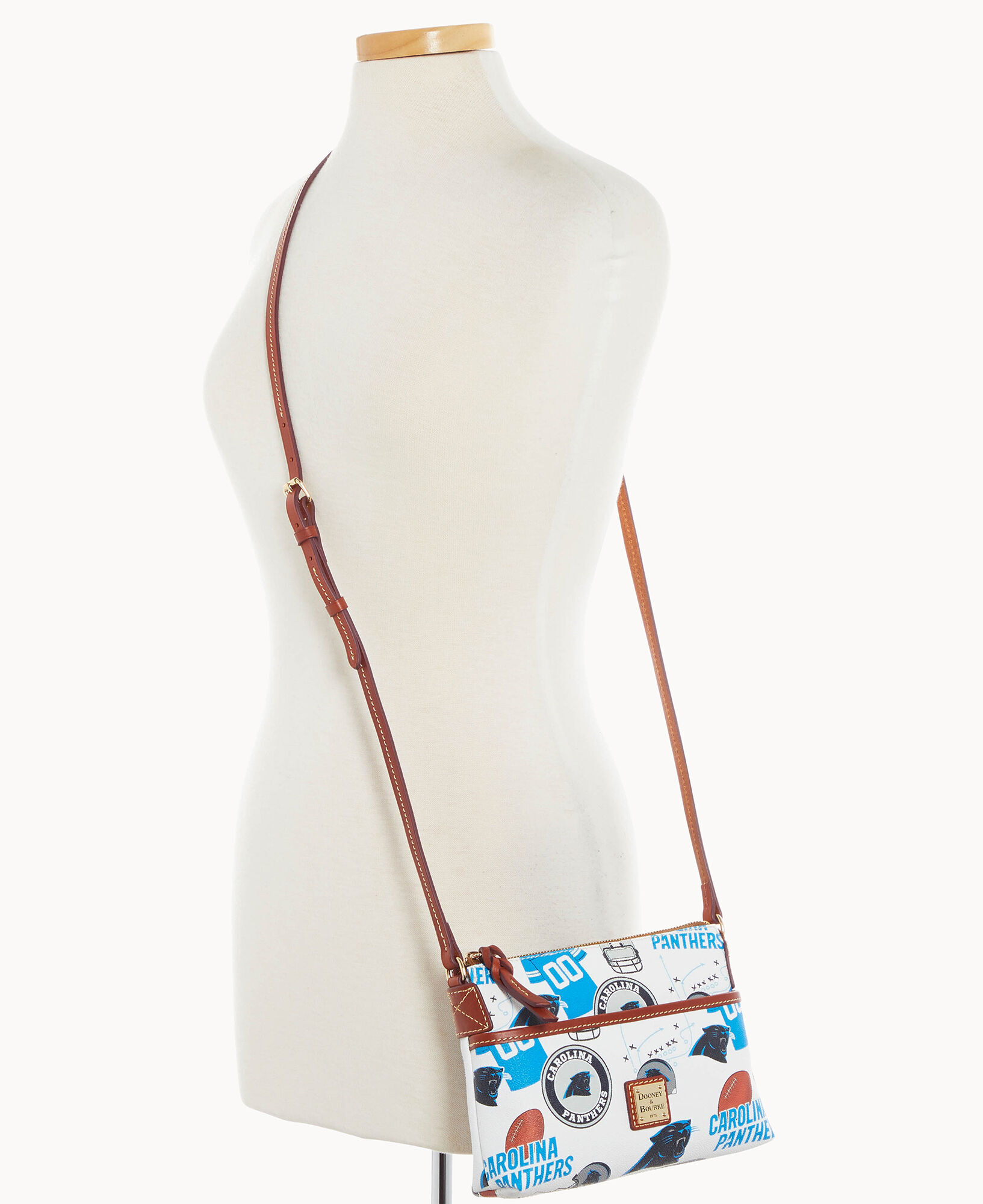 One outside pocket. One inside zip pocket. Two inside pockets. Cell phone pocket. Adjustable shoulder strap. Strap drop length 25″. Lined. Zipper closure.