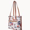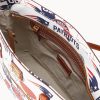 One outside zip pocket. One inside zip pocket. Two inside pockets. Cell phone pocket. Inside key hook. Strap drop length 11.5″. Feet. Zipper closure.