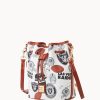 Two inside pockets. Inside key hook. Strap drop length 25″. Adjustable and detachable strap. Lined. Feet. Drawstring closure.
