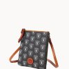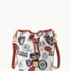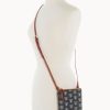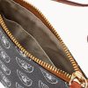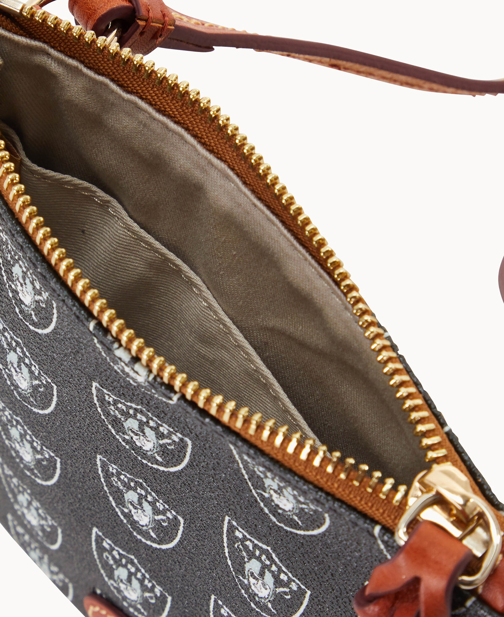 One inside slip pocket. Adjustable strap. Strap drop length 25″. Lined. Zipper closure.