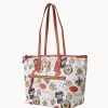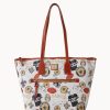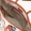One outside zip pocket. One inside zip pocket. Three inside pockets. Cell phone pocket. Inside key hook. Strap drop length 11.5″. Lined. Feet. Zipper closure.