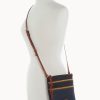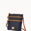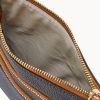 Two outside zip pockets. Cell phone pocket. Adjustable shoulder strap. Strap drop length 24″. Lined. Zipper closure.