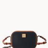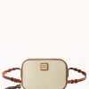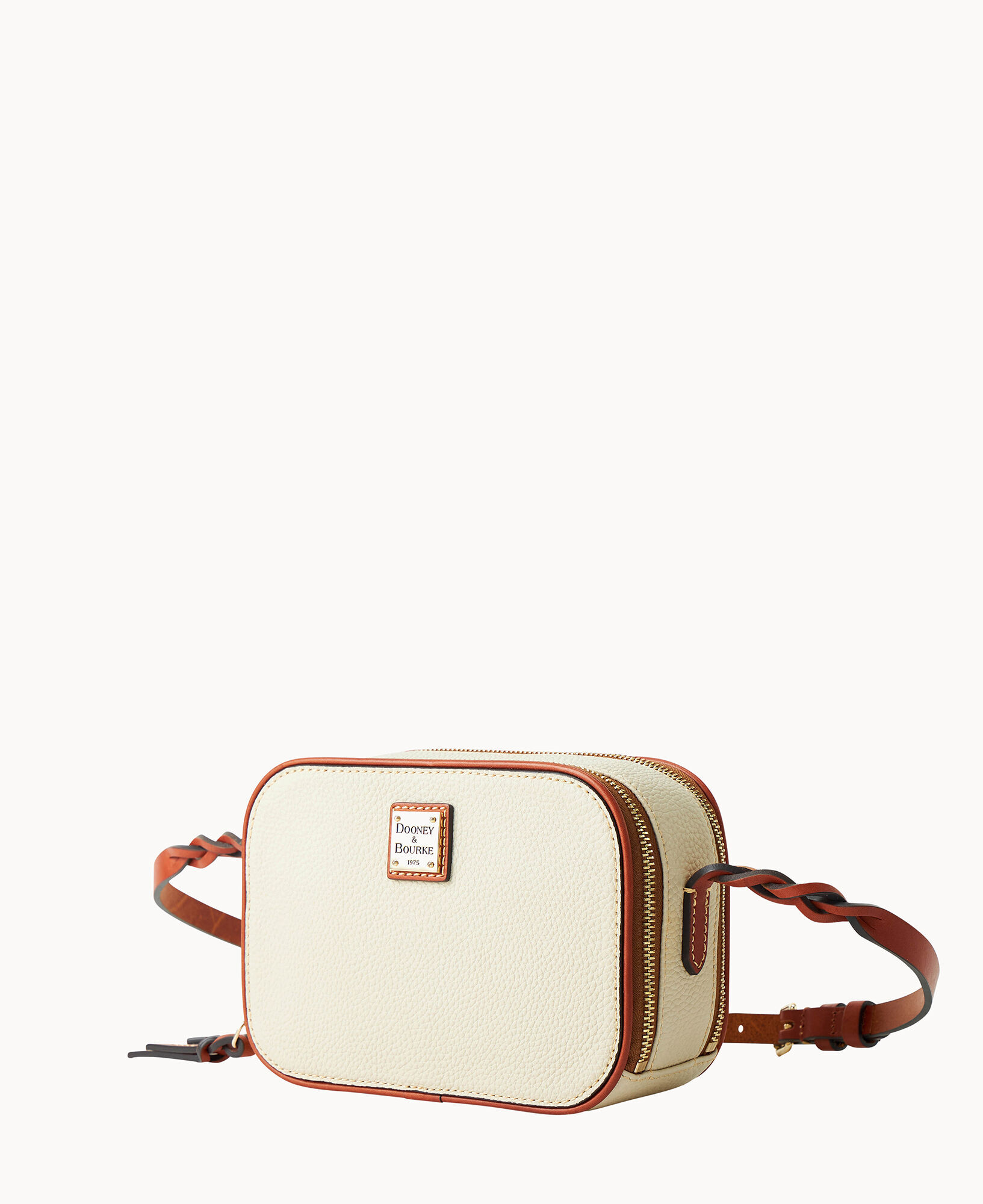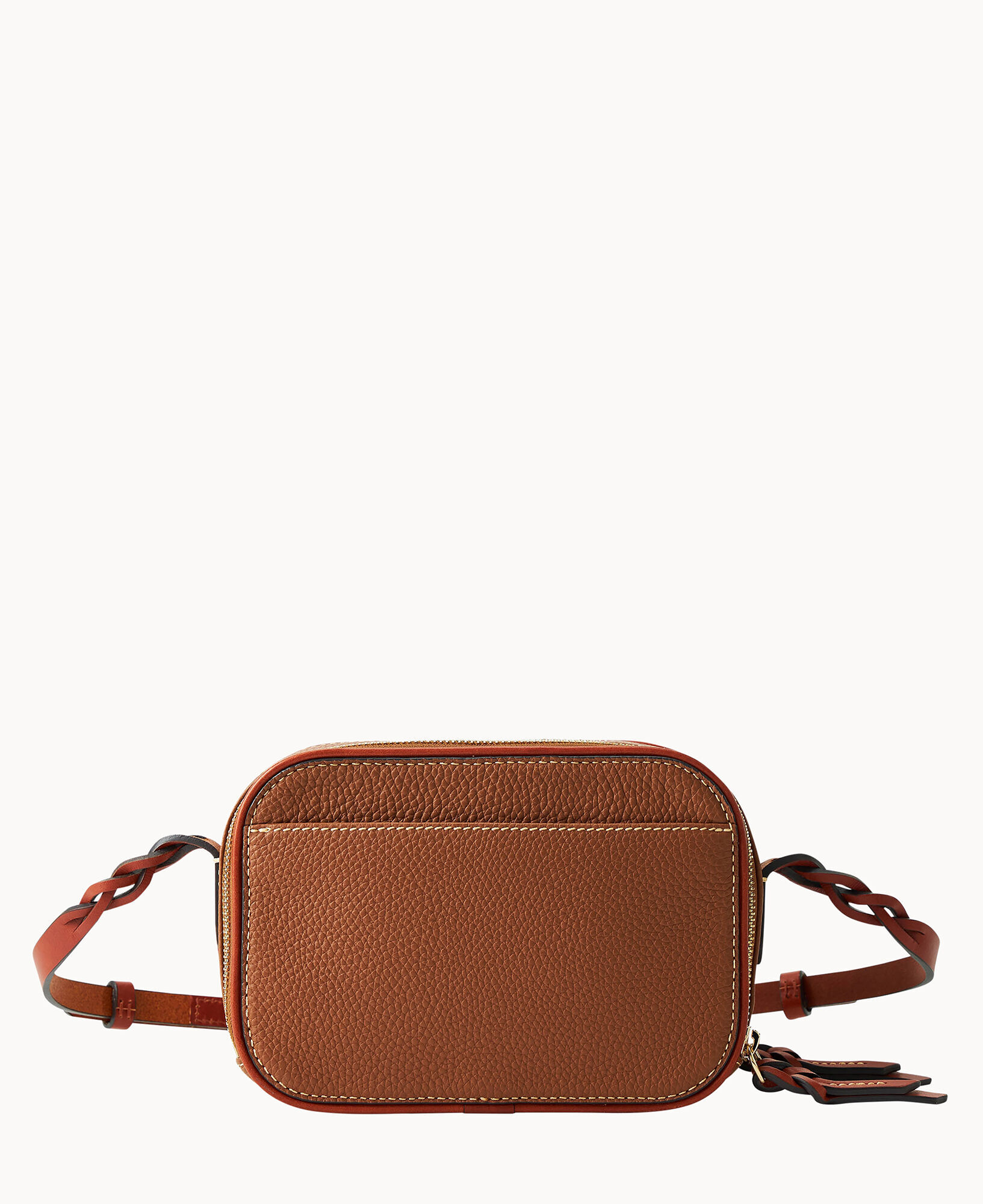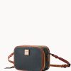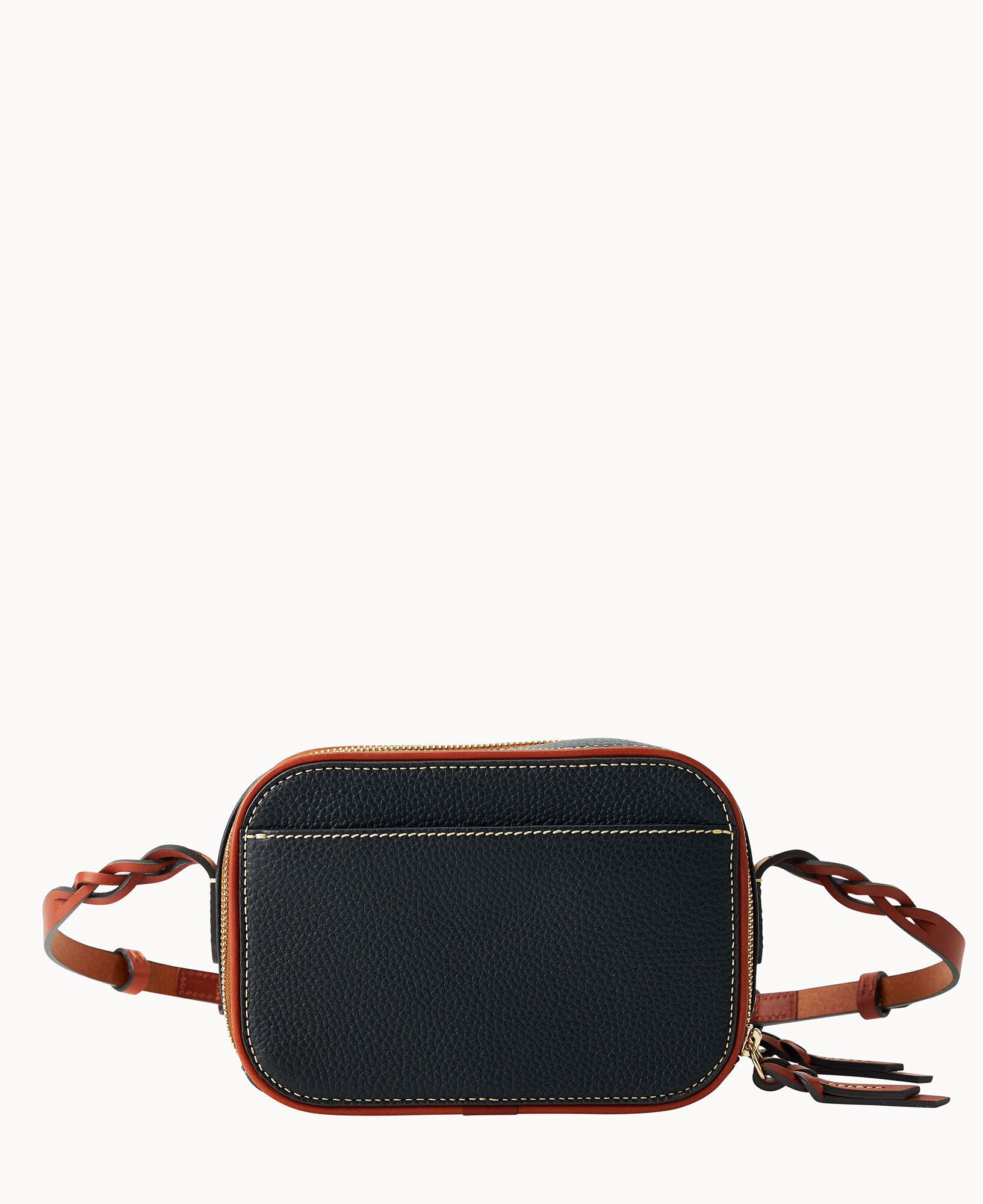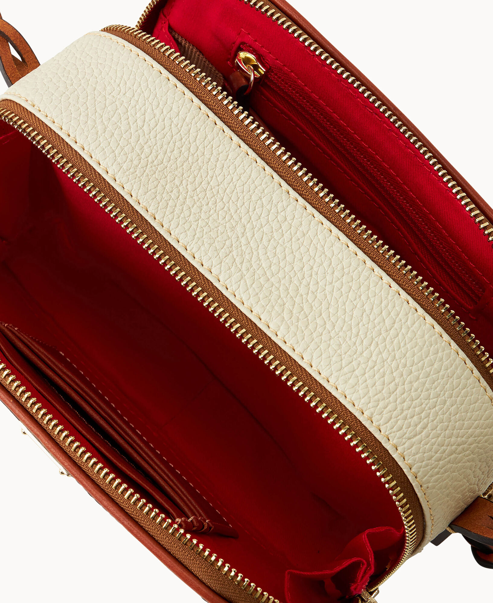 One outside pocket. Two zipper compartments. Four inside credit card slots. One inside zipper pocket. One inside pocket. Inside key hook. Adjustable shoulder strap. Shoulder strap drop length 23.5″. Lined. Zipper closure.