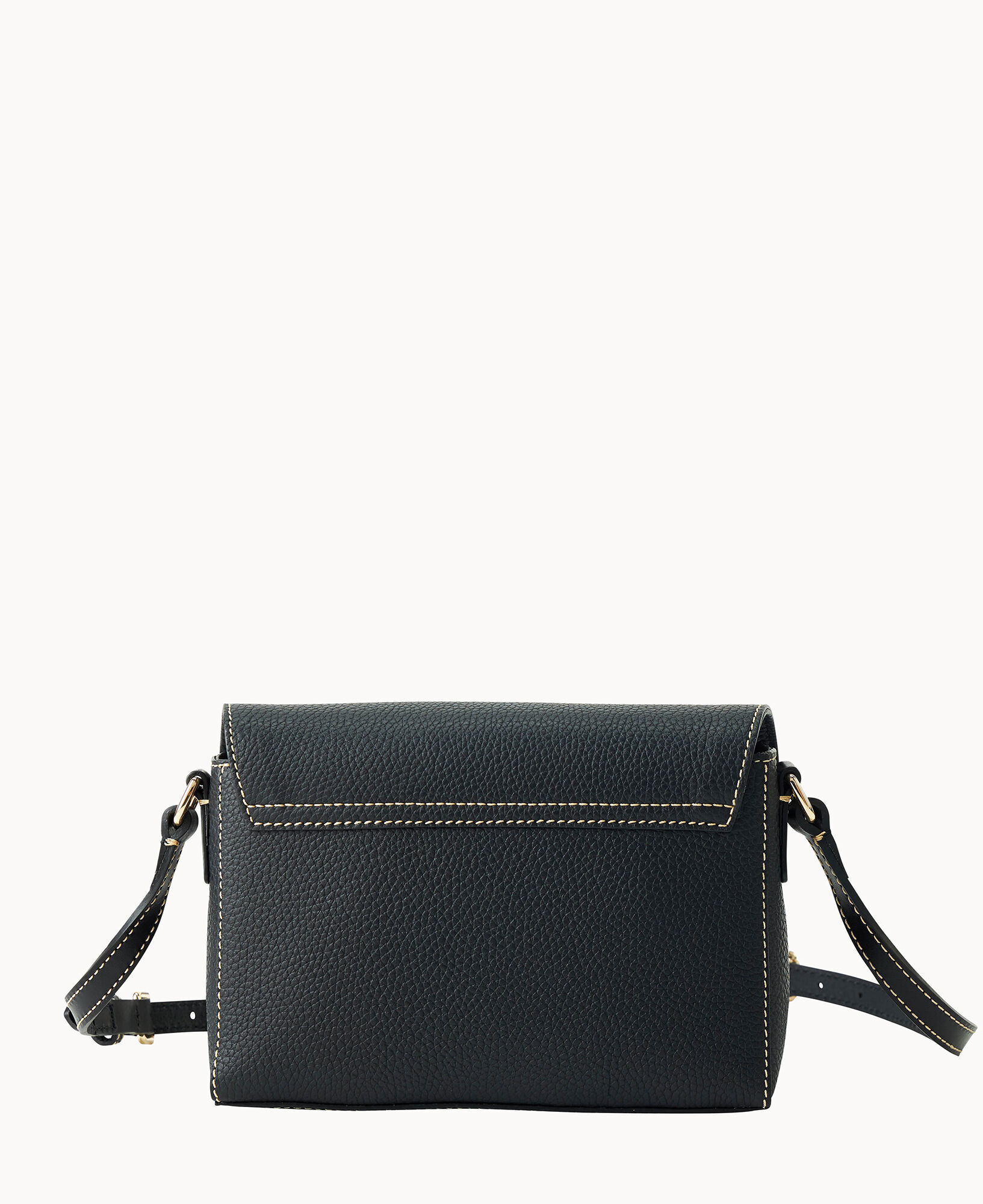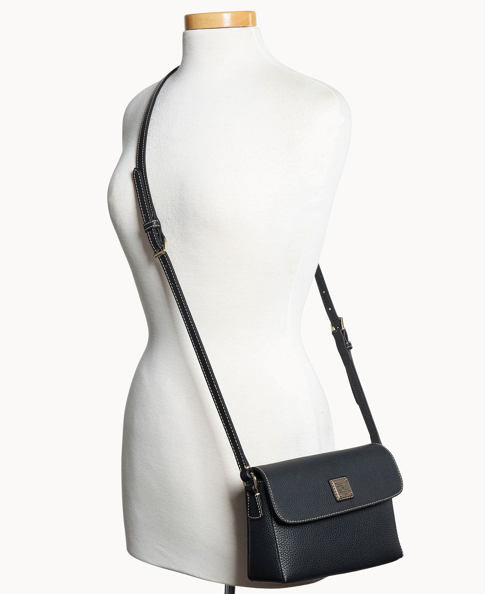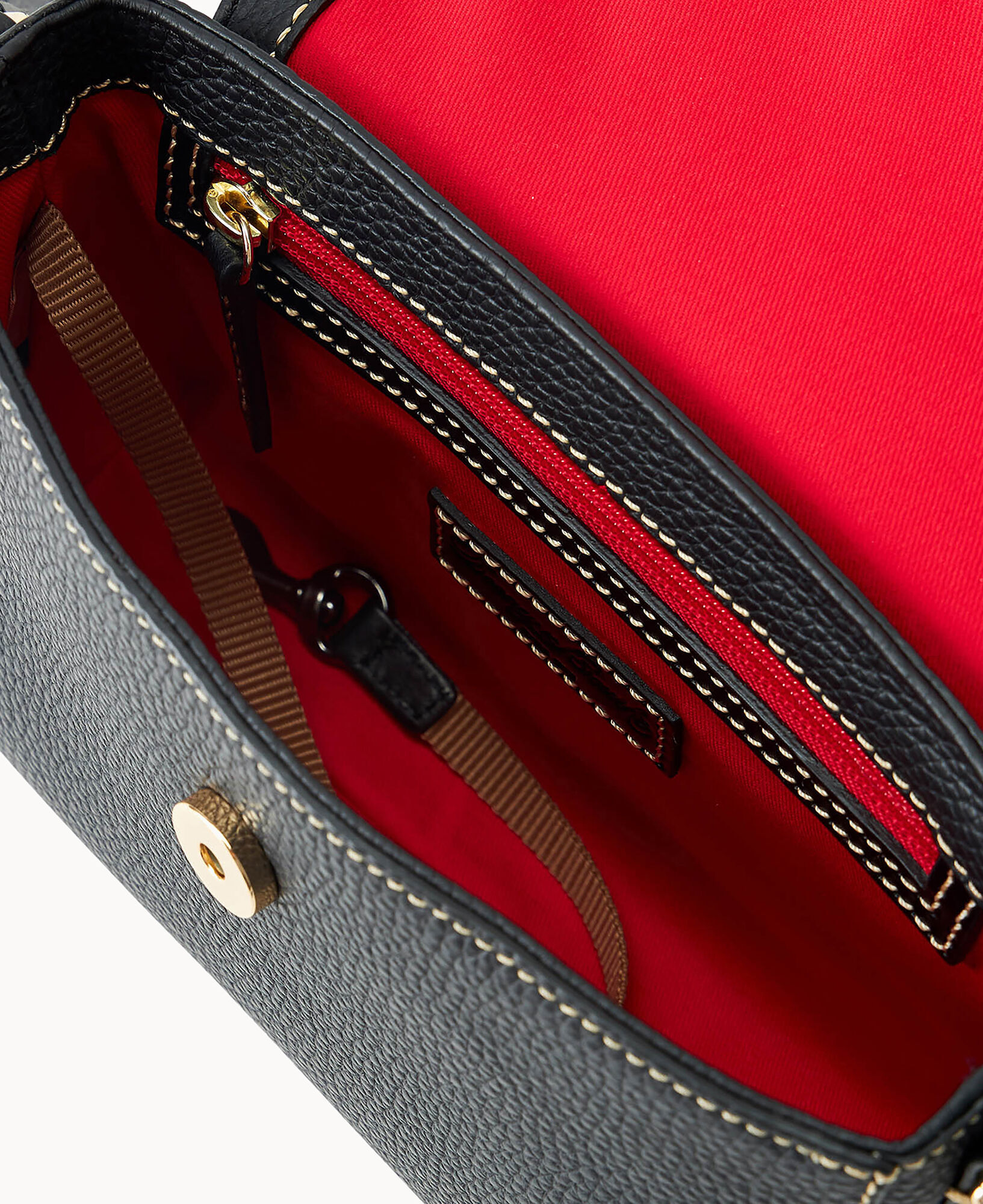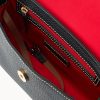 One inside zip pocket. One inside poccket. Inside key hook. Adjustable shoulder strap. Strap drop length 26.5″. Lined. Magnetic snap flap closure.