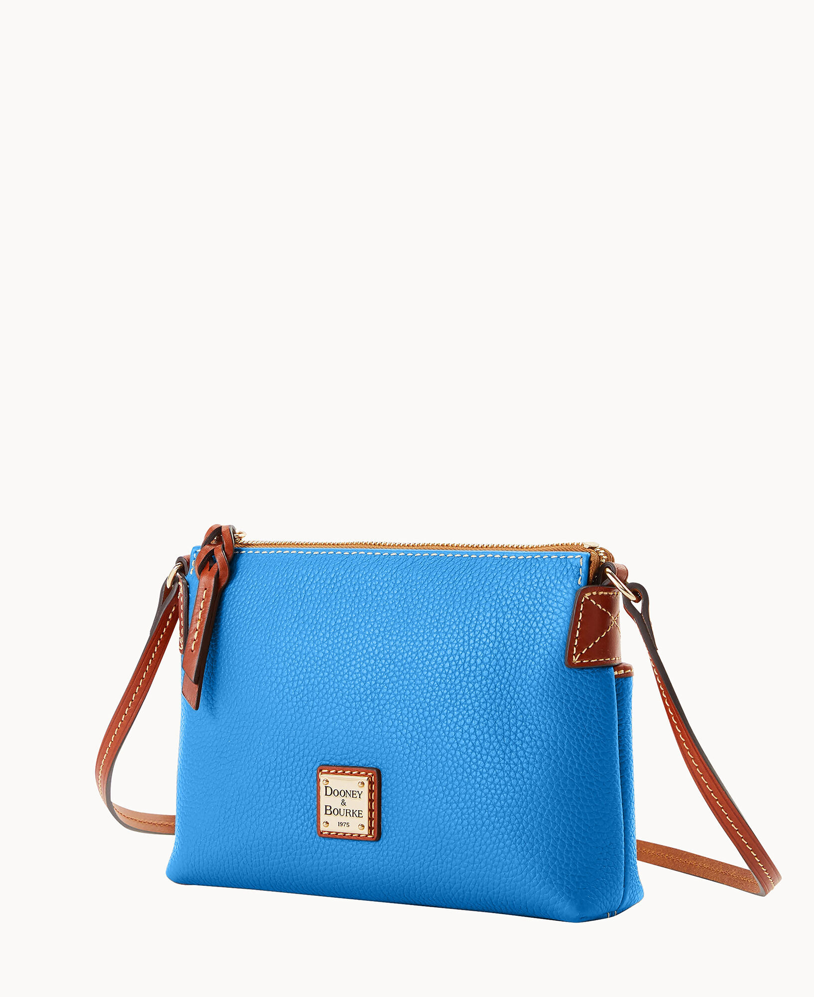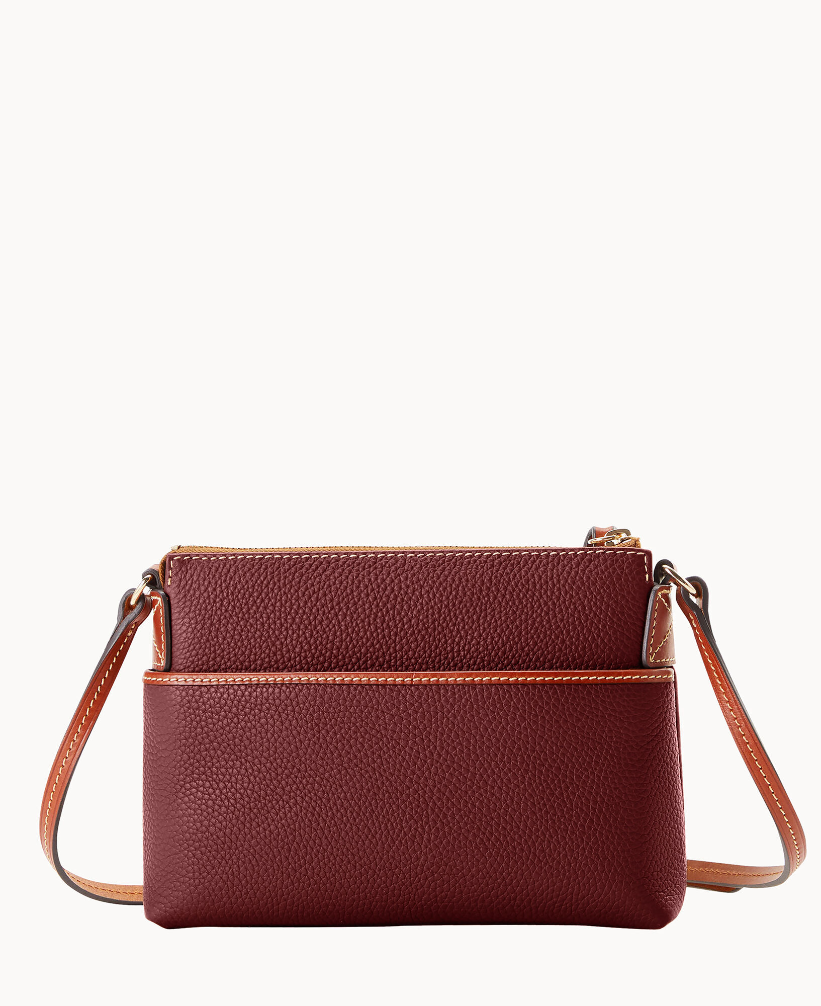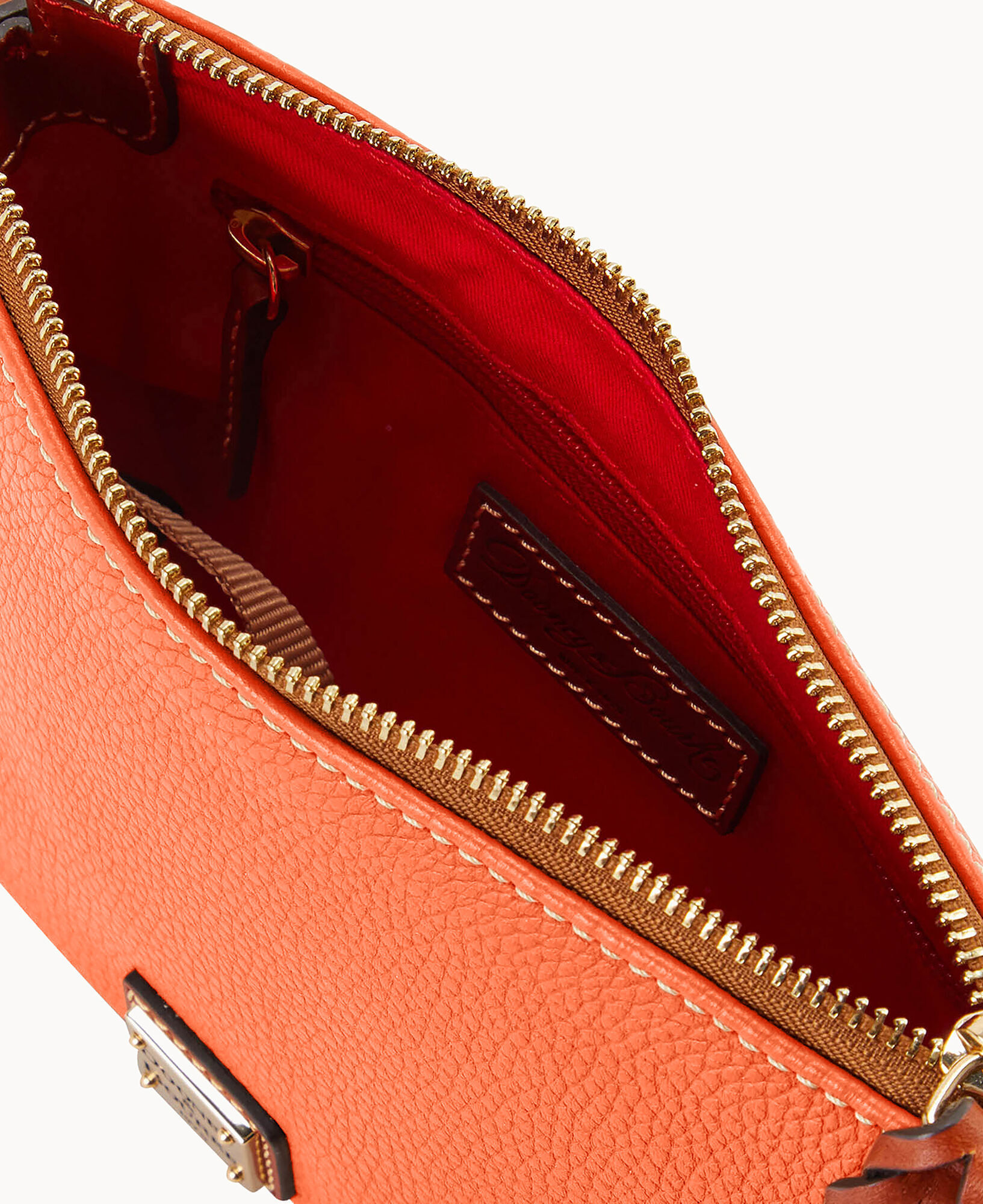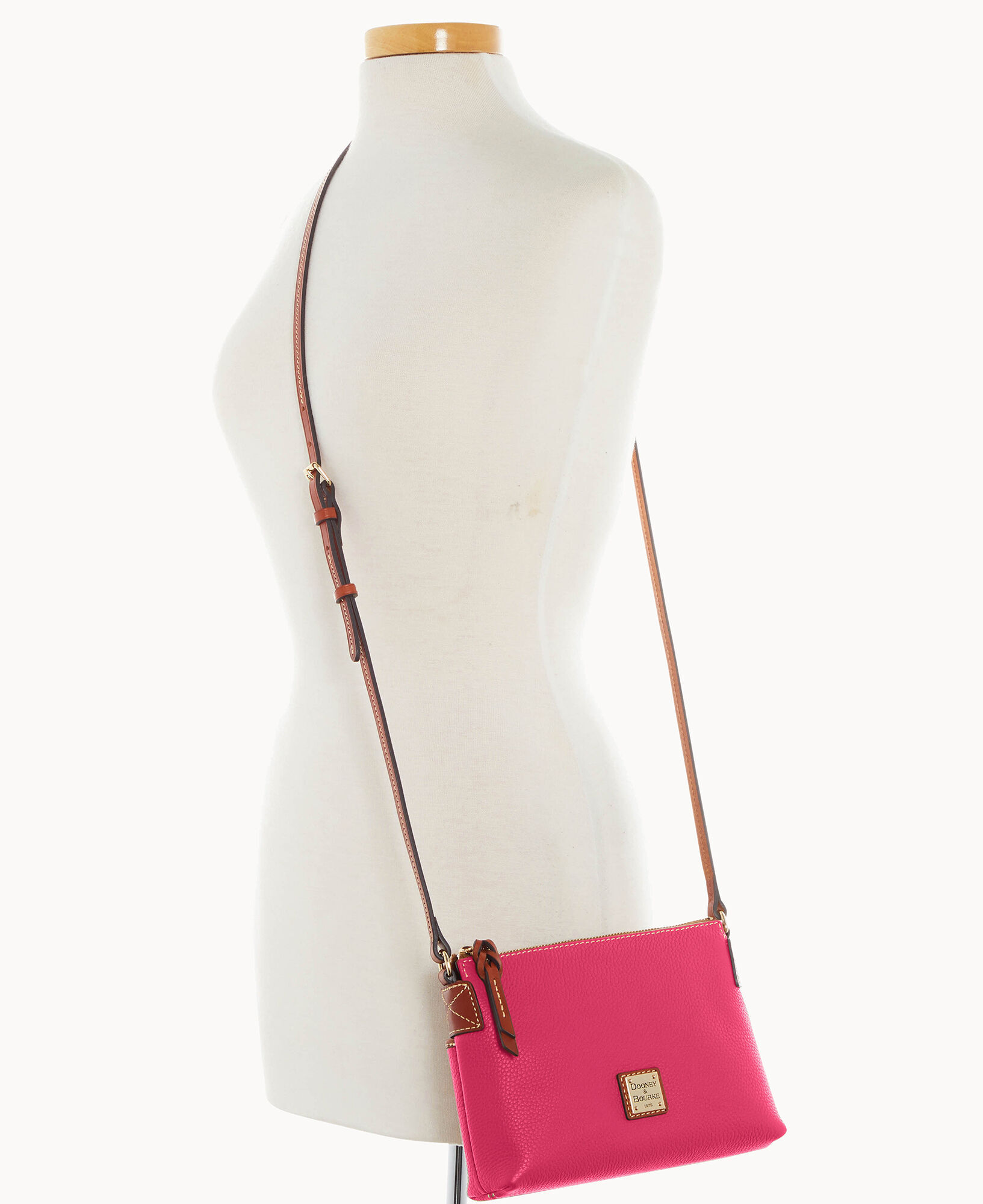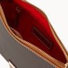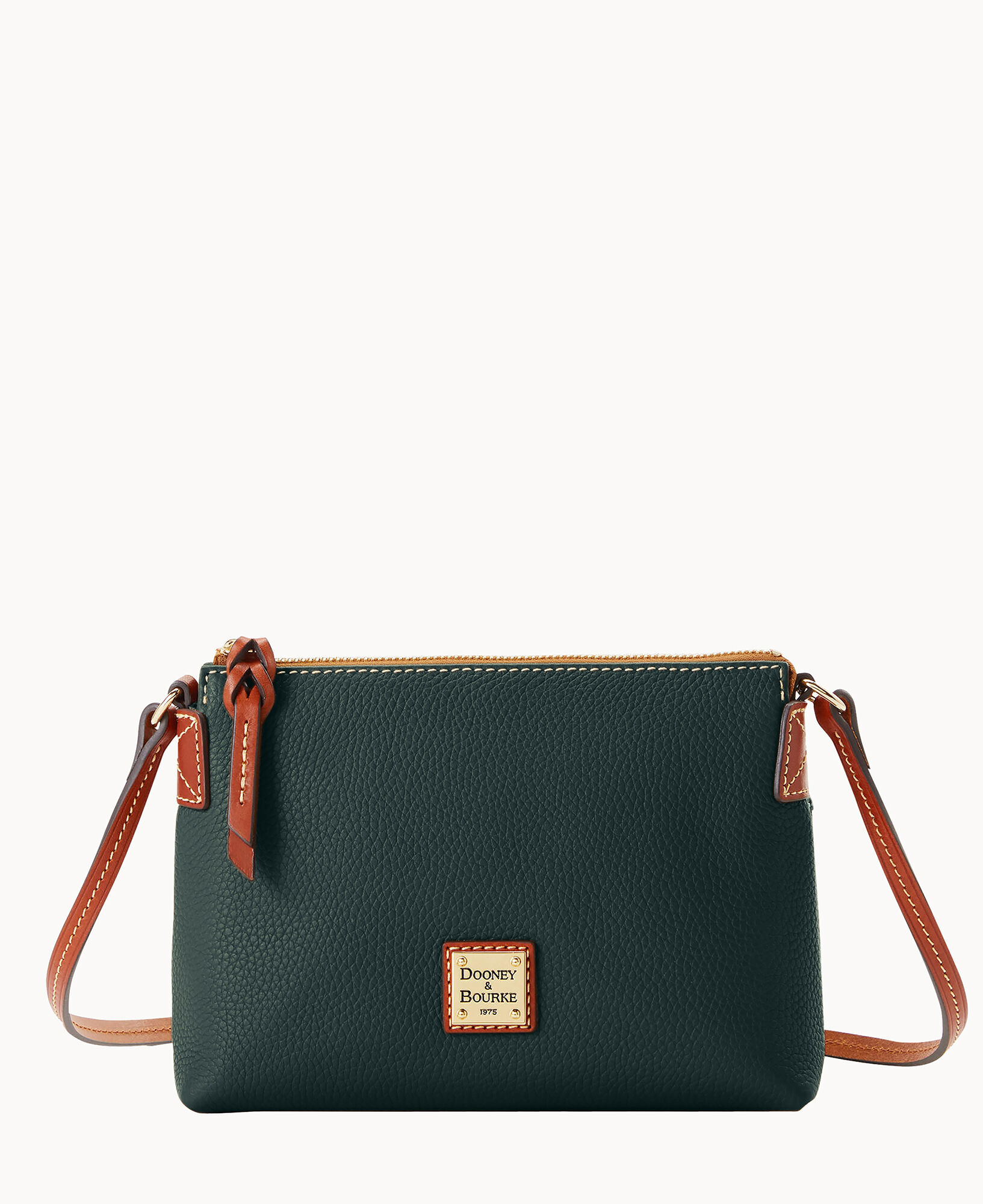 One outside slip pocket. One inside zip pocket. One inside slip pocket. Inside key hook. Adjustable strap.Strap drop length 28″. Lined. Zipper closure.