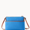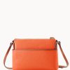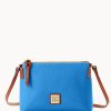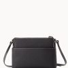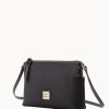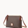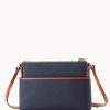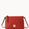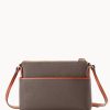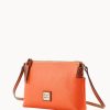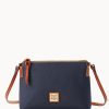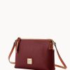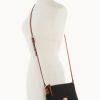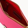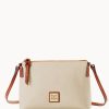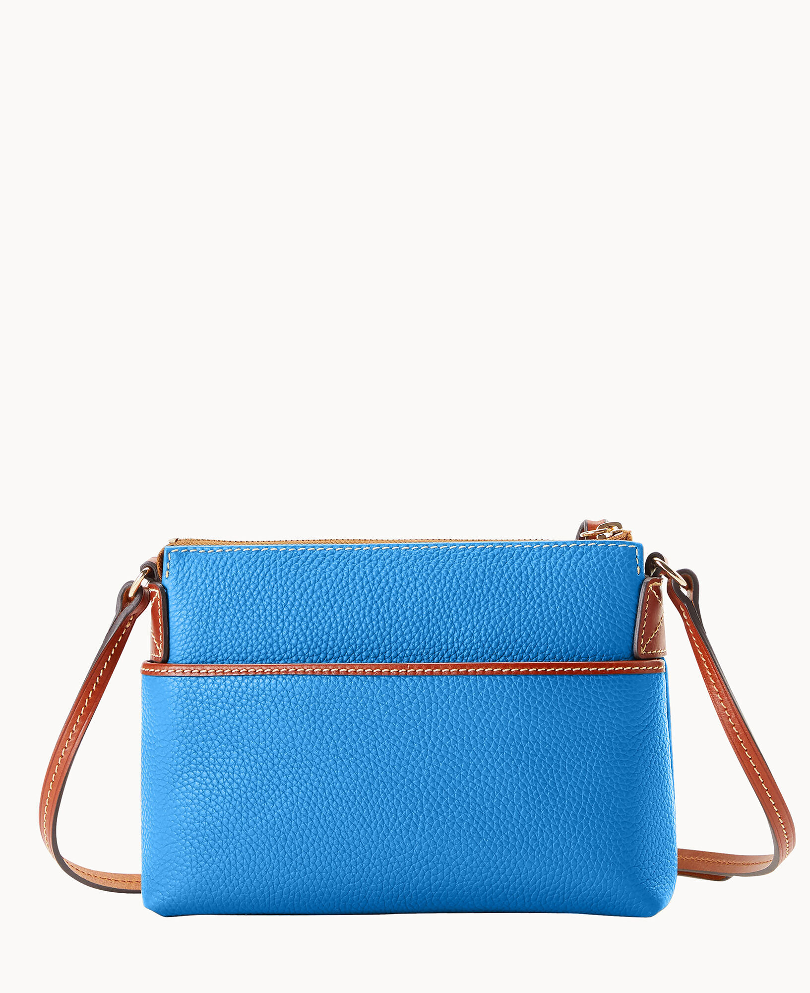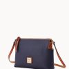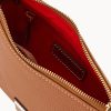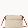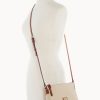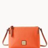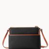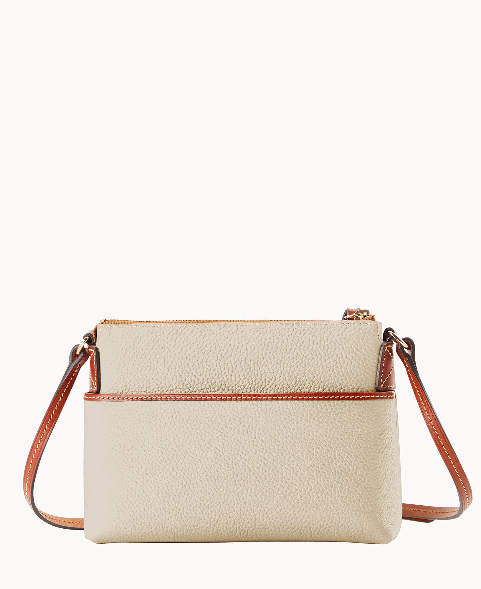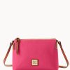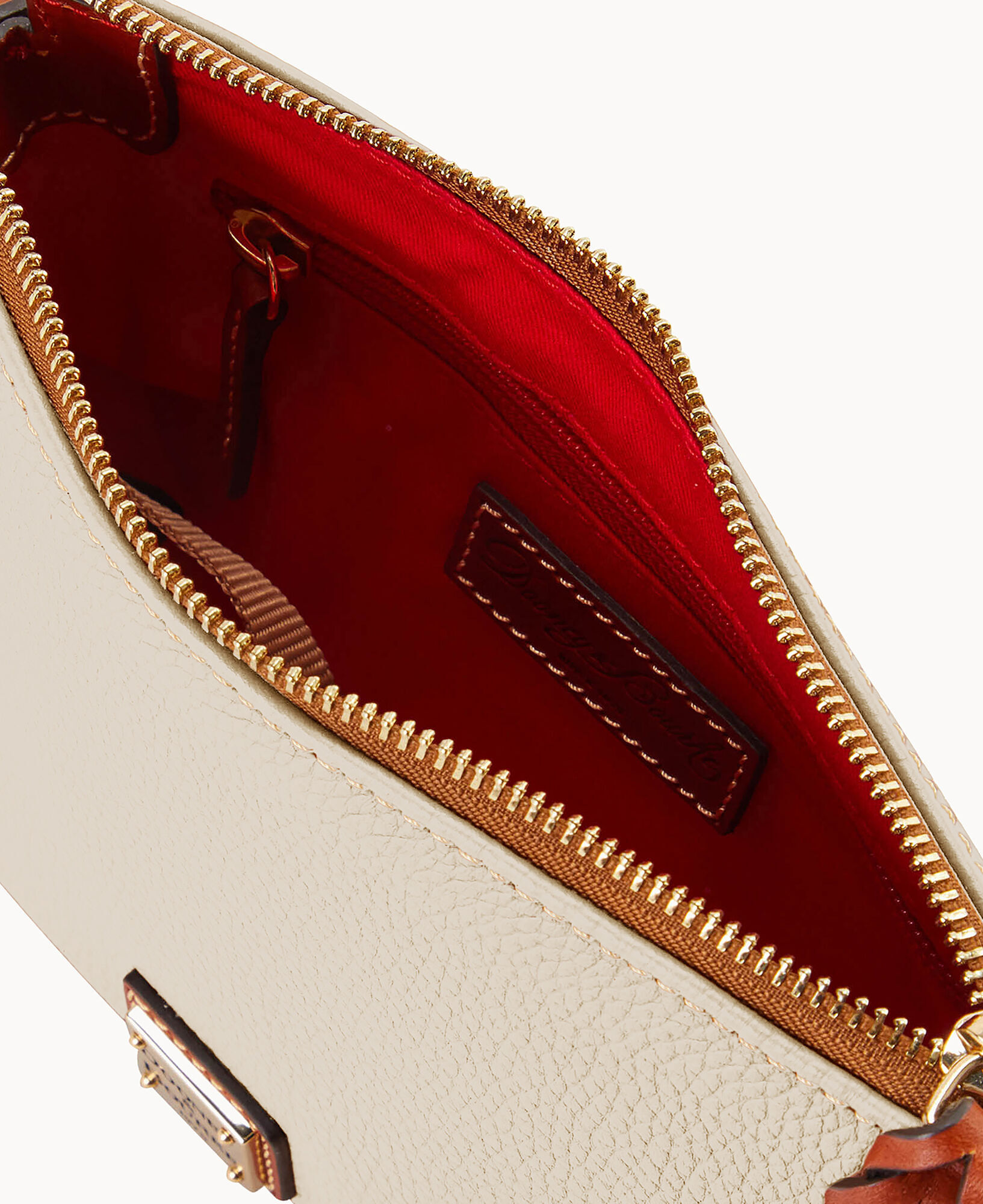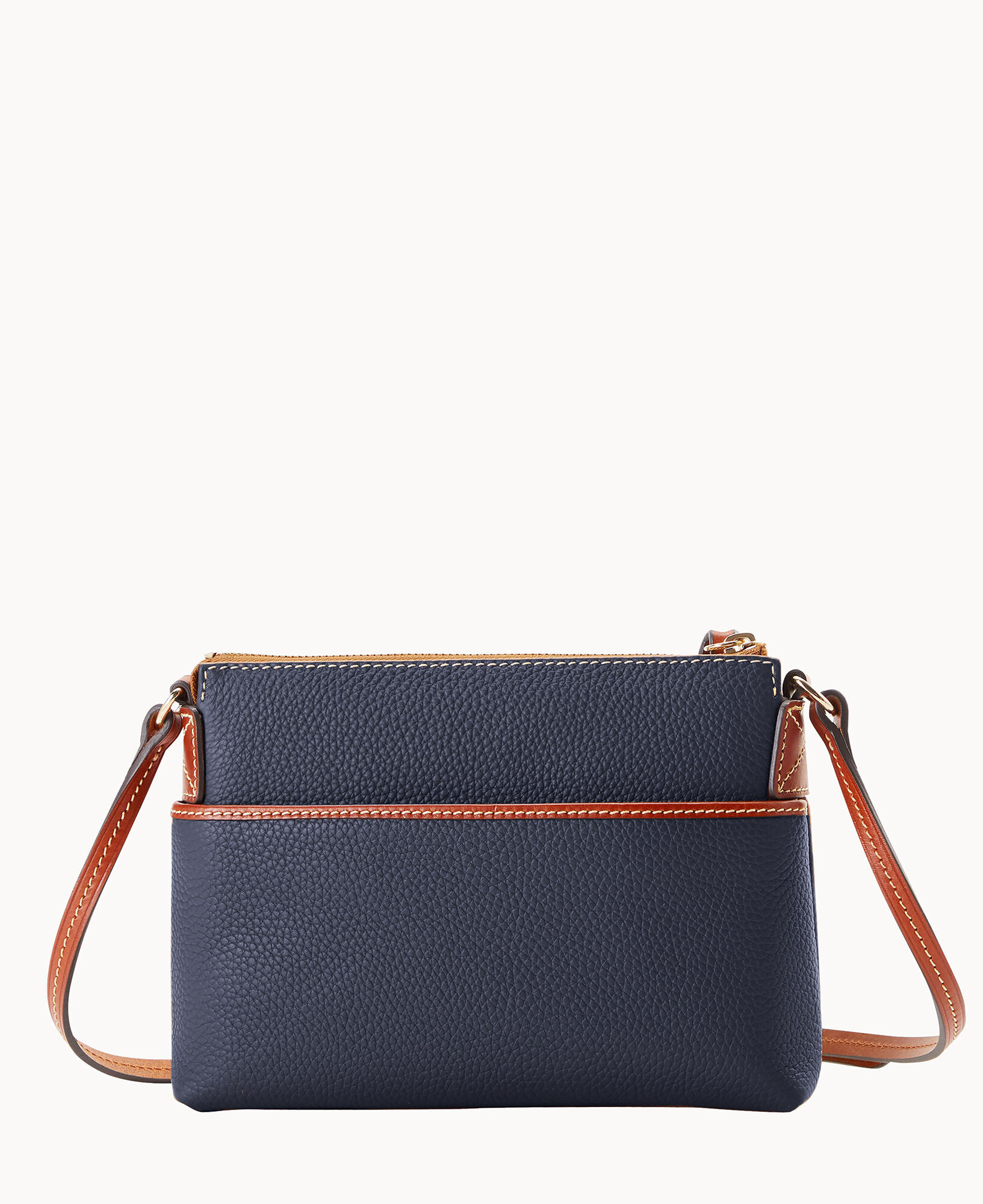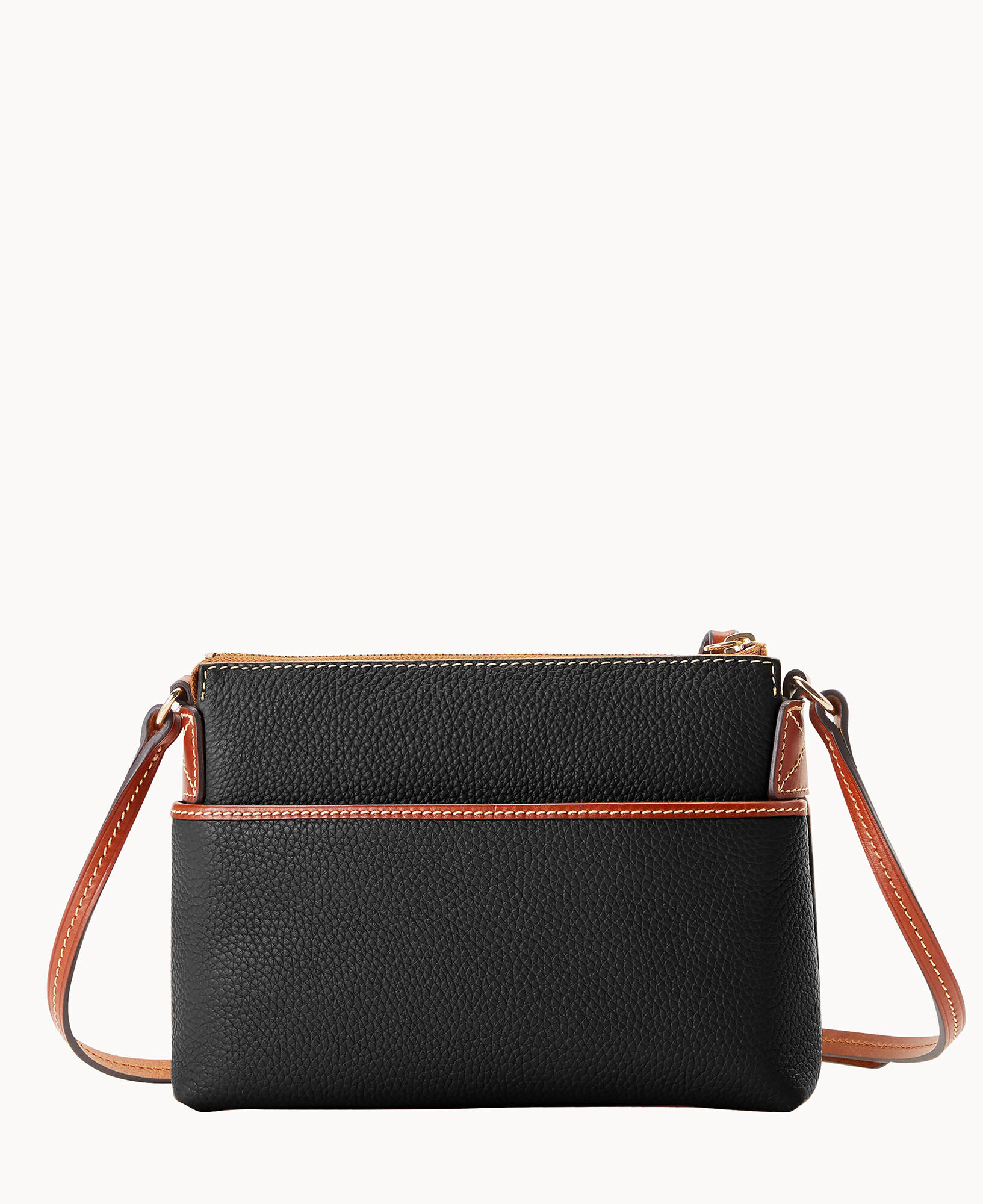 One outside slip pocket. One inside zip pocket. One inside slip pocket. Inside key hook. Adjustable strap.Strap drop length 28″. Lined. Zipper closure.