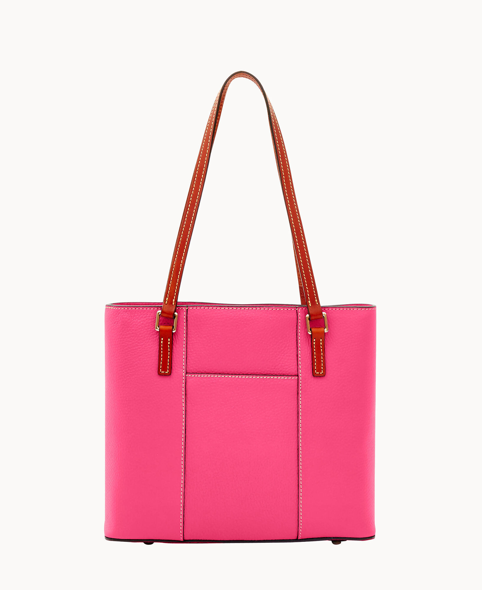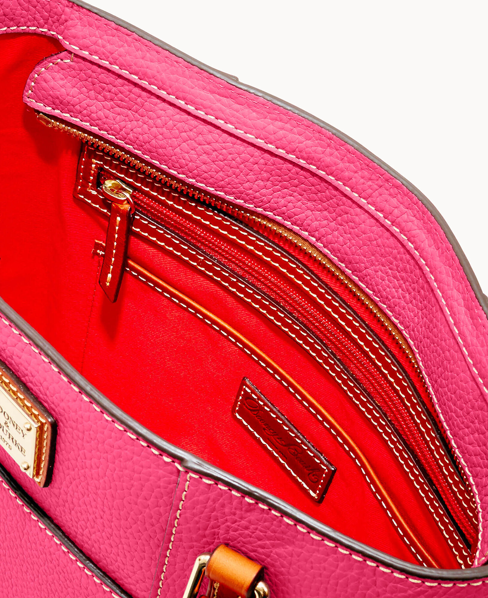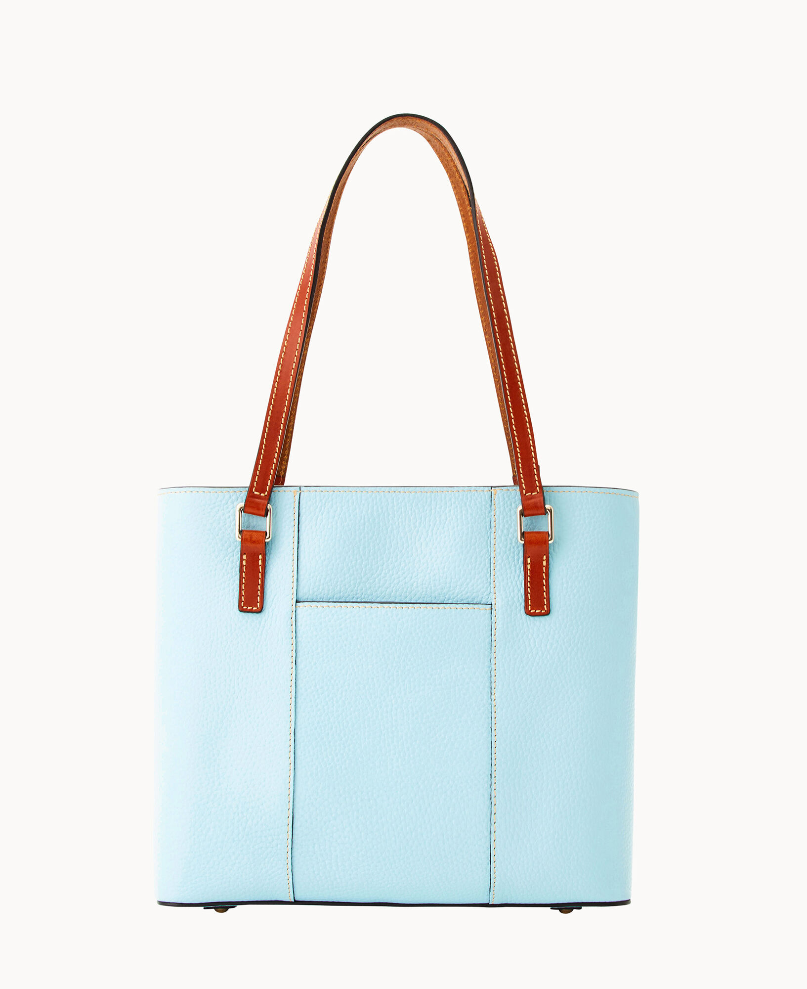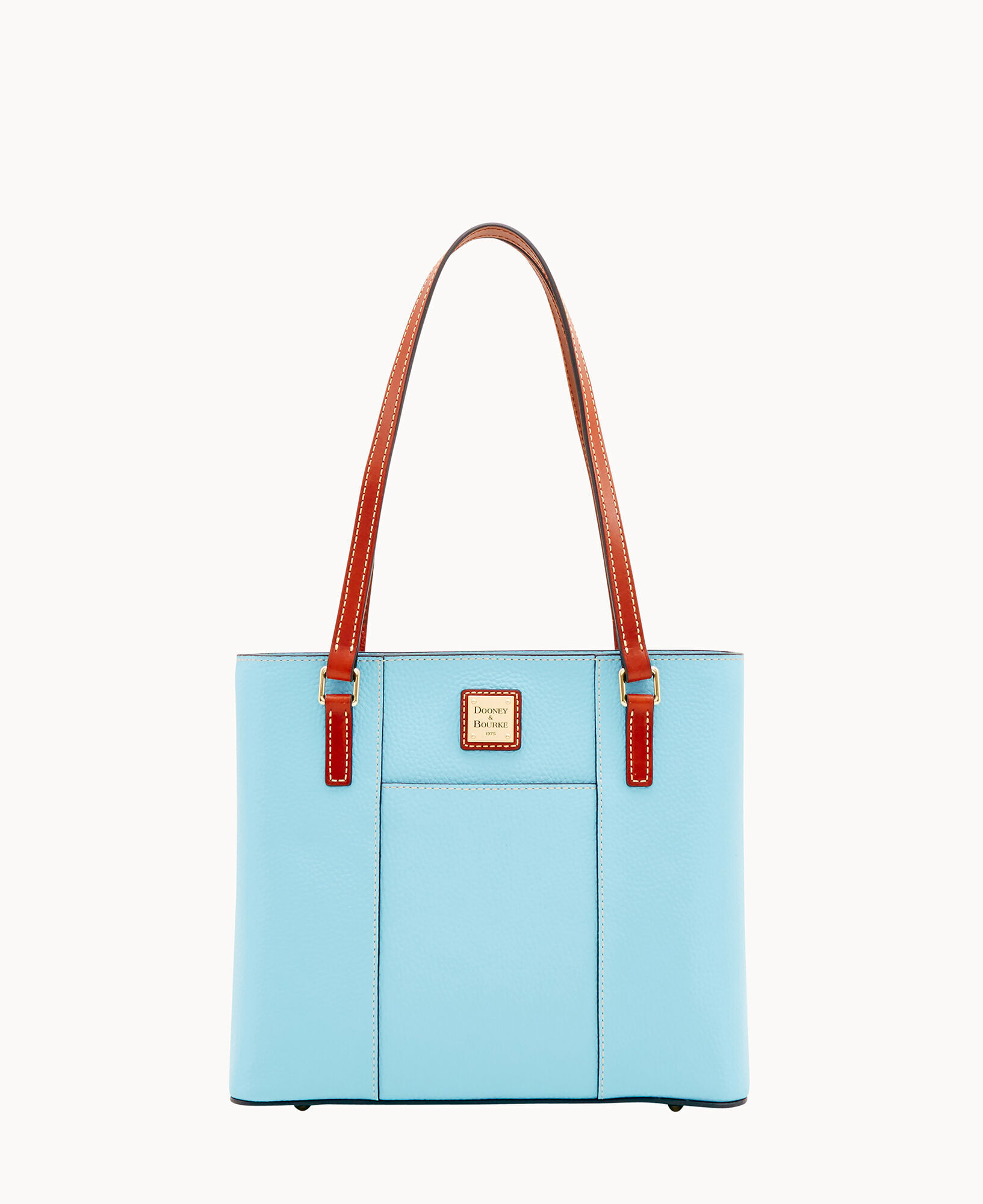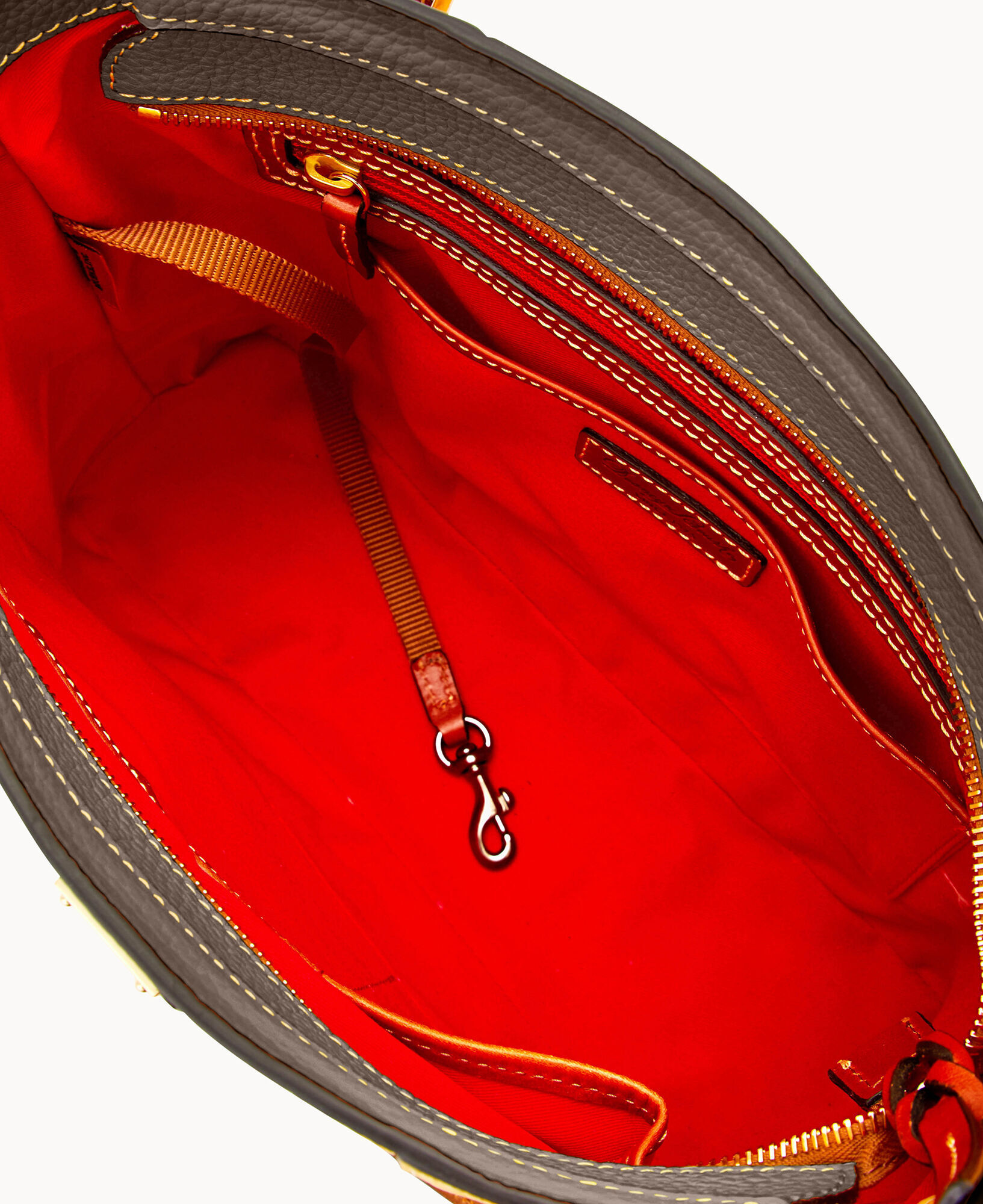 This essential tote, made from long-lasting pebble leather with a rich finish, has all the features you need: protective feet on the bottom, an exterior slip pocket, comfortable leather straps, and a zippered closure for security.