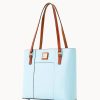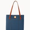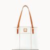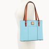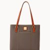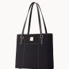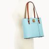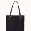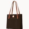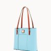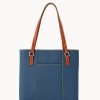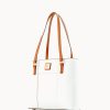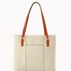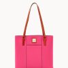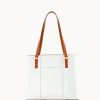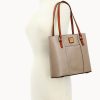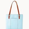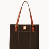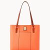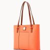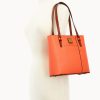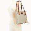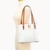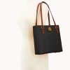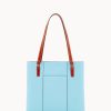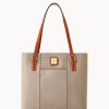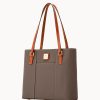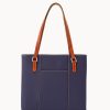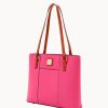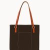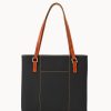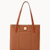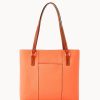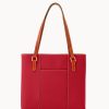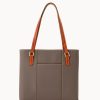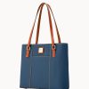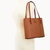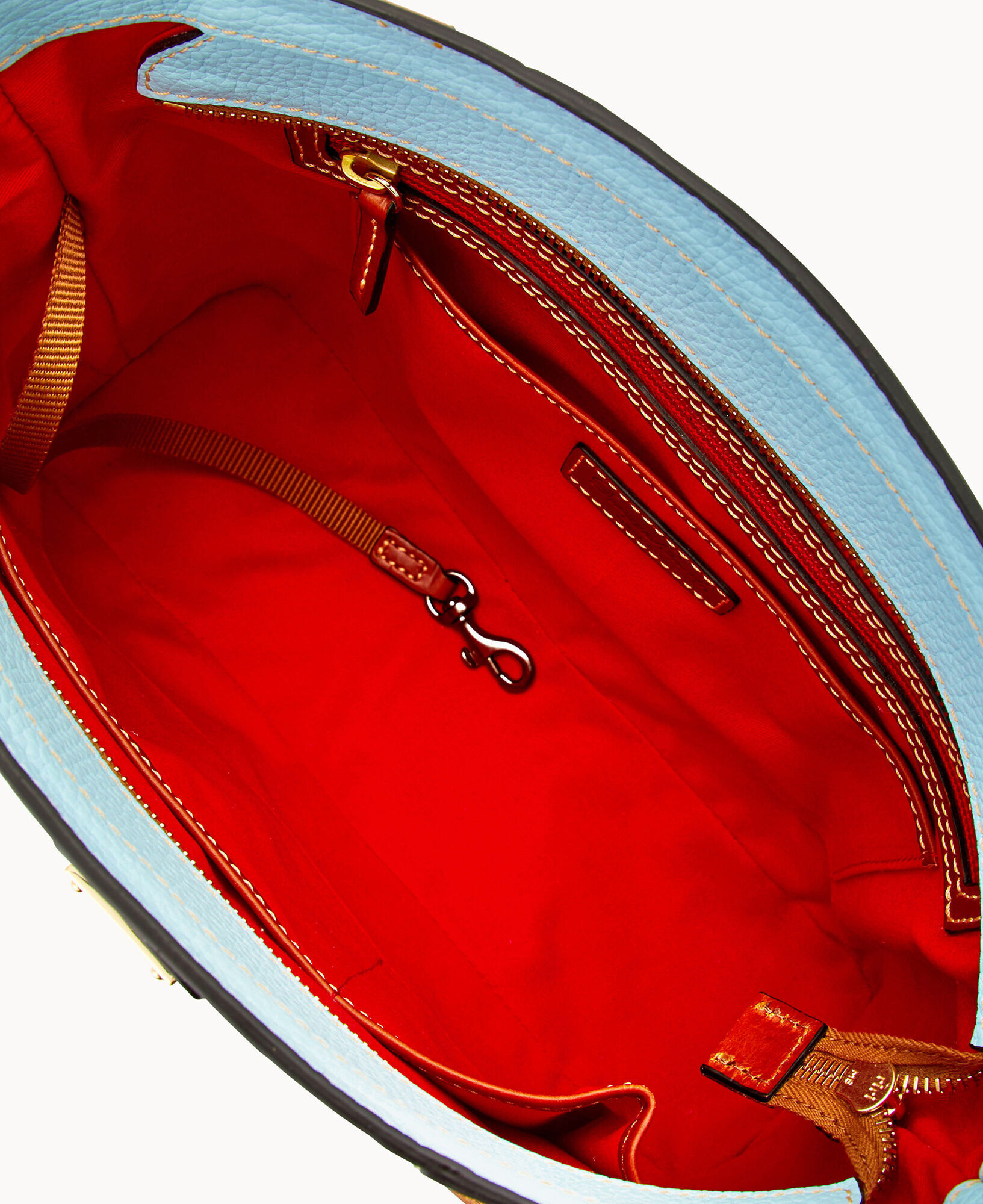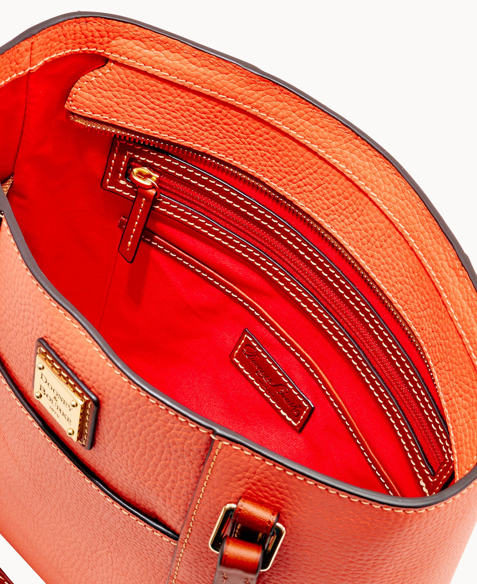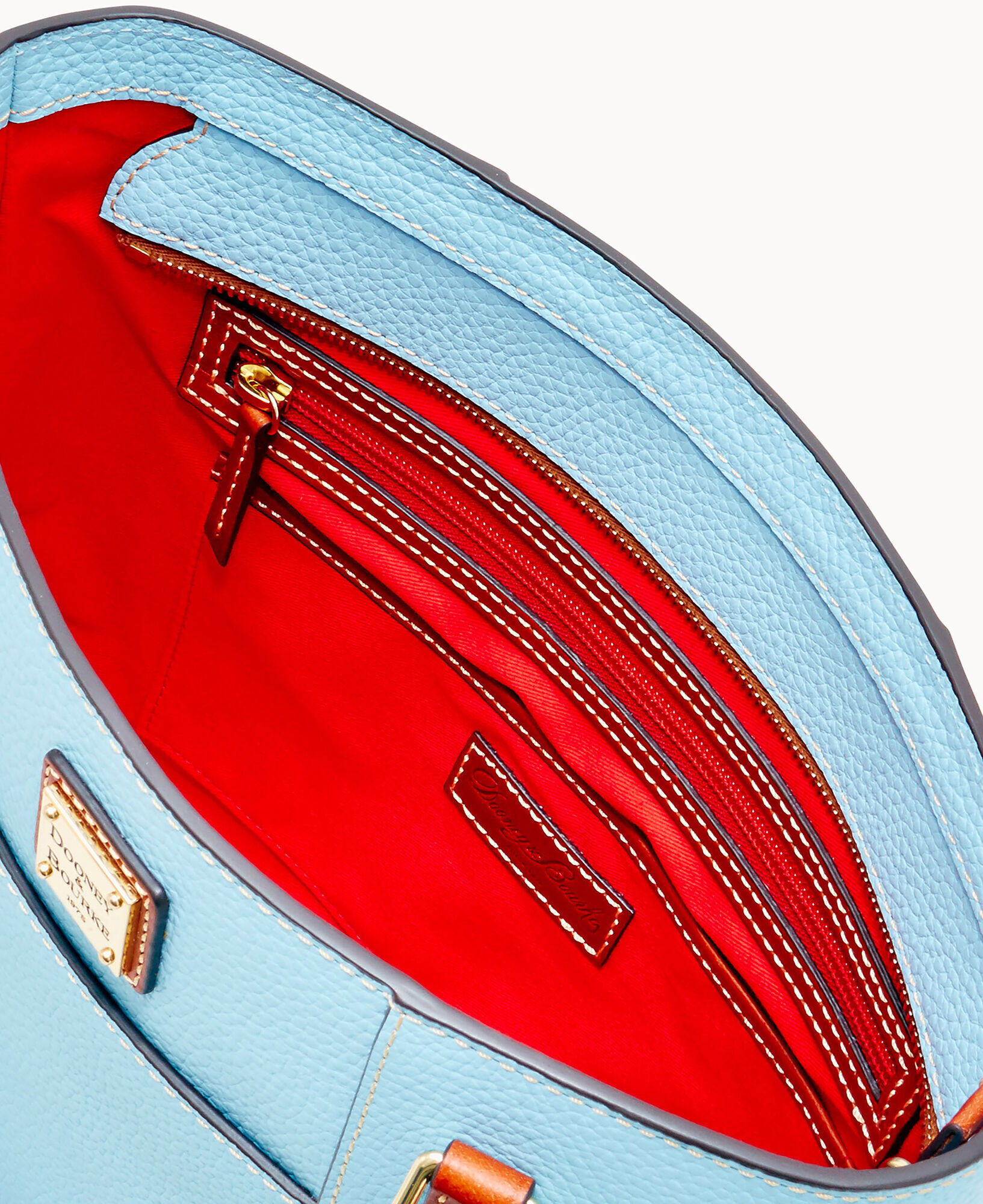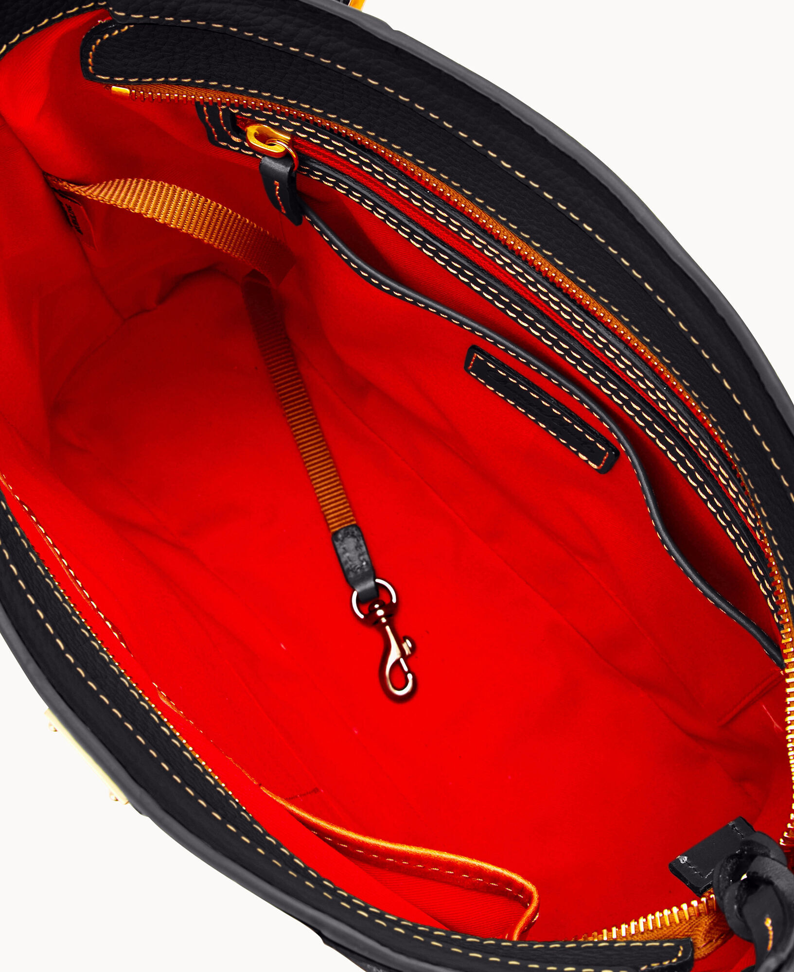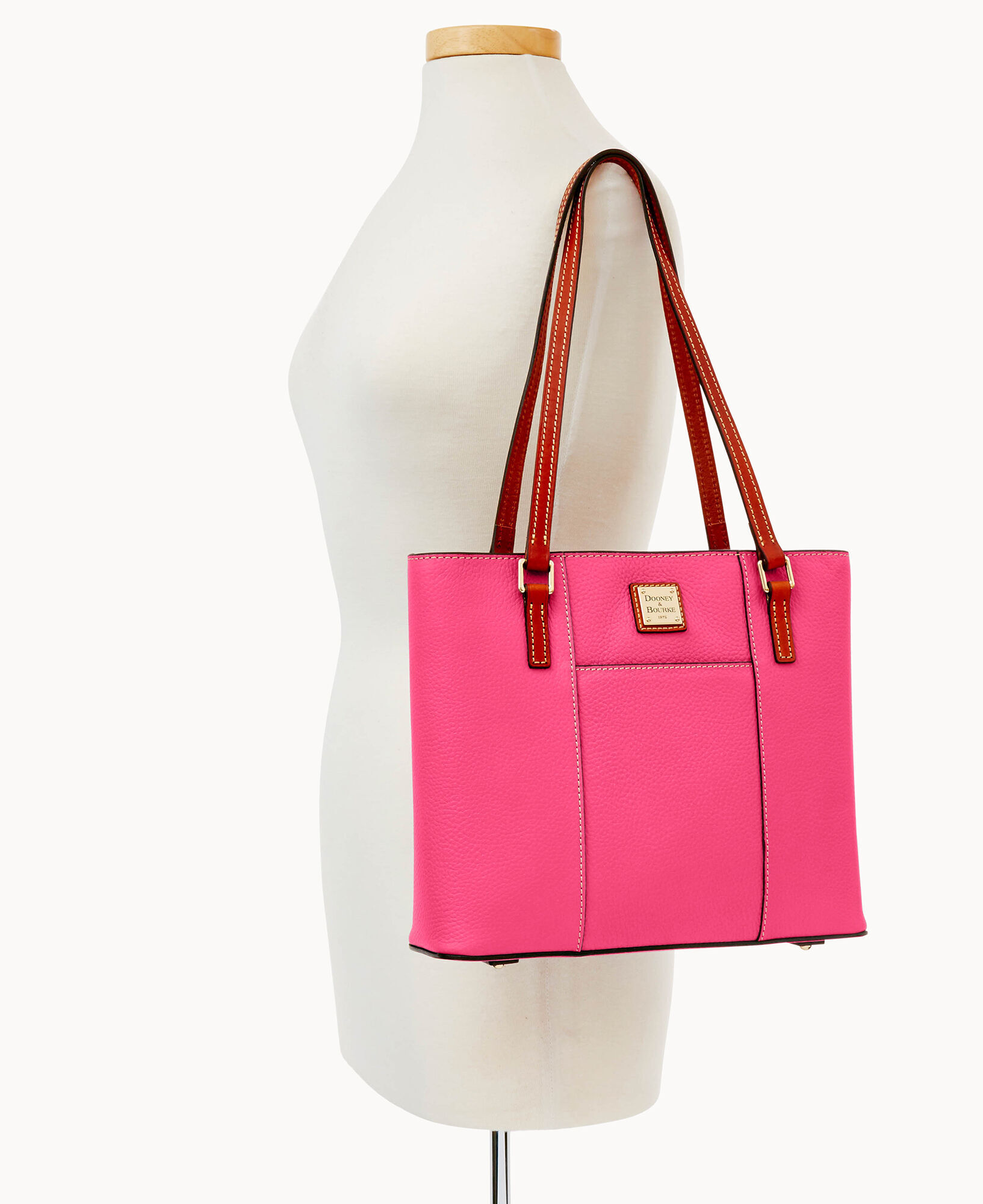 This essential tote, made from long-lasting pebble leather with a rich finish, has all the features you need: protective feet on the bottom, an exterior slip pocket, comfortable leather straps, and a zippered closure for security.