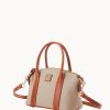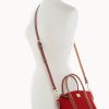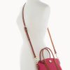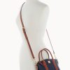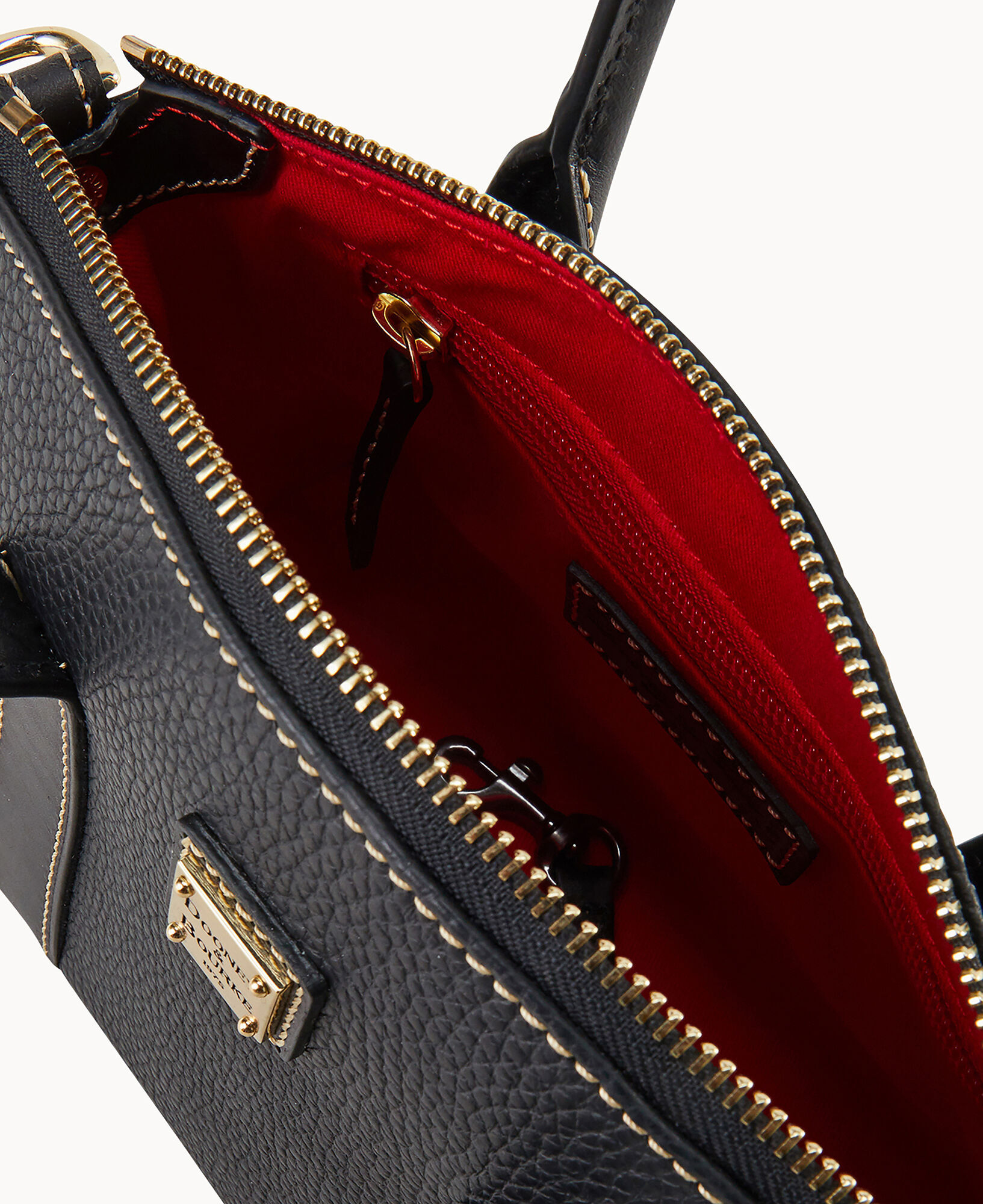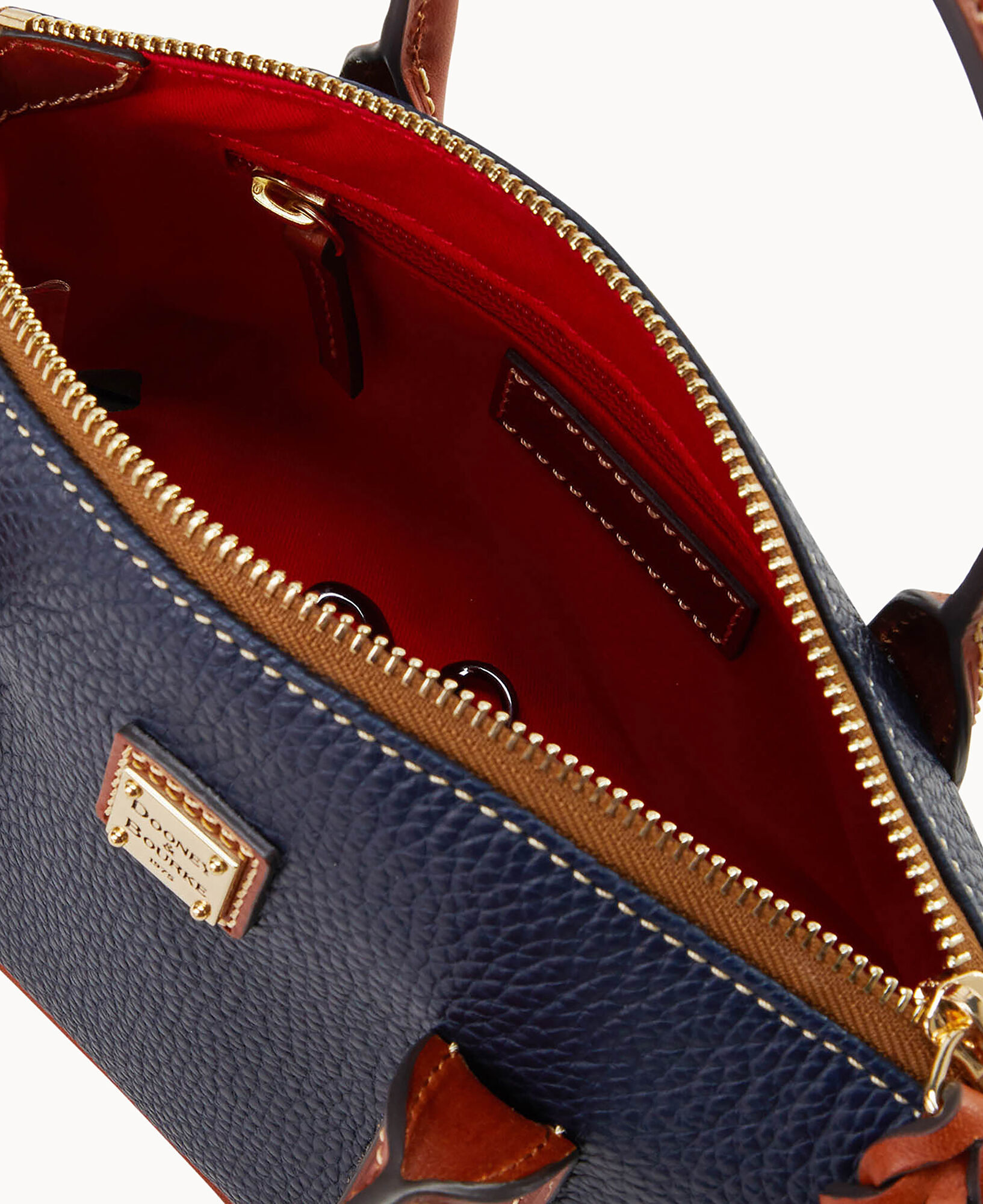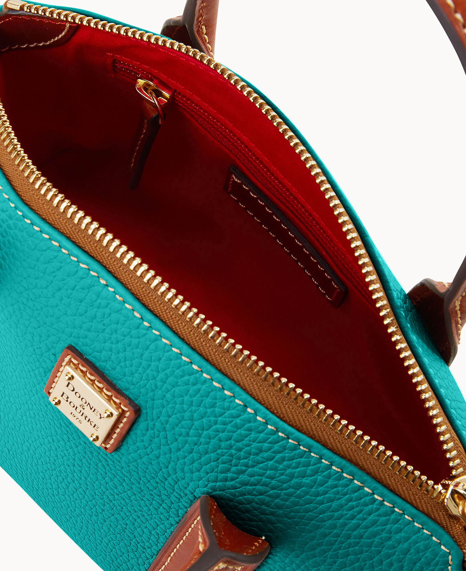 One inside pocket. One inside zipper pocket. Inside key hook. Adjustable and detachable strap. Shoulder strap drop length 24″. Handle drop length 3.5″. Zipper closure. Lined. Feet.