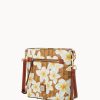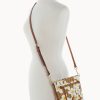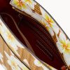One outside zip pocket. Two inside slip pockets. One inside zip pocket. Adjustable strap. Detachable strap. Inside key hook. Strap drop length 26″. Zipper closure. Feet. Lined.