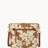 One outside zip pocket. Two inside slip pockets. One inside zip pocket. Adjustable strap. Detachable strap. Inside key hook. Strap drop length 26″. Zipper closure. Feet. Lined.