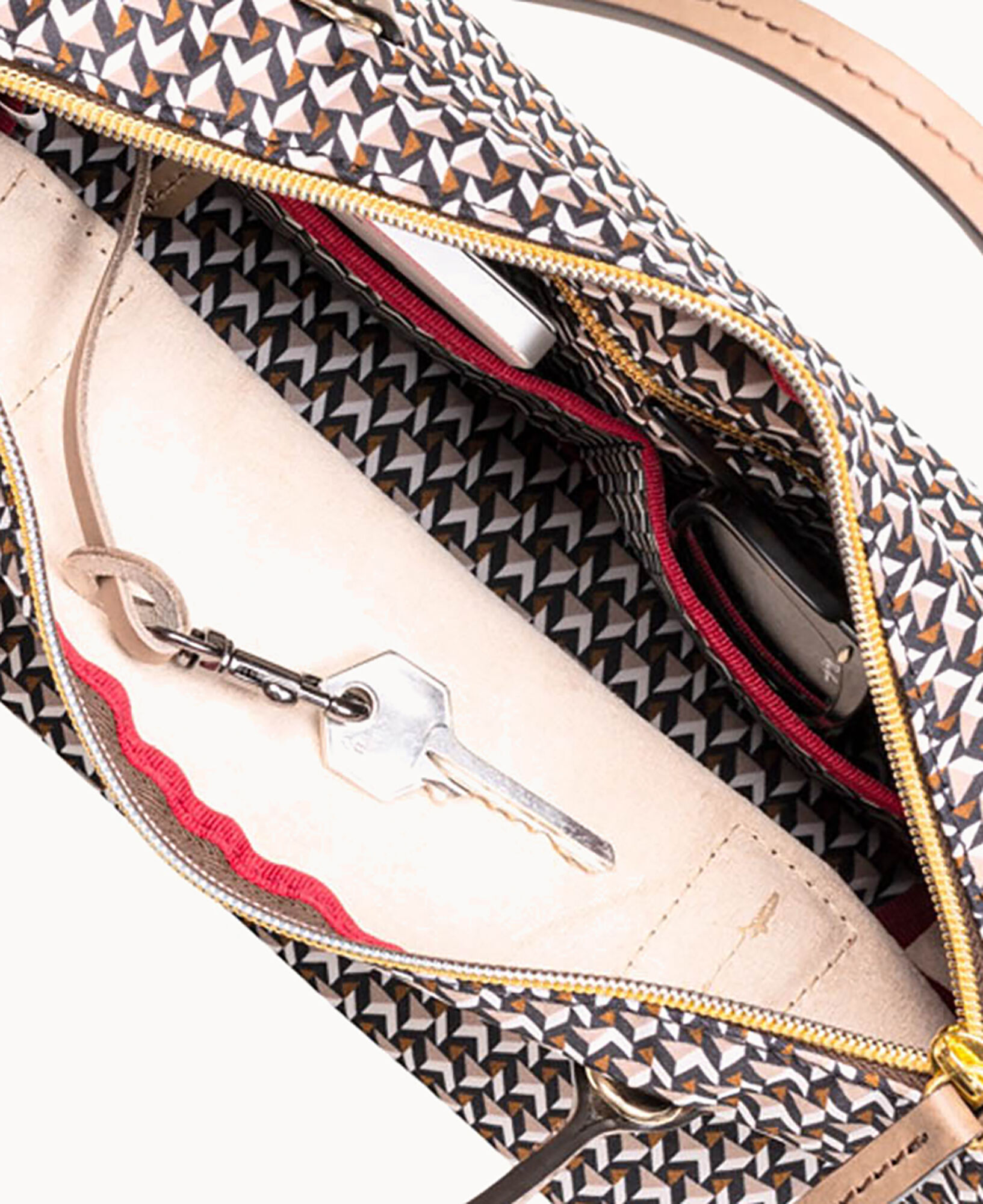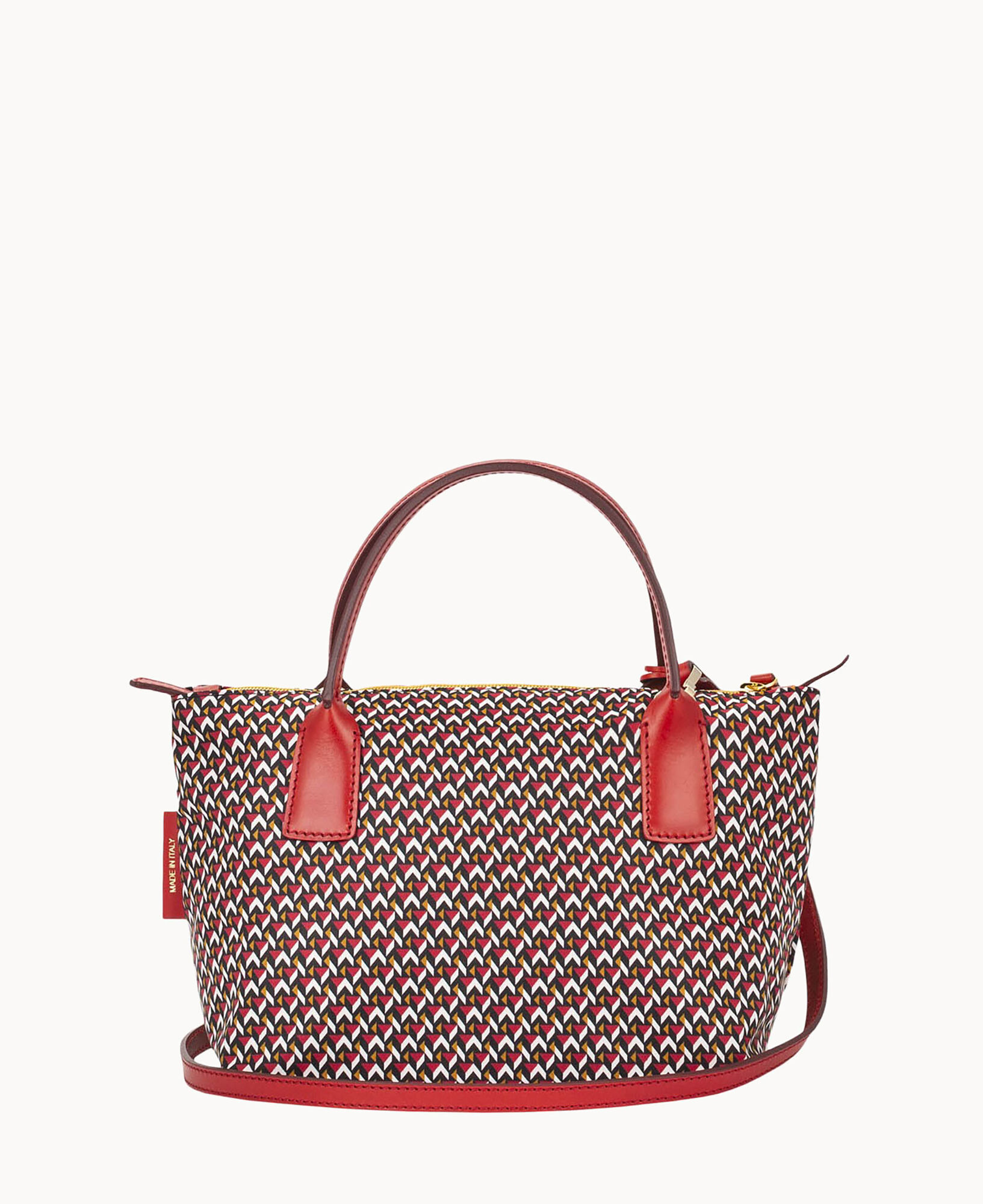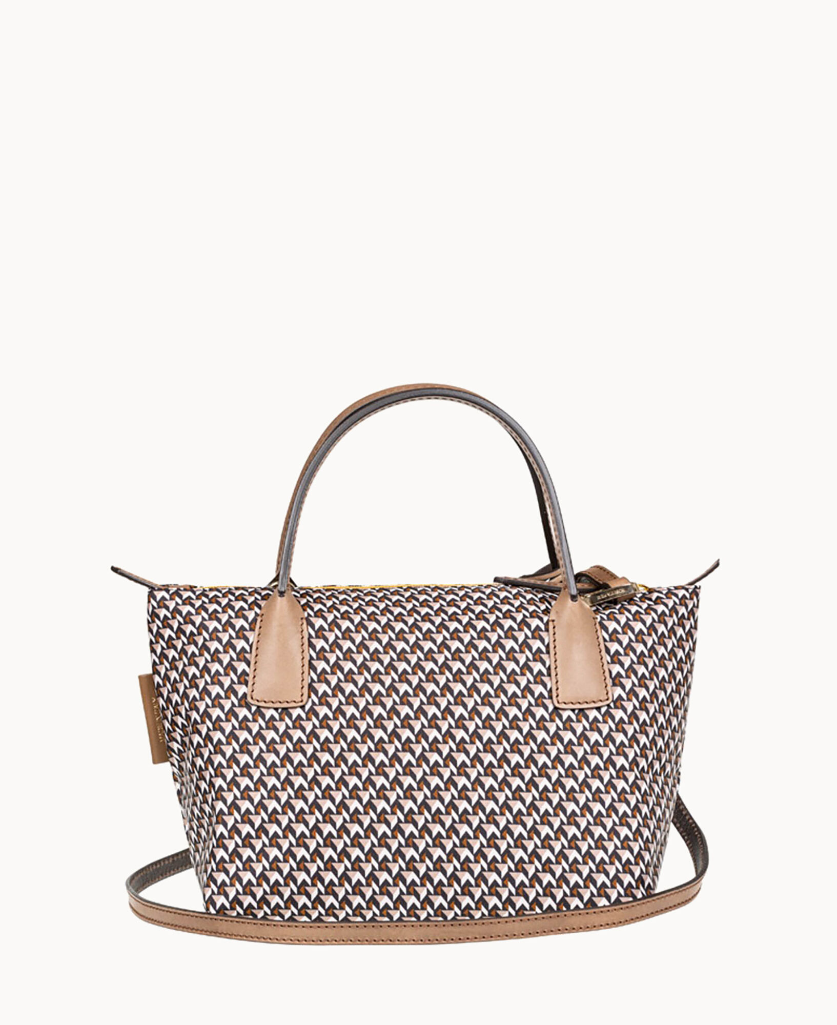 An essential lightweight tote crafted from luxe Italian nylon in an eye-catching geometric pattern. The smallest of three sizes, this versatile silhouette prioritizes your convenience and can be carried two ways by the structured handles, or worn crossbody.