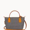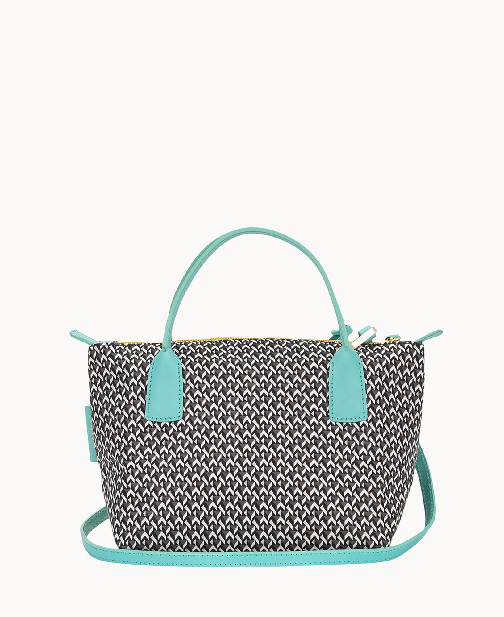 An essential lightweight tote crafted from luxe Italian nylon and finished with Vacchetta leather trim in a range of statement colors. The smallest of three sizes, this versatile silhouette was designed to be carried two ways by the structured handles, or worn crossbody using the adjustable, removable strap.