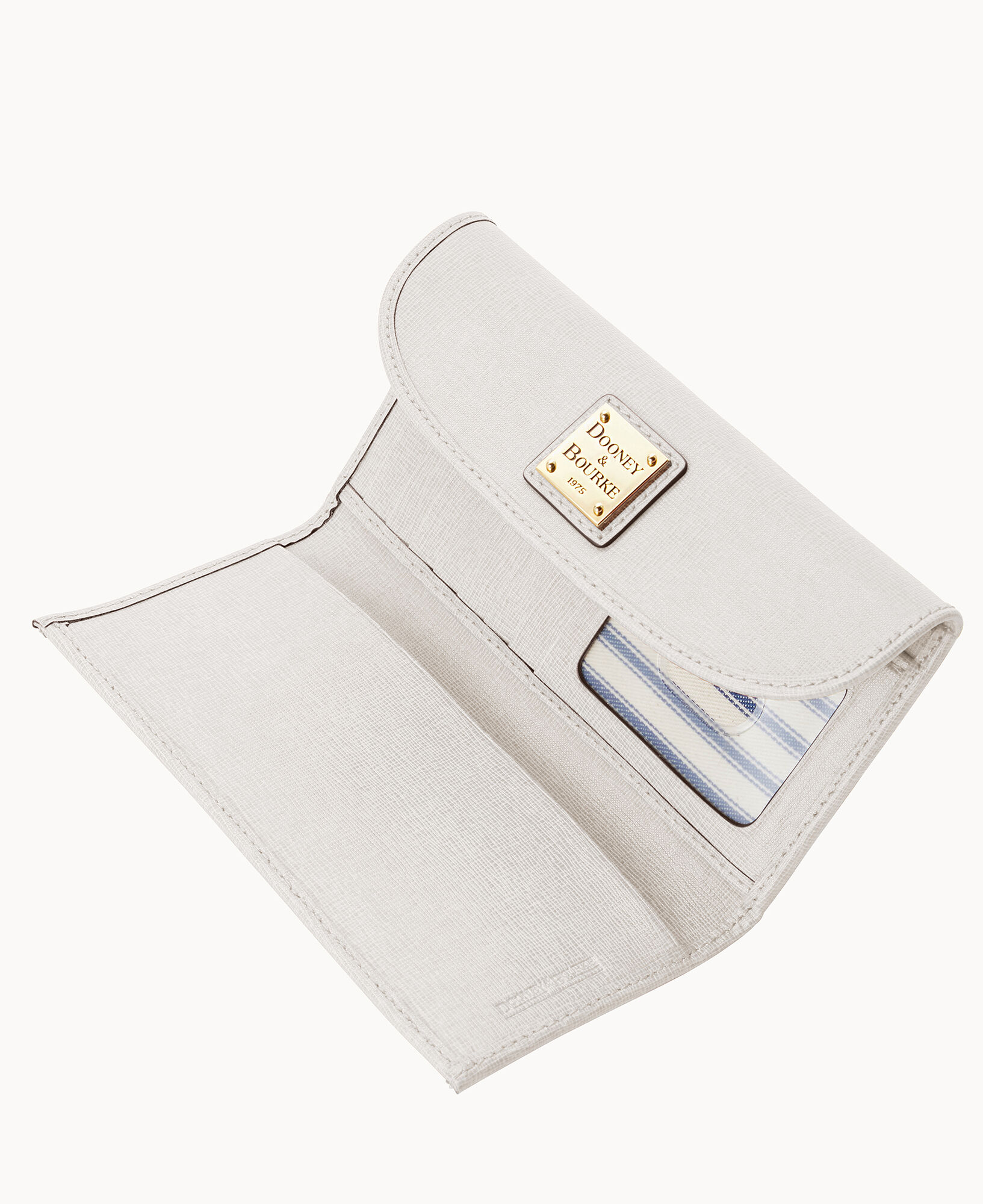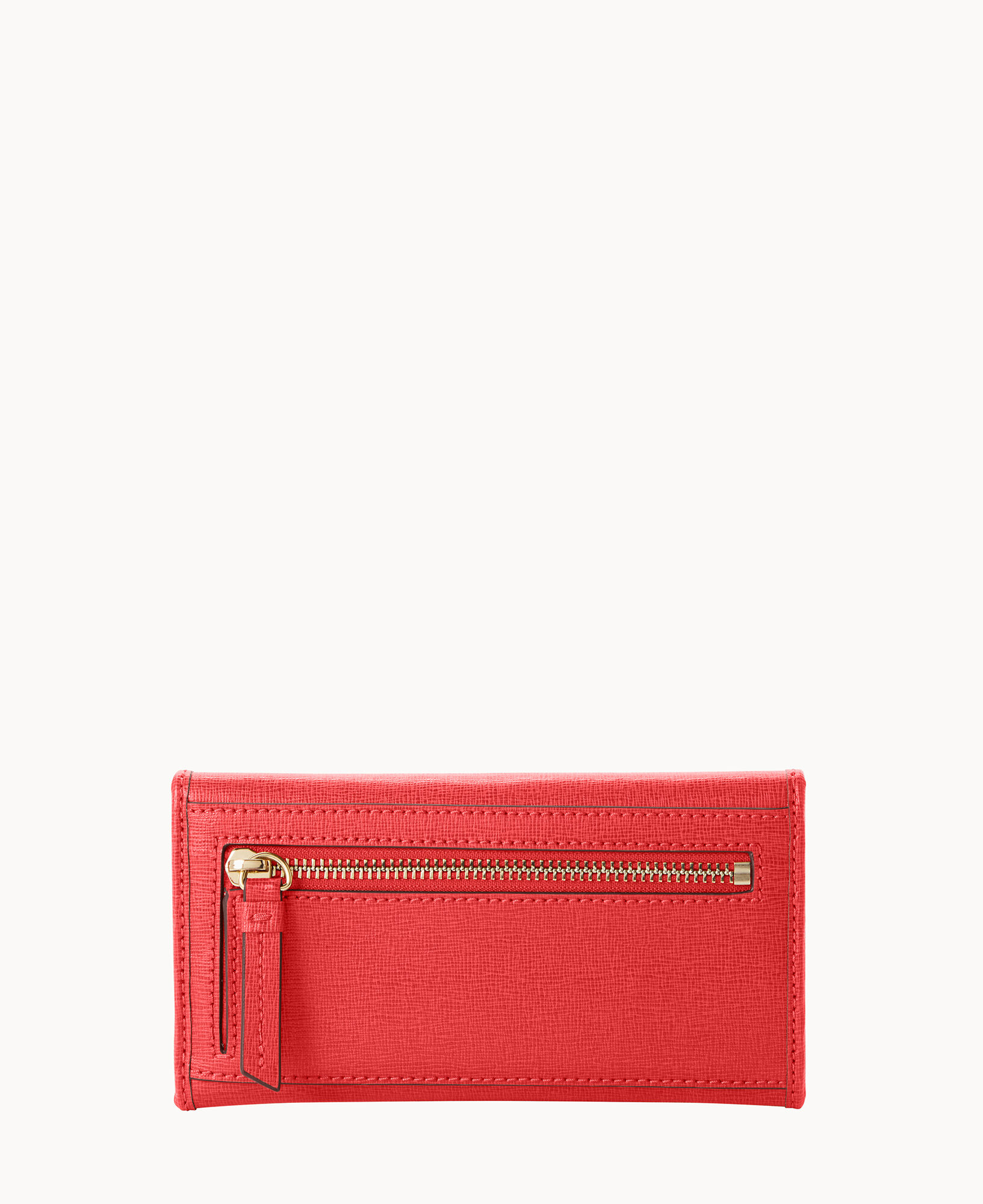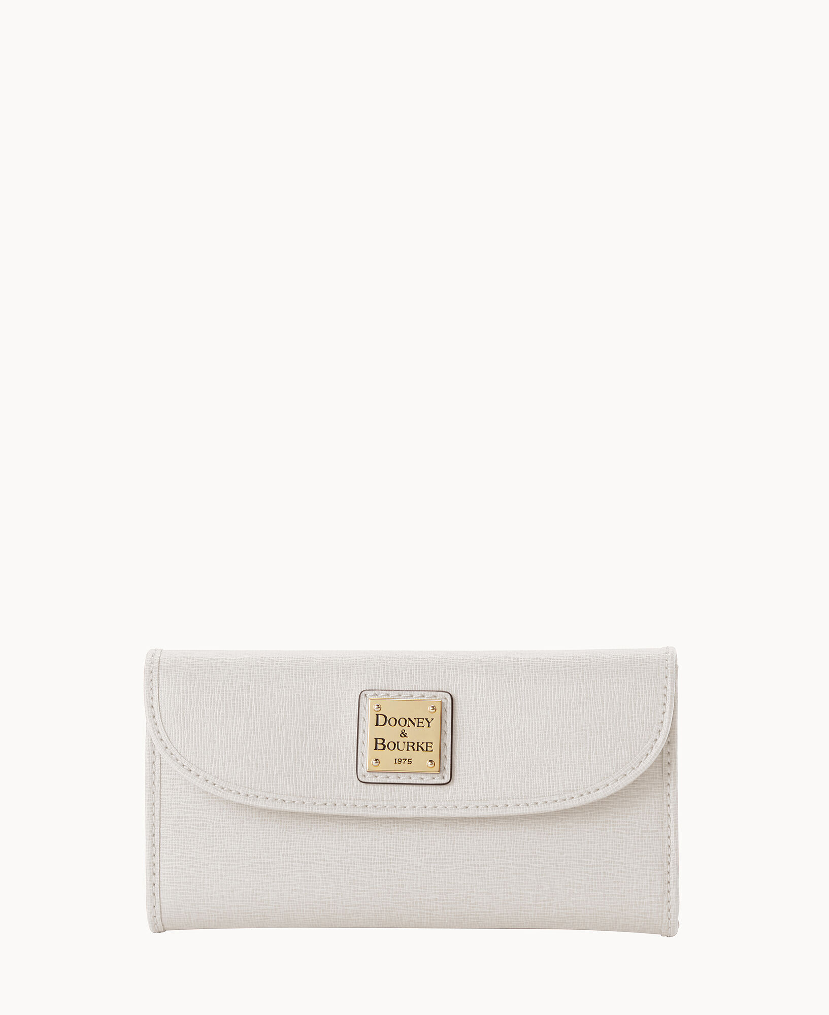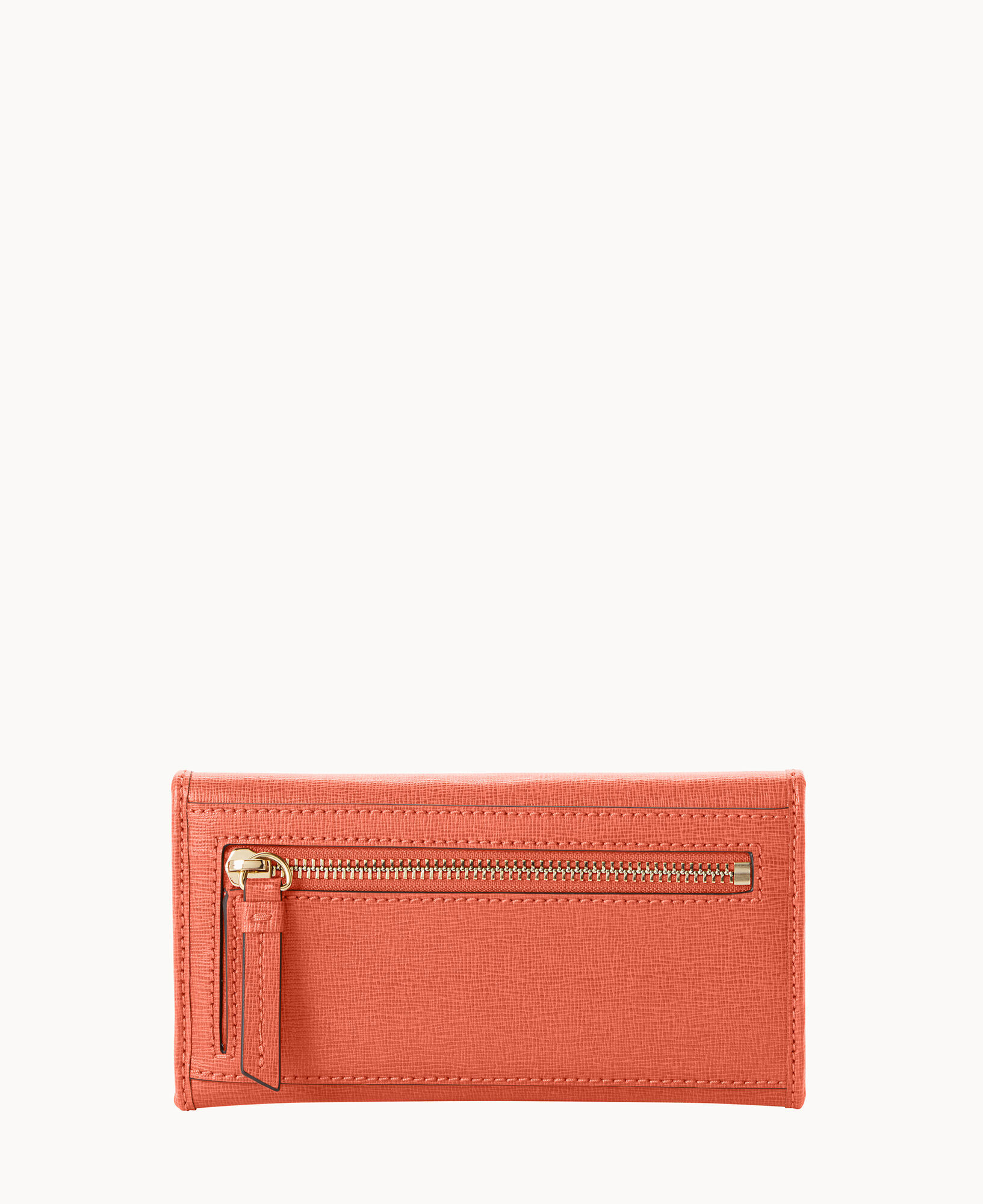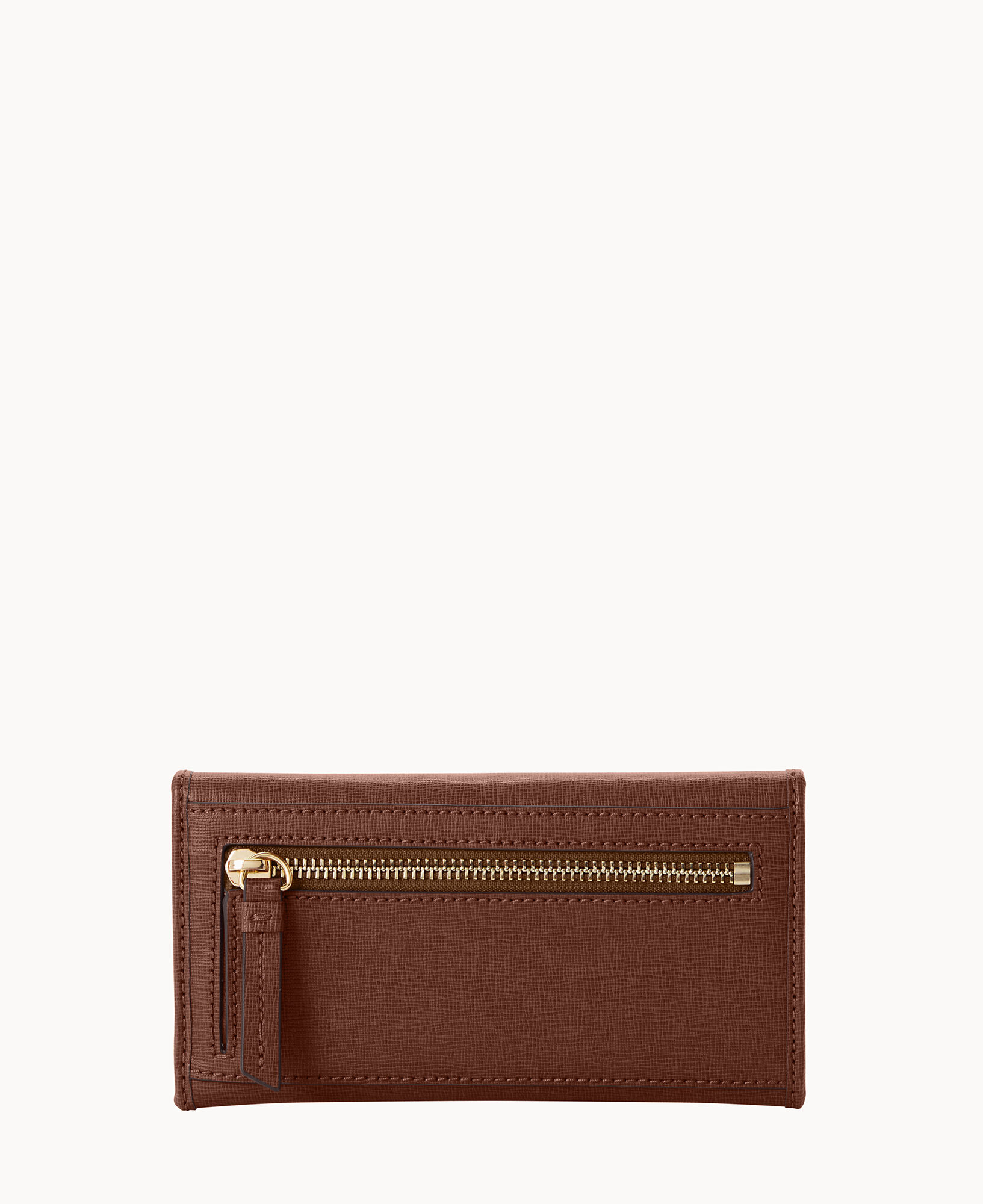 This classic clutch, made from coated leather that gives handbags an impeccable structure, organizes your cards, has a zippered pouch for your spare change, and an ID window for easy access.