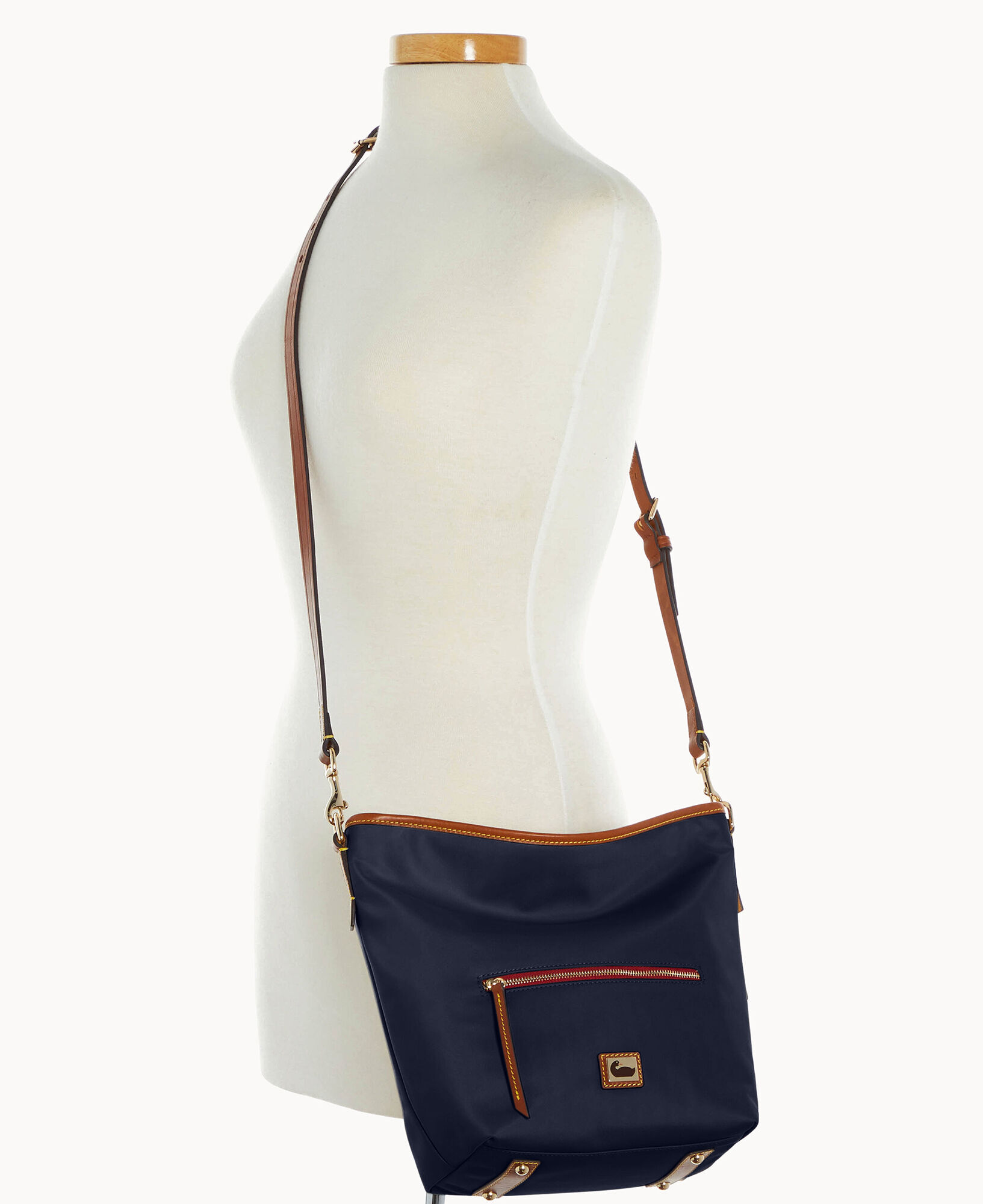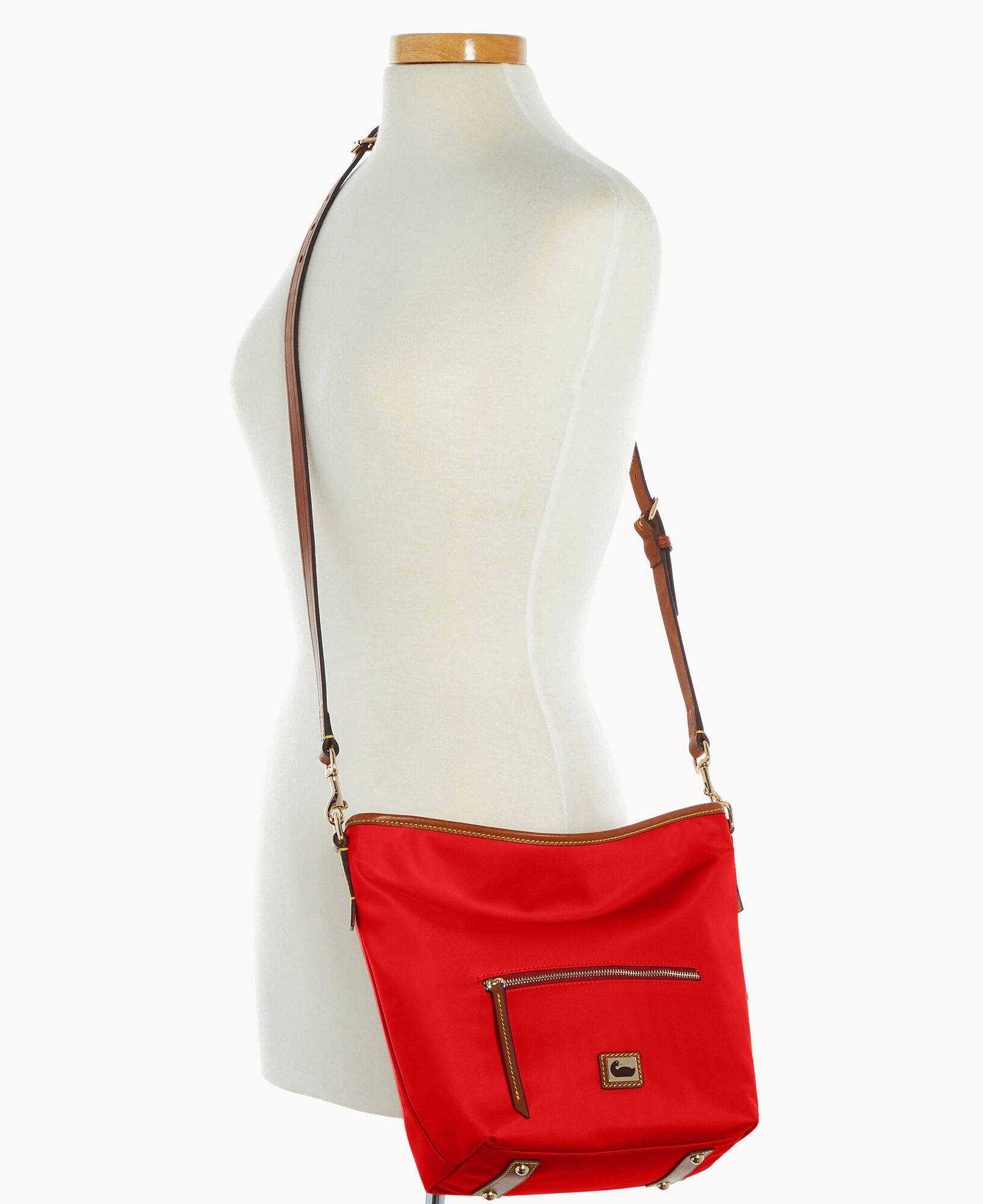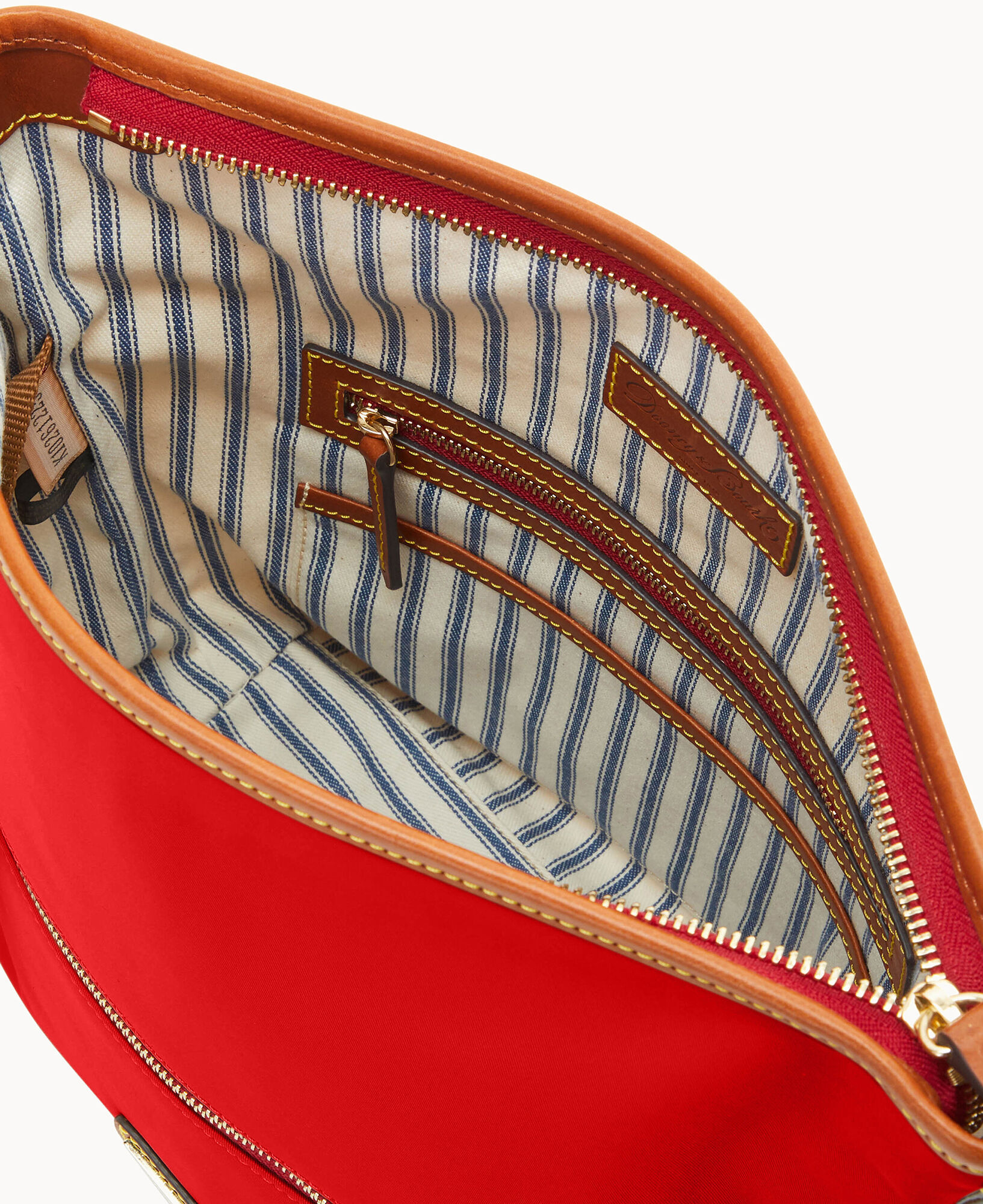 This crescent crossbody, made from lightweight nylon that’s easy to clean and maintenance-free, has All-American style with a practical spin.
