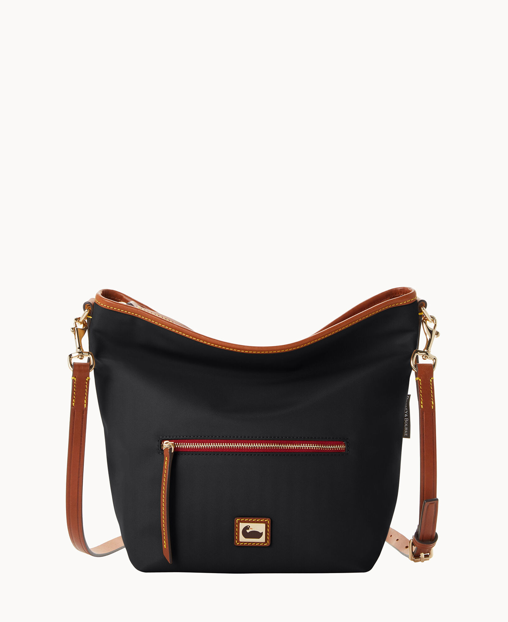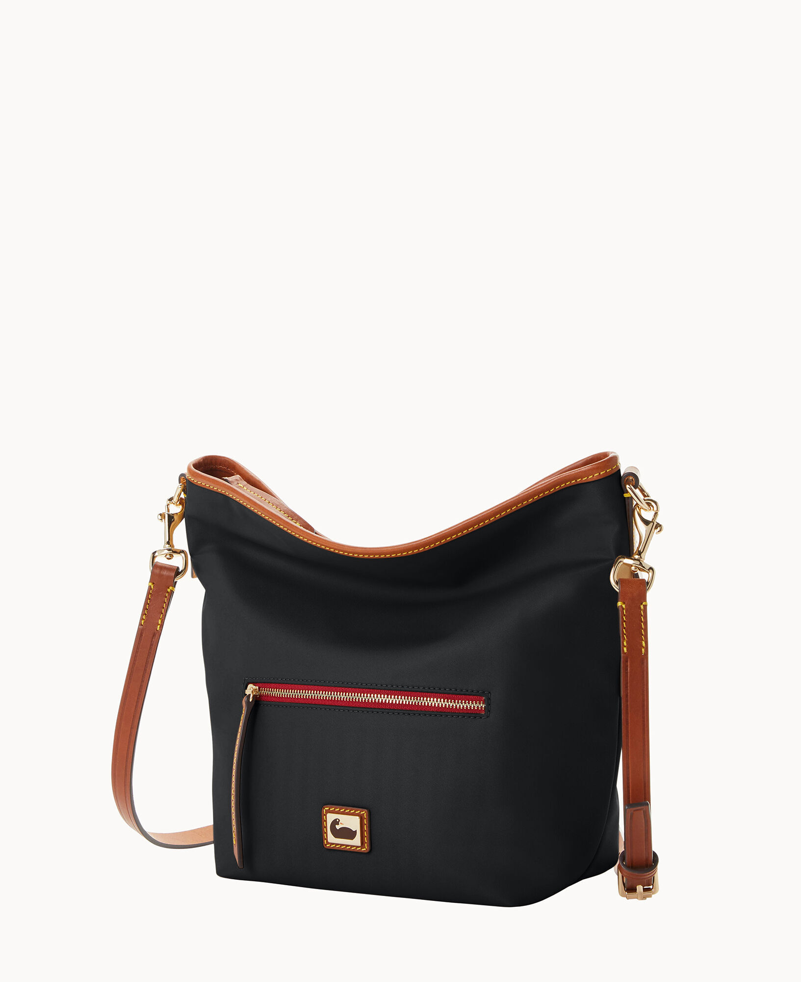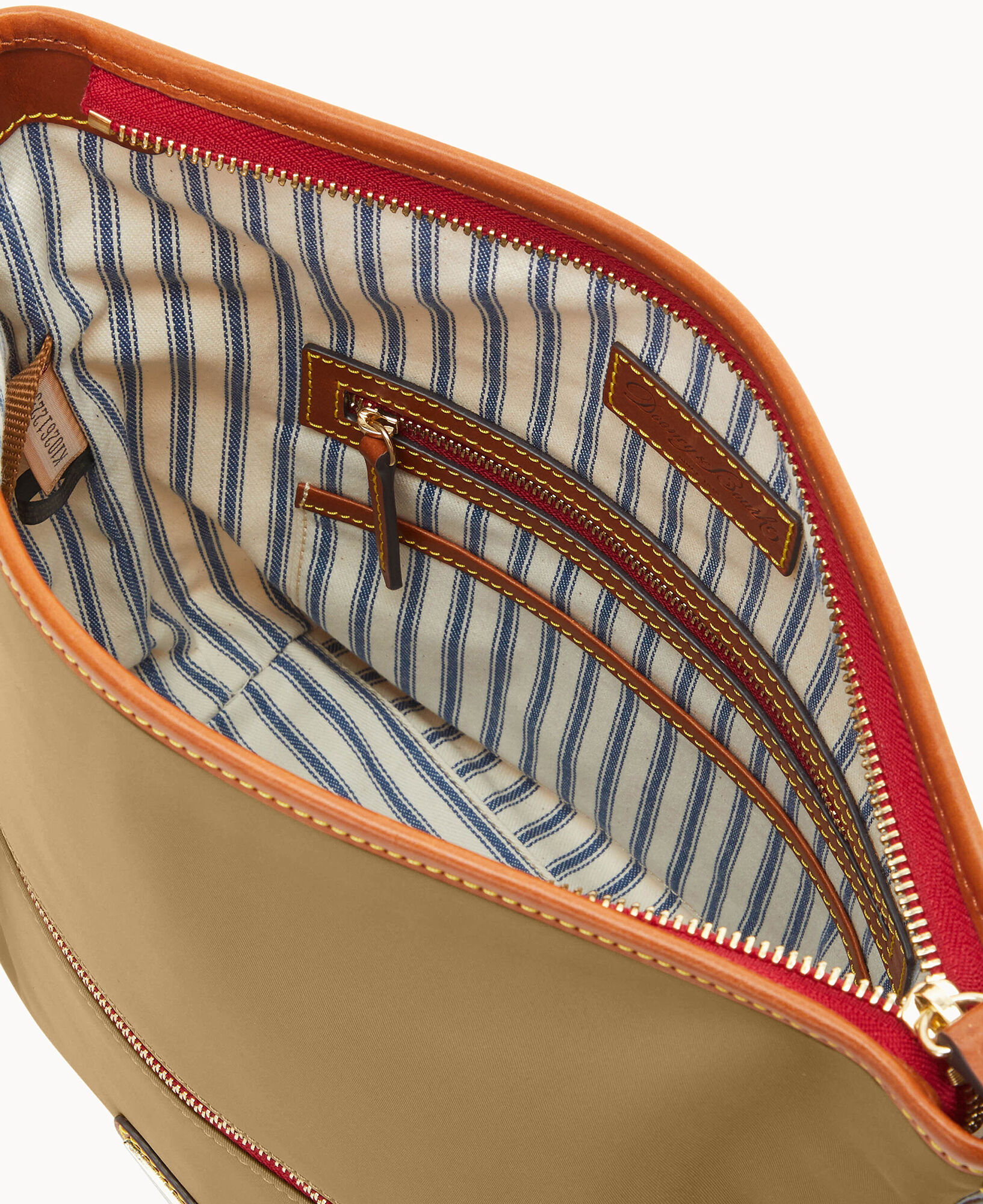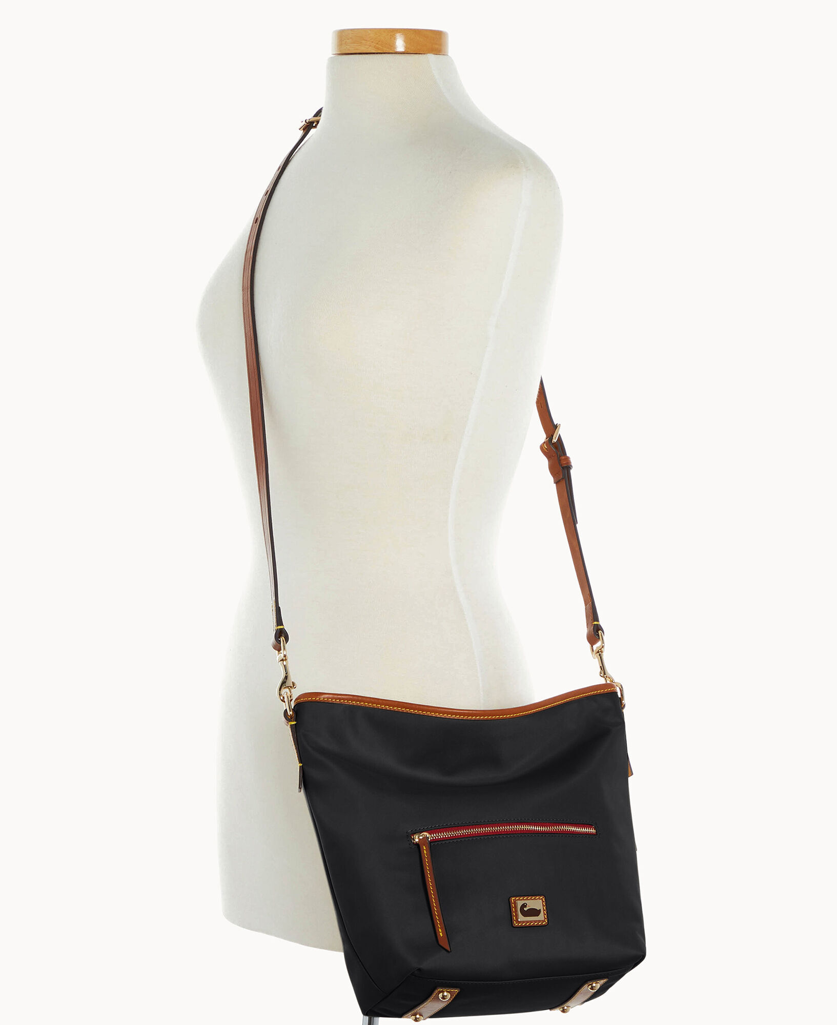 This crescent crossbody, made from lightweight nylon that’s easy to clean and maintenance-free, has All-American style with a practical spin.